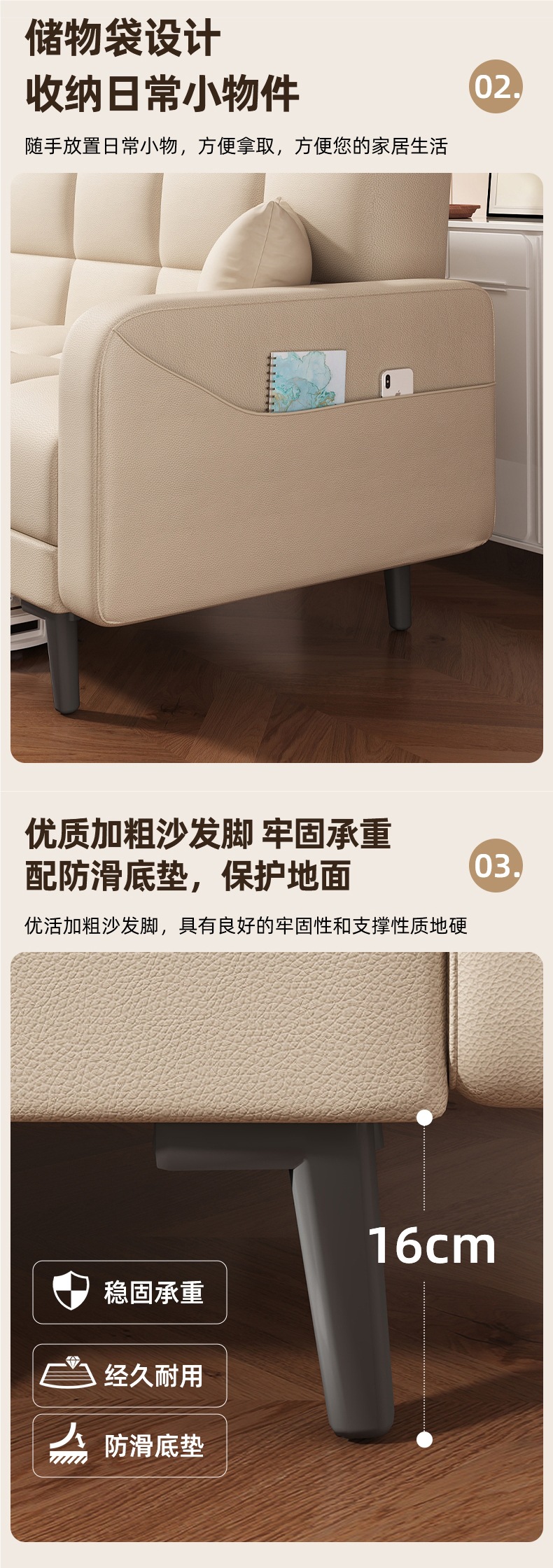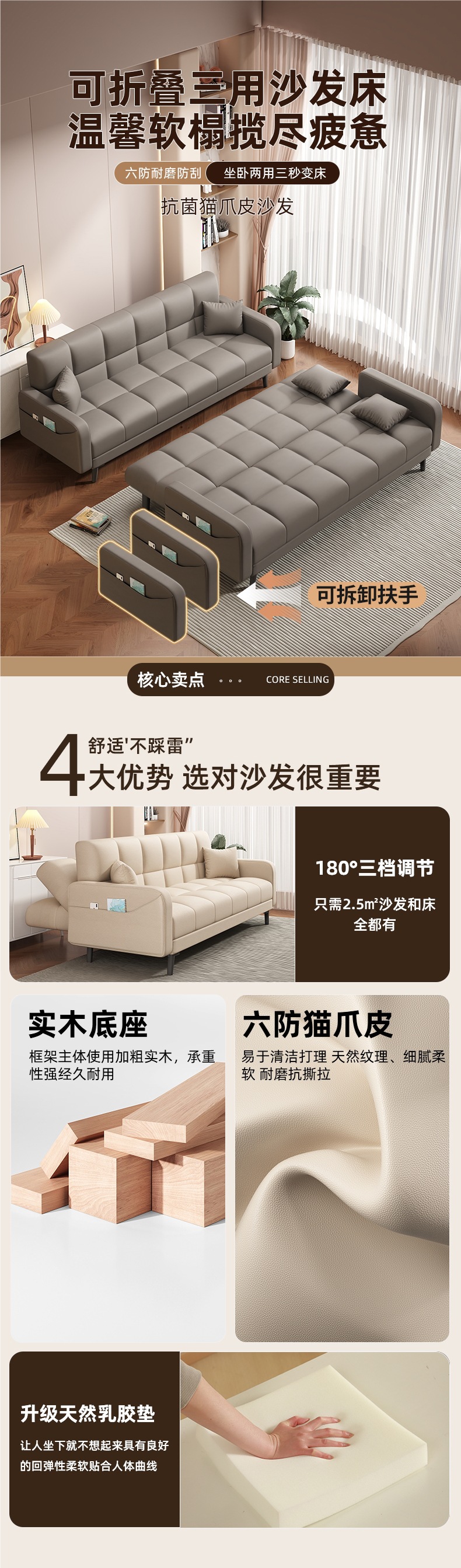 접이식 소파 베드 이중 목적 소파 거실 2024 새로운 간단한 크림 스타일 소파 작은 아파트 임대 집