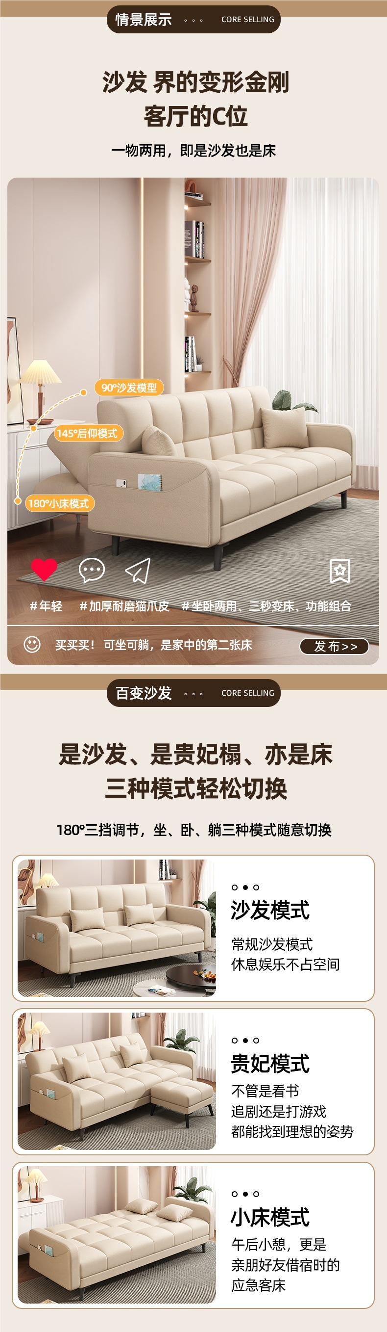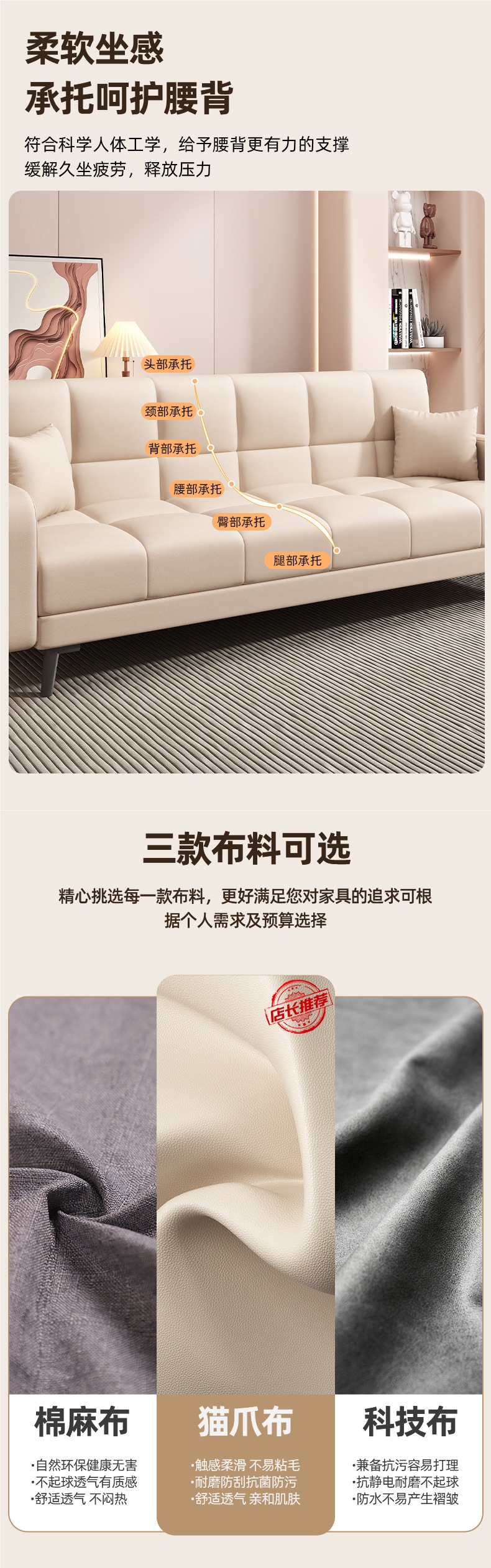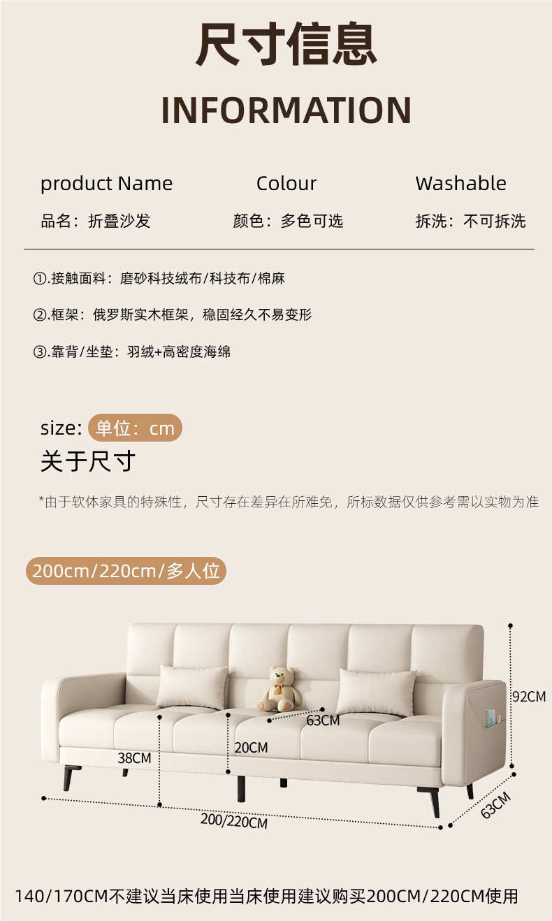 접이식 소파 베드 이중 목적 소파 거실 2024 새로운 간단한 크림 스타일 소파 작은 아파트 임대 집스토어 가기