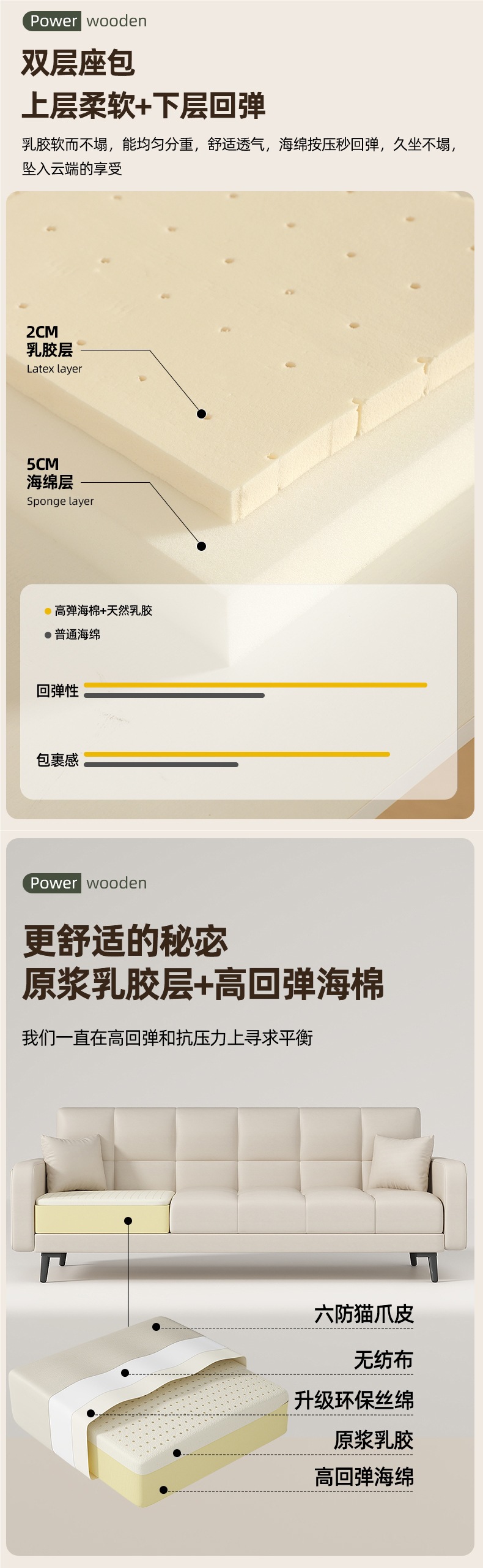 • 업그레이드된 천연라텍스 - 고양이 스크래치 가죽 + 베이지 (길이 170cm*펼친 폭 106cm) - 베개 2개 증정