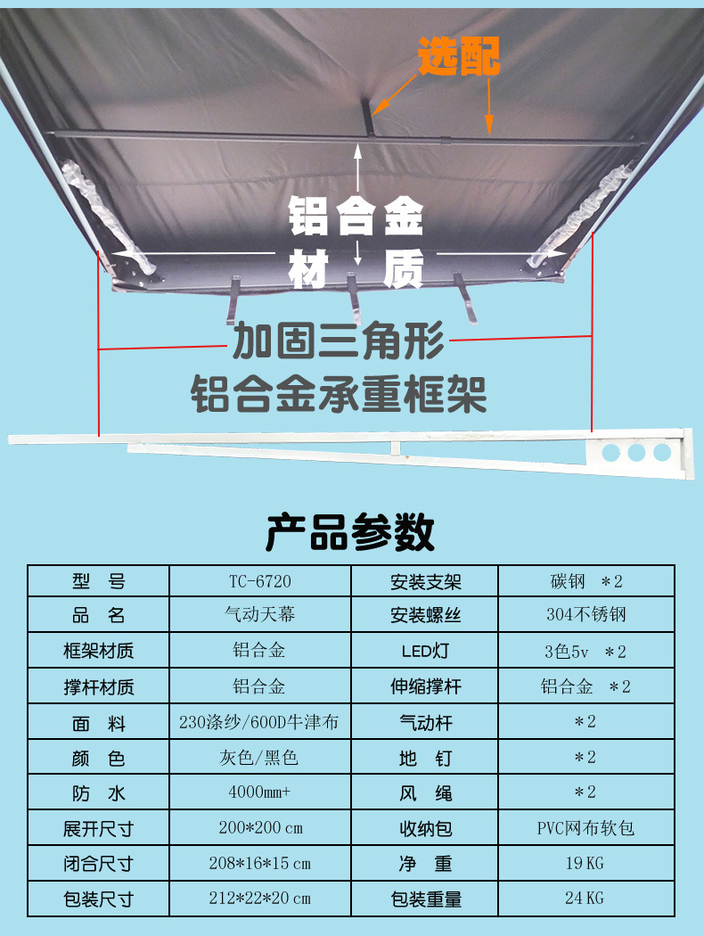 차량용 텐트, 공기압식 차양막, 크로스보더 SUV 차량용 텐트, 야외 캠핑용 알루미늄 합금 옥스포드 천 방수 차양막