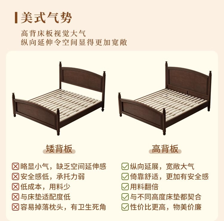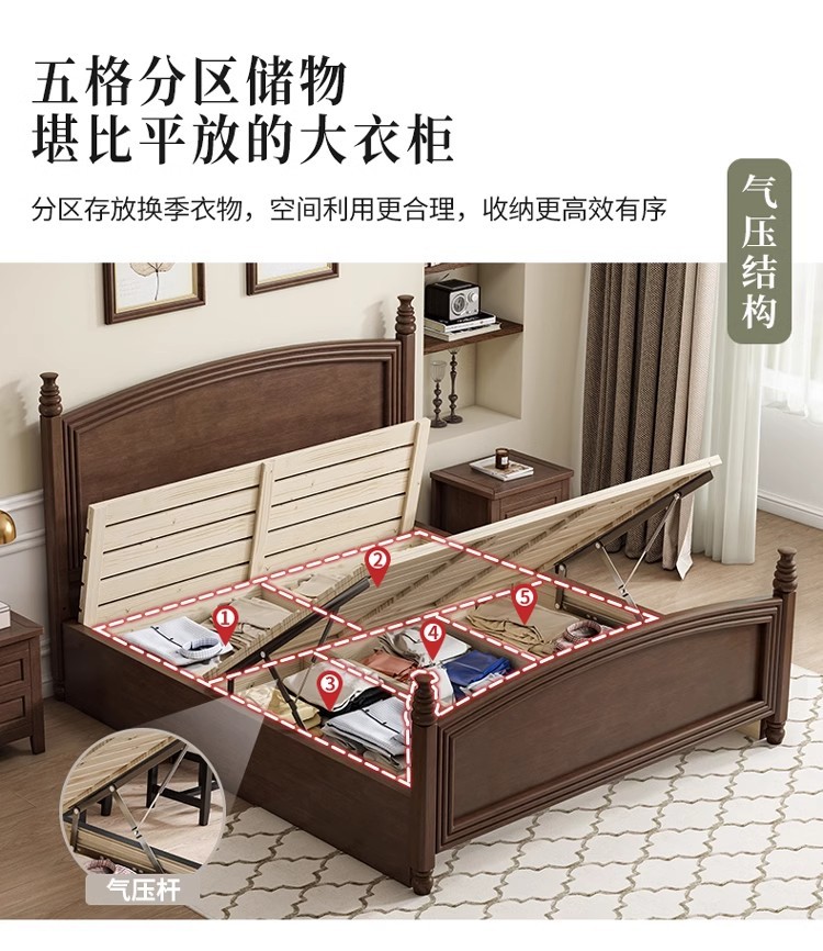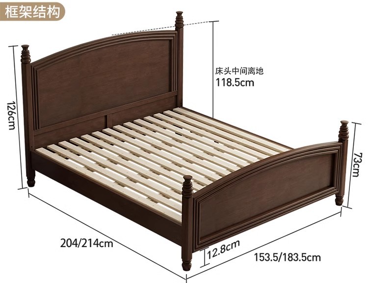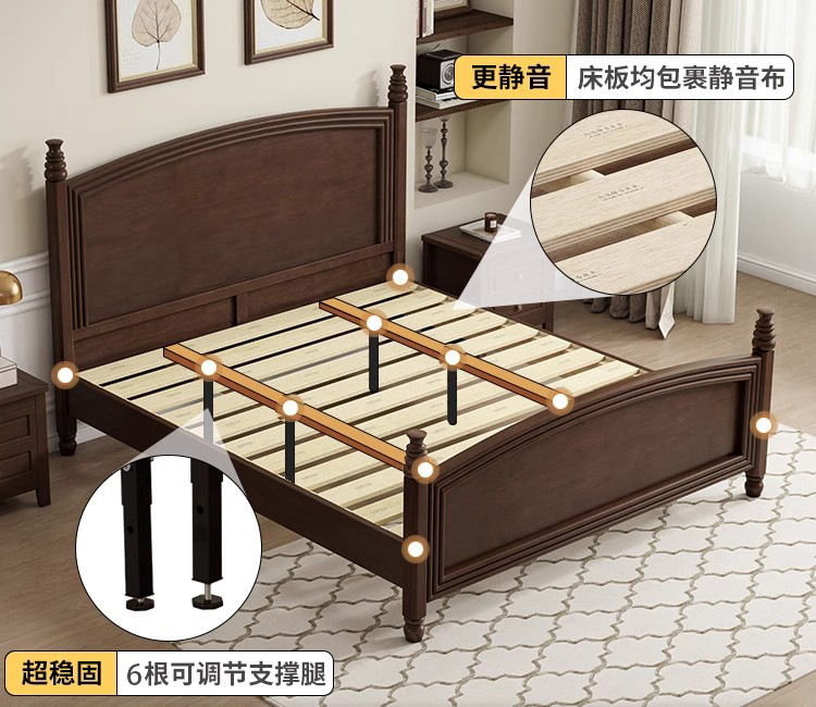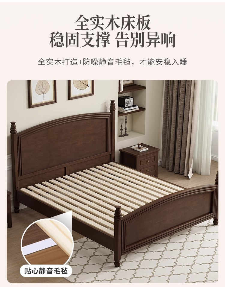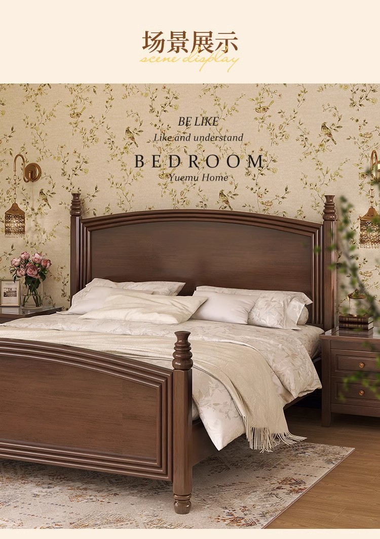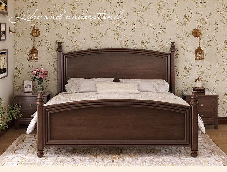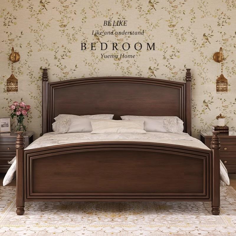 심플한 스타일의 컨트리 아메리칸 원목 침대, 모던하고 심플한 1.8M 더블 침대, 레트로 프렌치 침대, 라이트 럭셔리 웨딩 침대, 마스터 침실