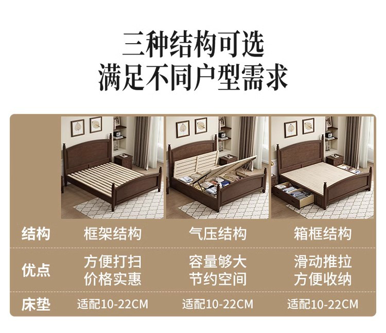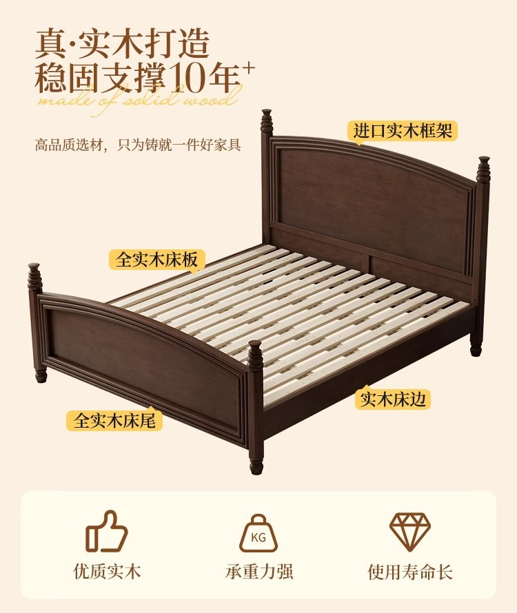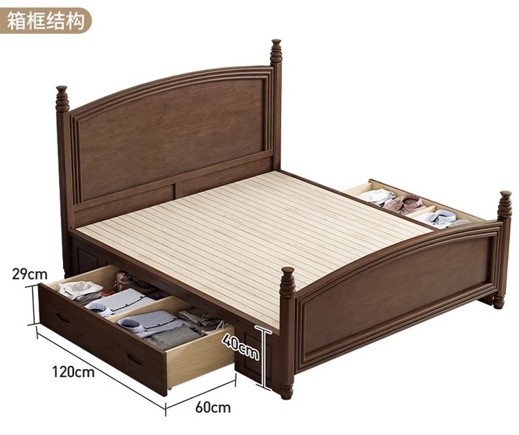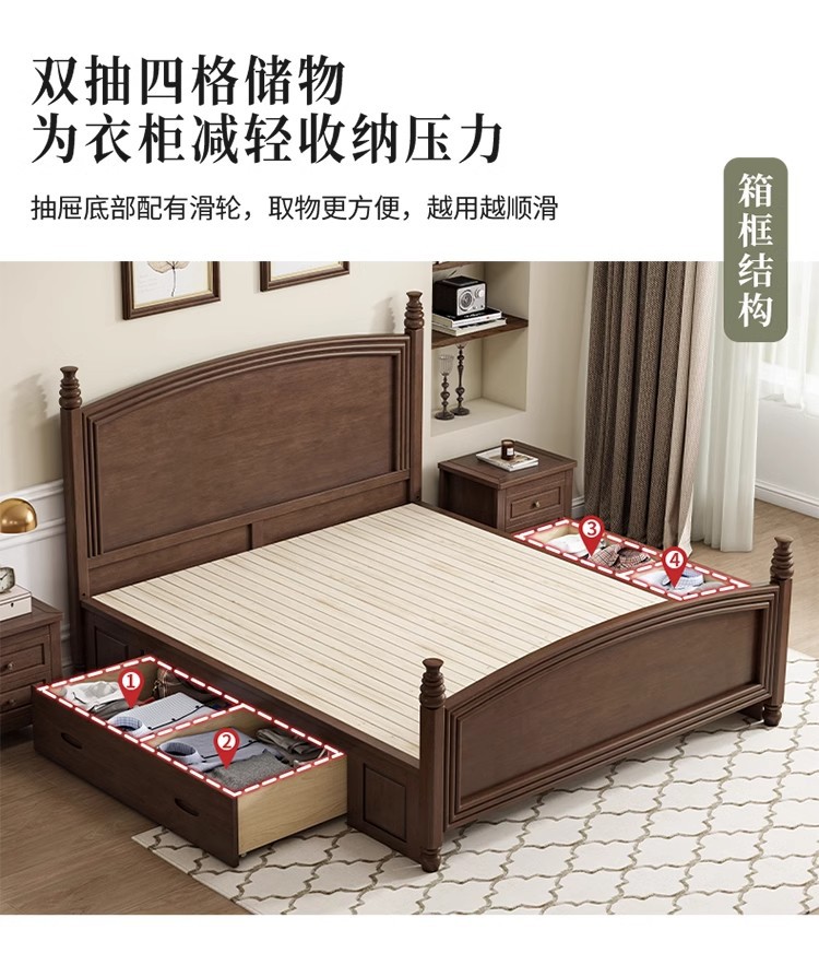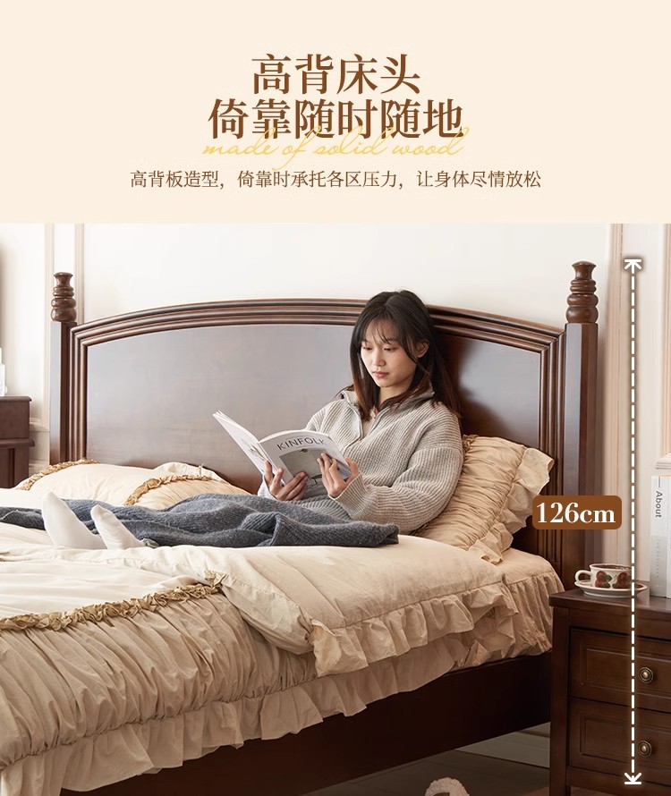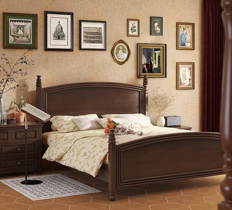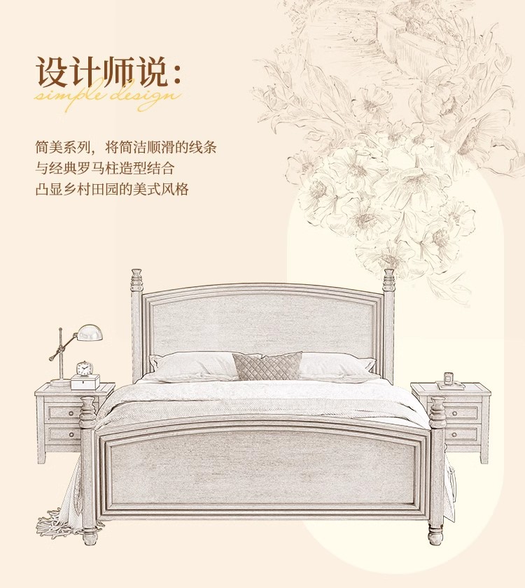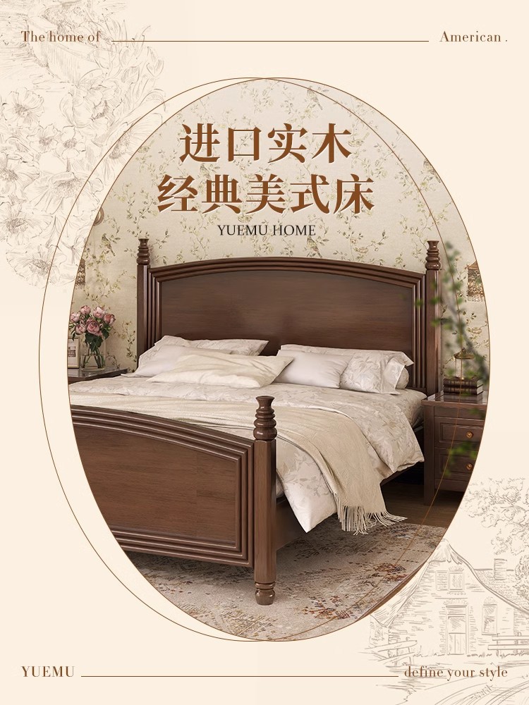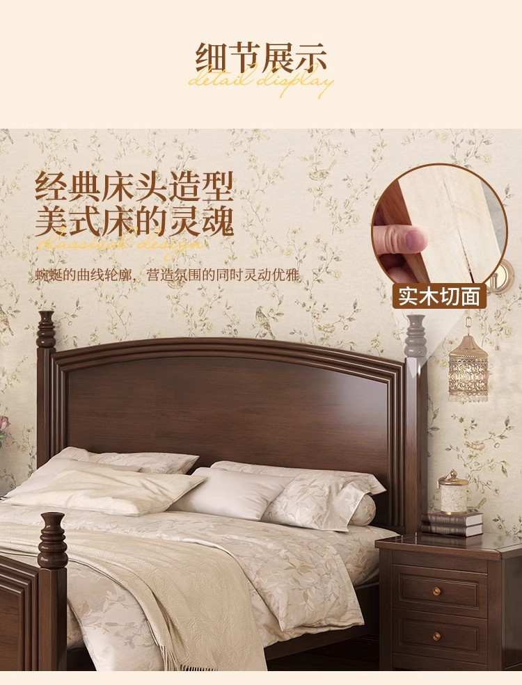 심플한 스타일의 컨트리 아메리칸 원목 침대, 모던하고 심플한 1.8M 더블 침대, 레트로 프렌치 침대, 라이트 럭셔리 웨딩 침대, 마스터 침실스토어 가기