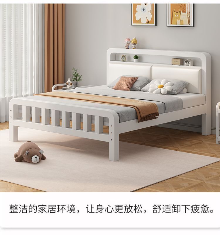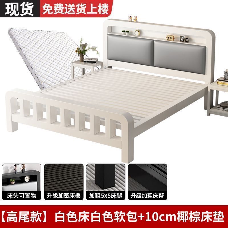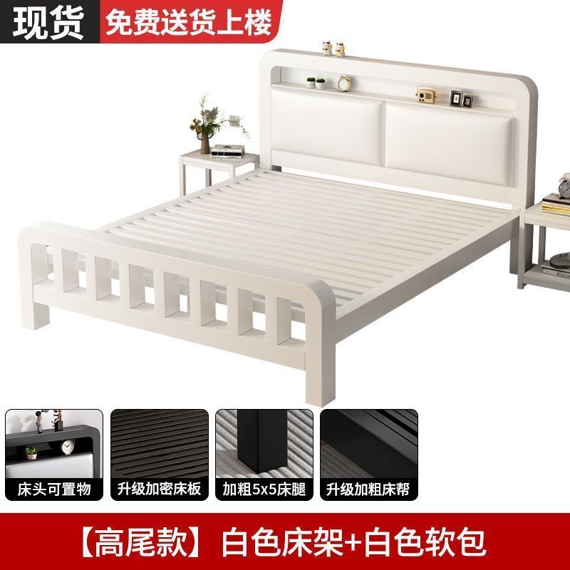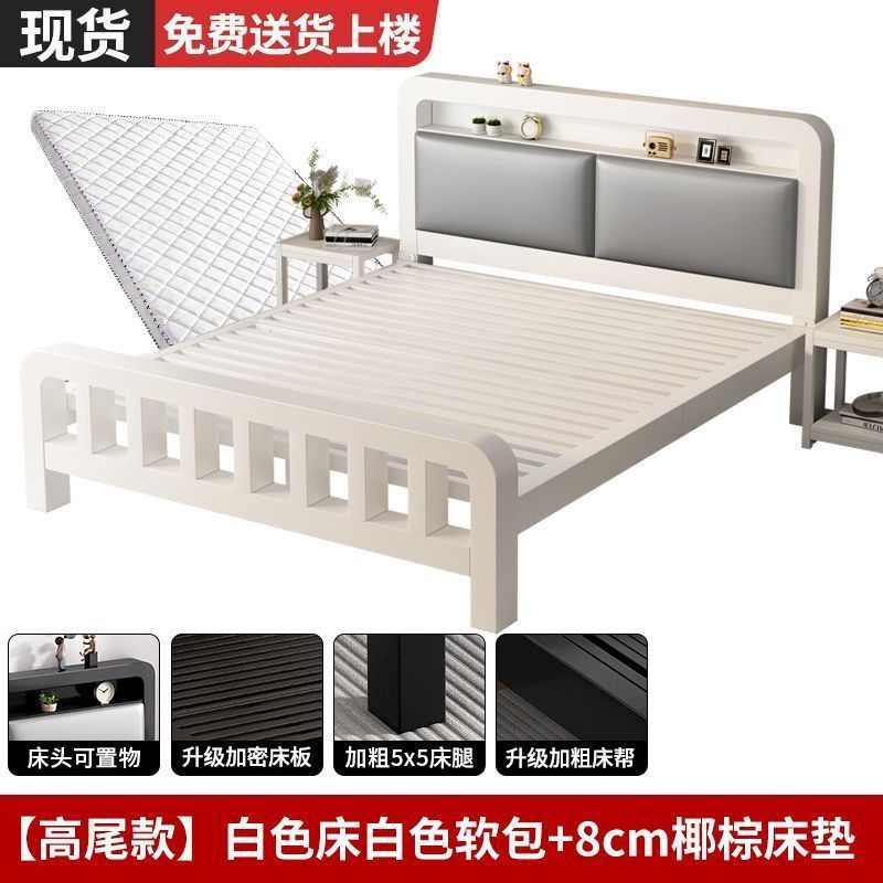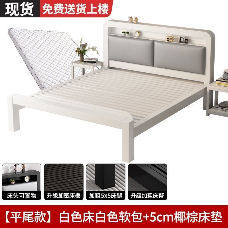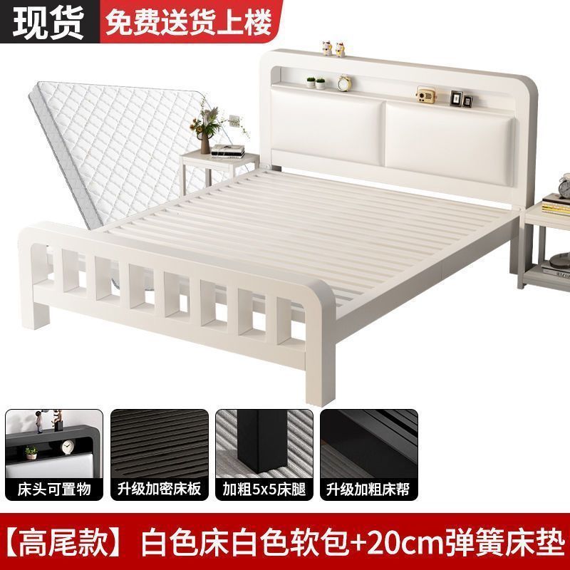 • 하이엔드 모델 - 밀크 화이트 네이키드 침대 + 매트리스 8cm개 [두꺼운 흰색 소프트 등받이]