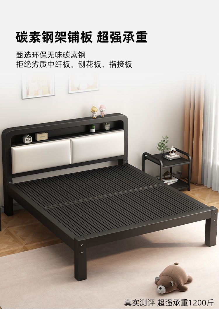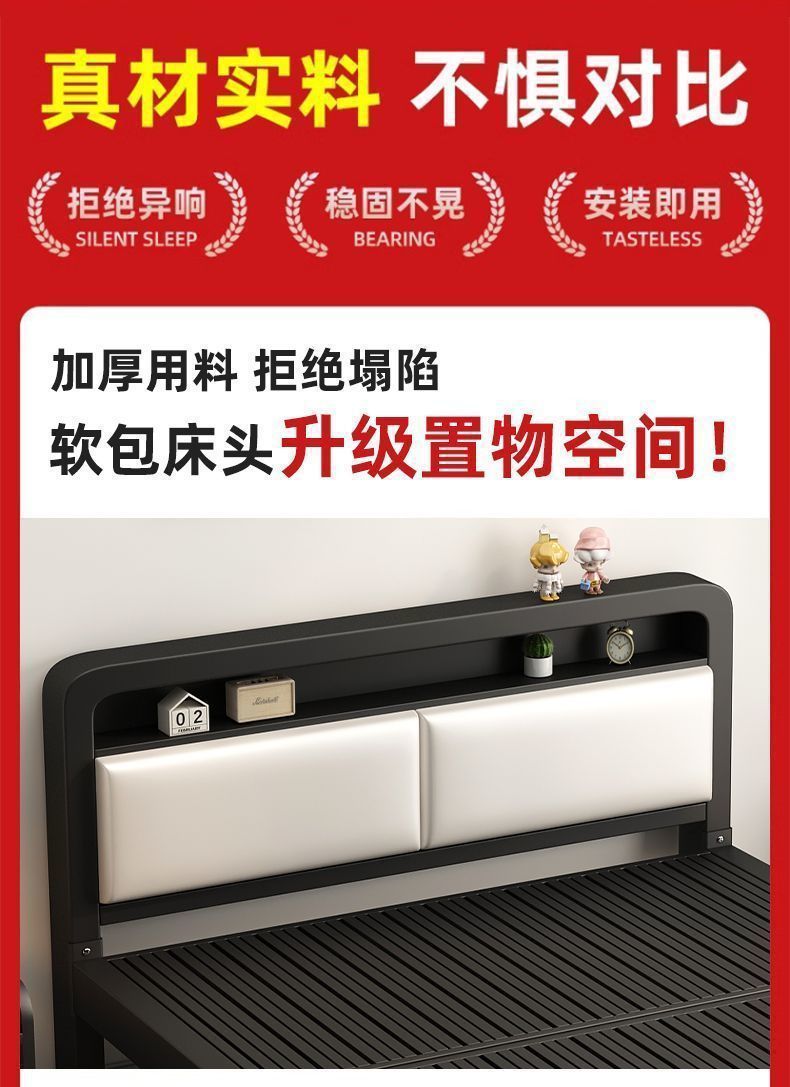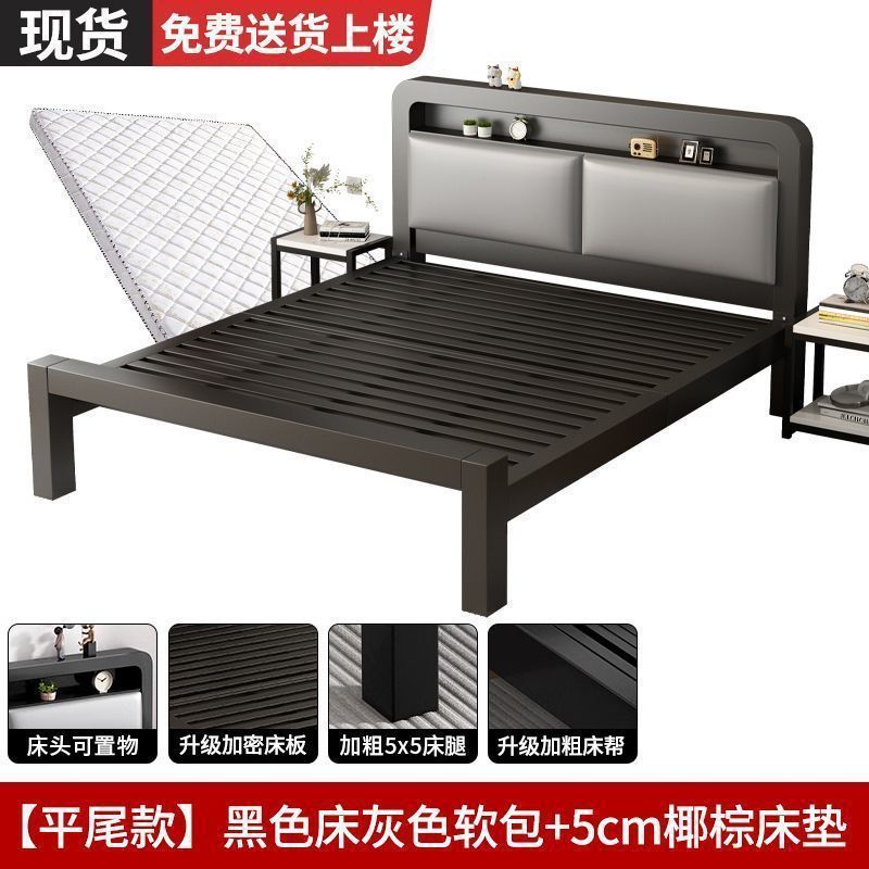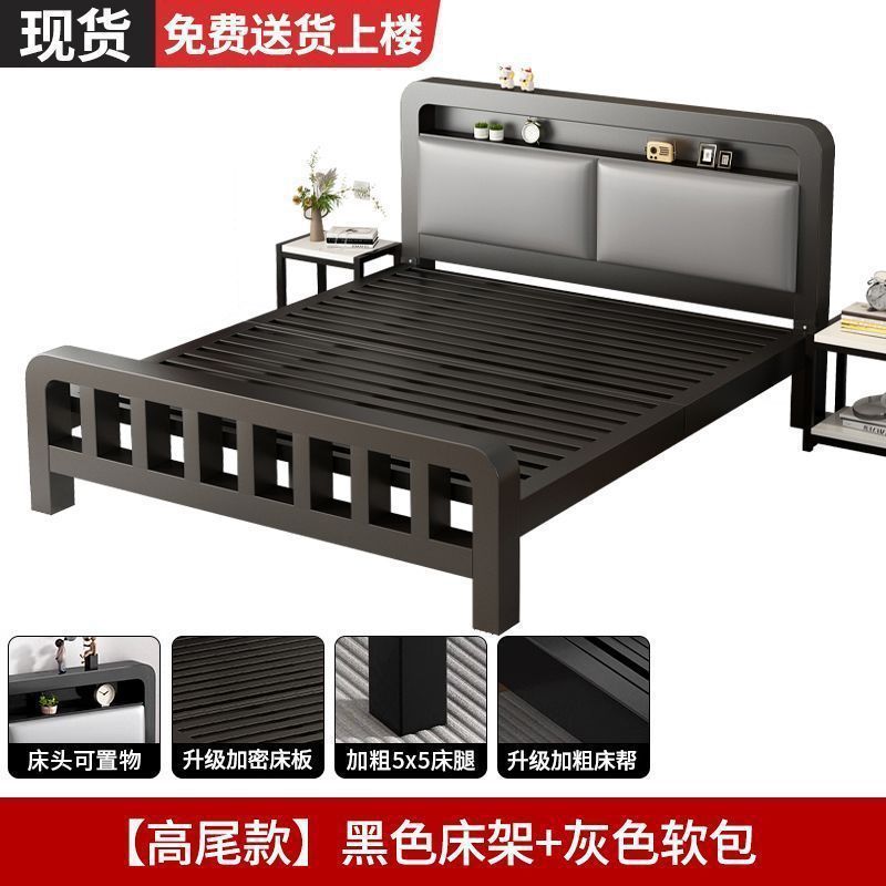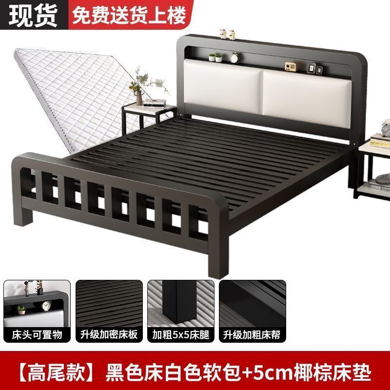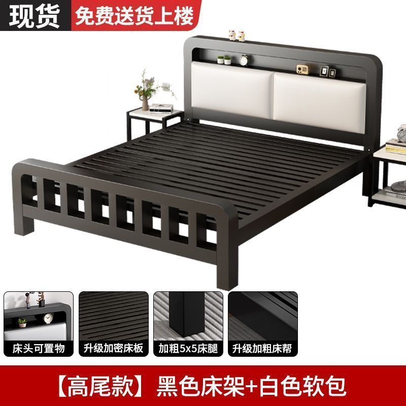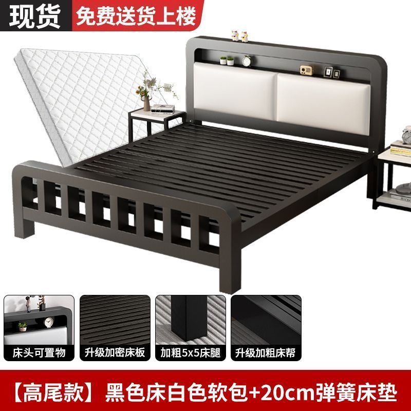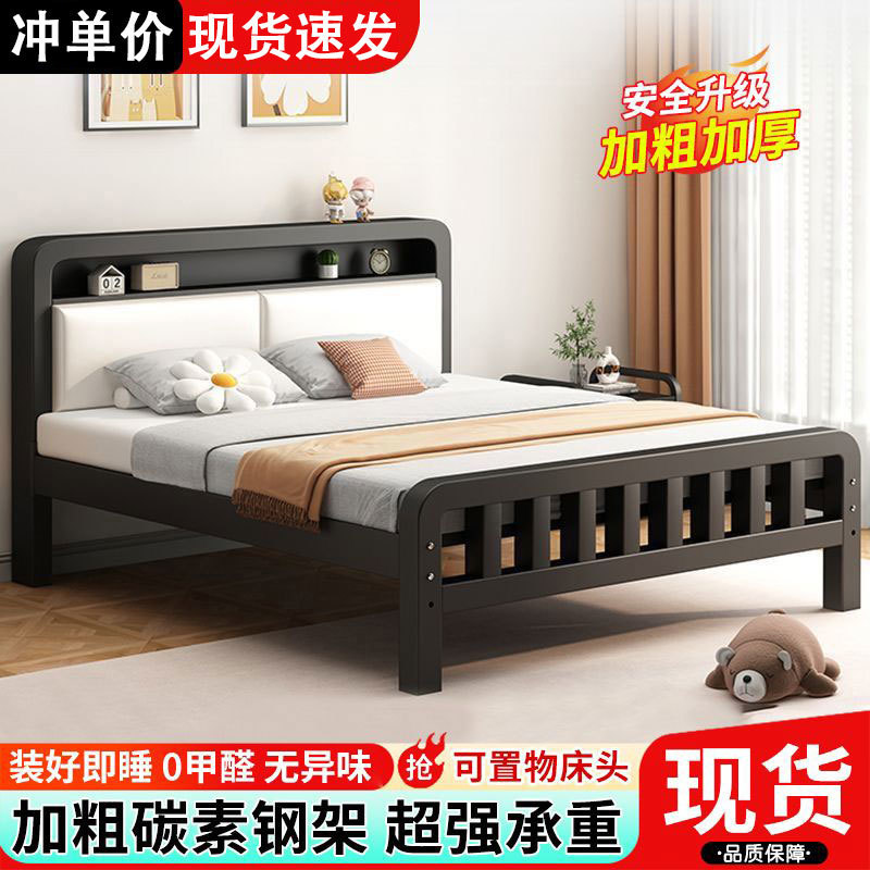유럽식 철제 침대 1.8m 강화 및 두꺼운 더블 침대 1m 가정용 싱글 침대 스테인레스 스틸 임대 주택 철제 프레임 침대스토어 가기