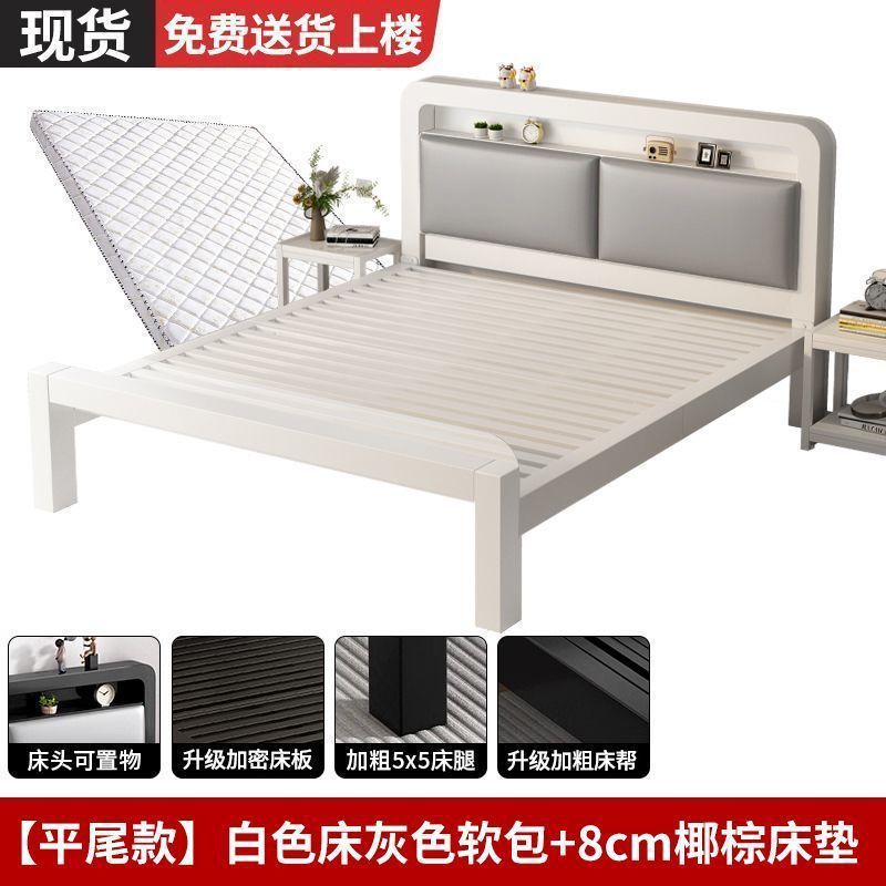 • 플랫테일 스타일 - 유백색 네이키드 침대 + 매트리스 8cm개 [두꺼운 회색 소프트 등받이]