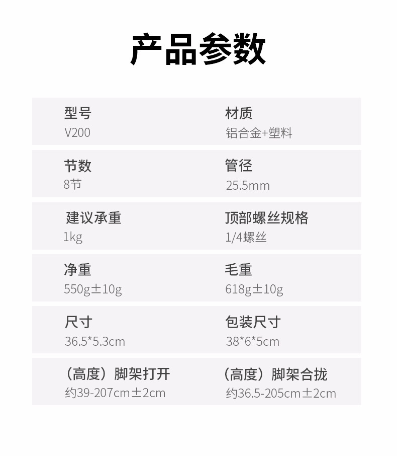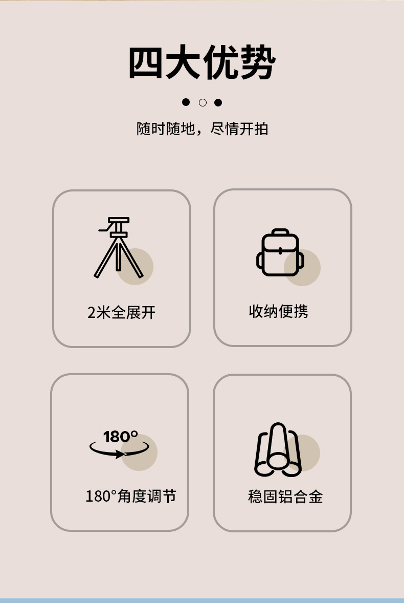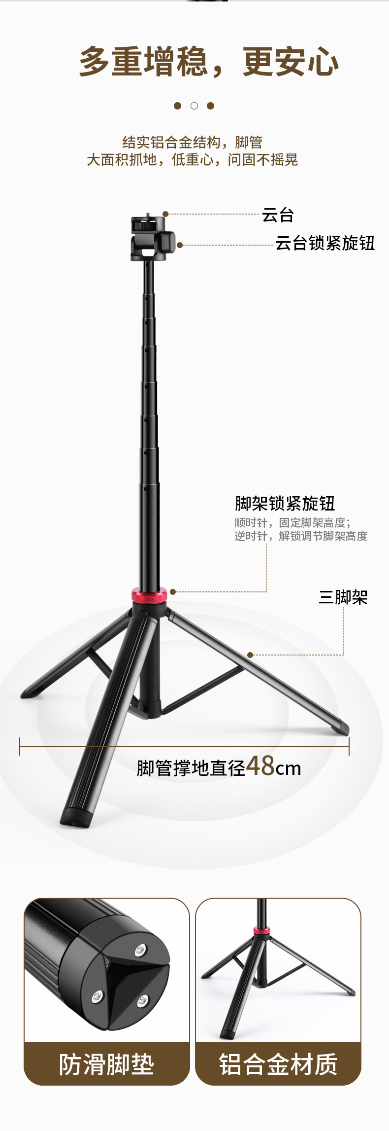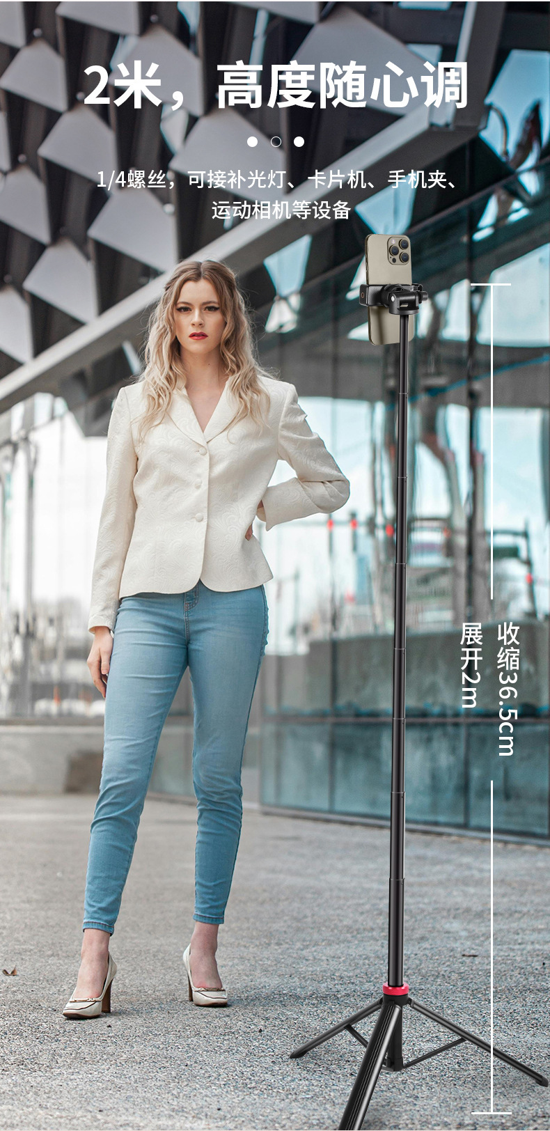2m 플로어 스탠드 야외용 4단계 높이 강화 지지대(휴대폰 클립 포함) 삼각대 4단 접이식 휴대용스토어 가기