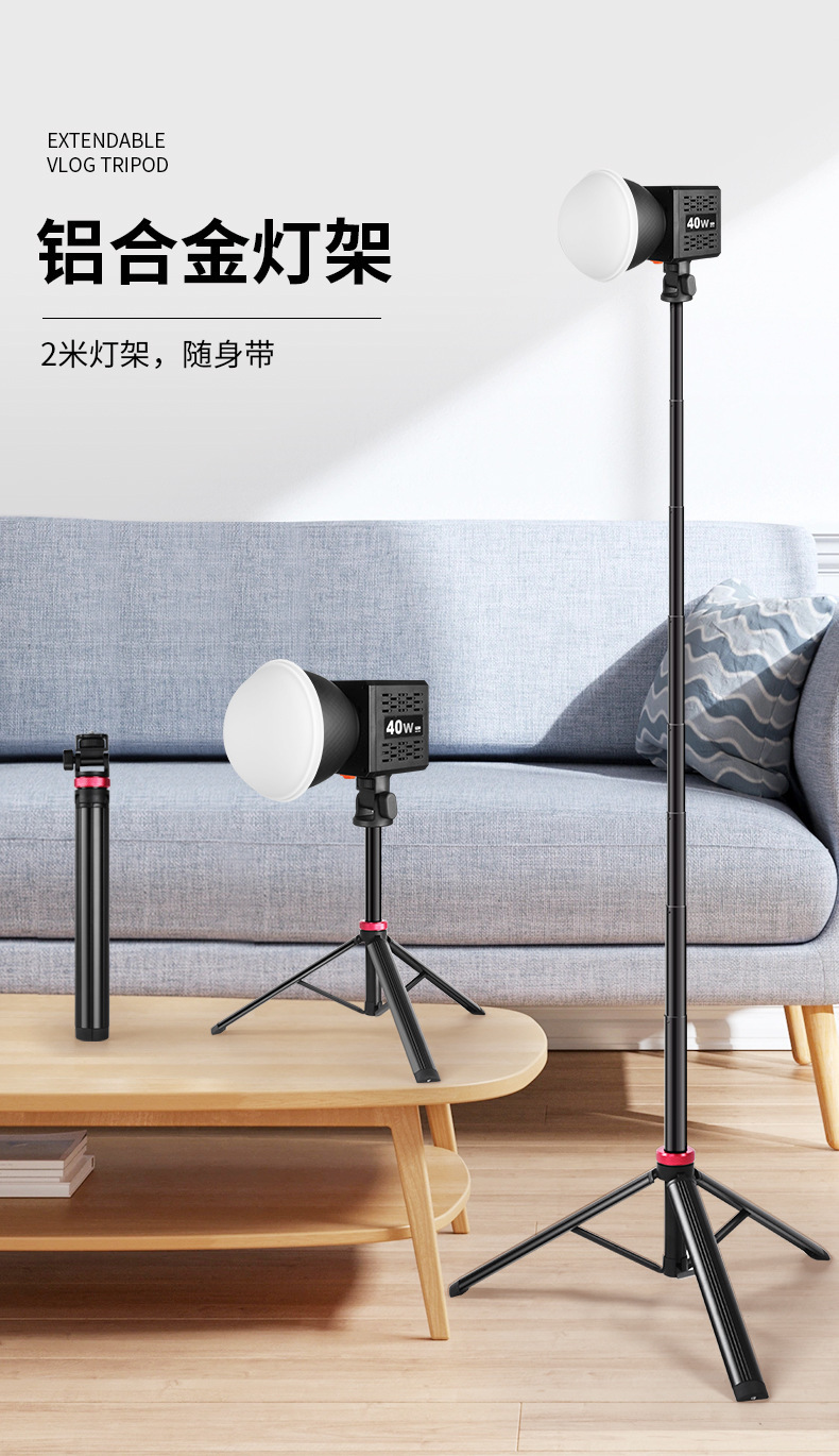 2m 플로어 스탠드 야외용 4단계 높이 강화 지지대(휴대폰 클립 포함) 삼각대 4단 접이식 휴대용