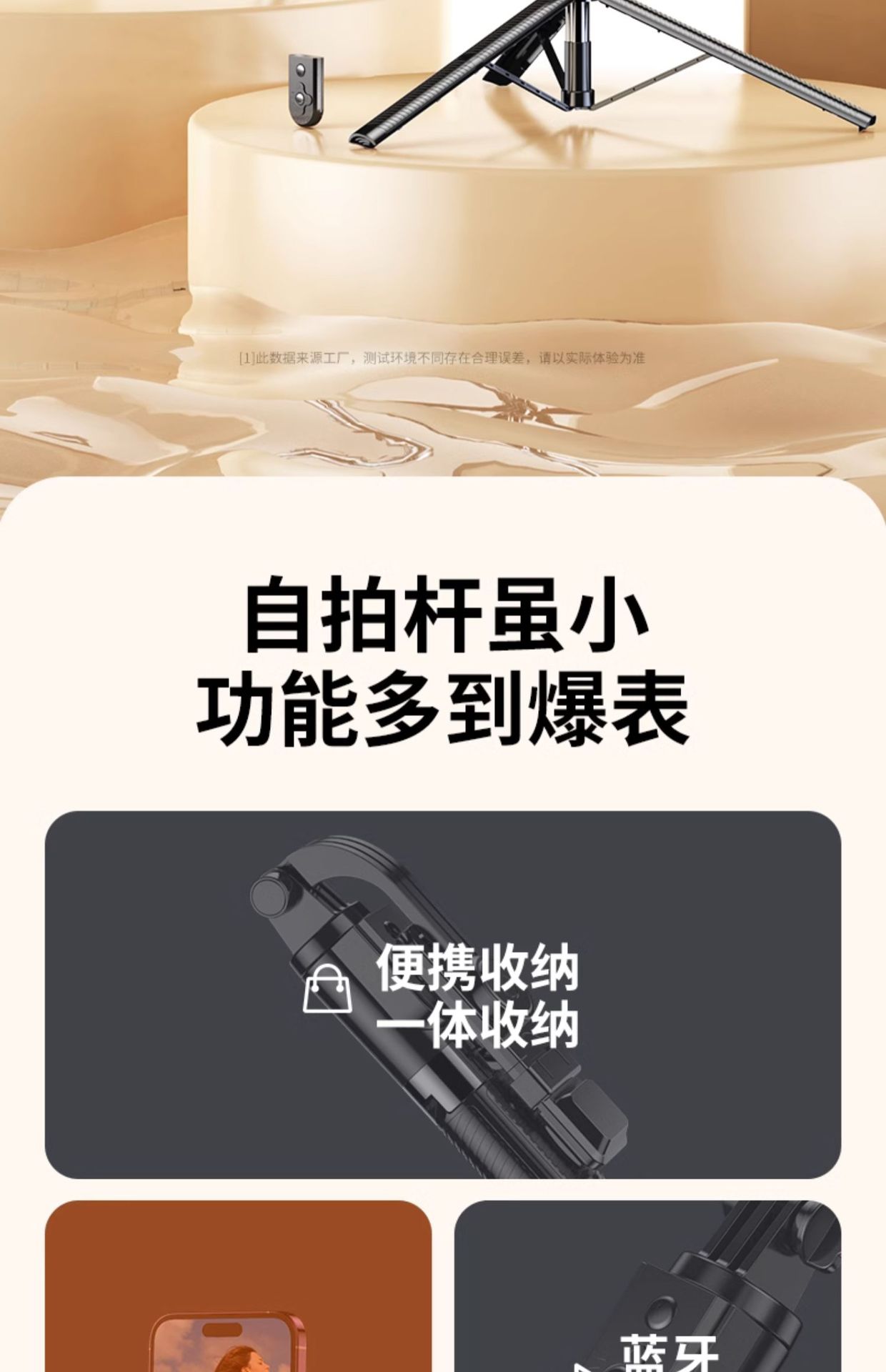 • 1.3m 화이트 싱글 필라이트 모델 [통합 접이식 + 듀플렉스 안정 삼각대 지지대] + 15m 블루투스 리모컨
