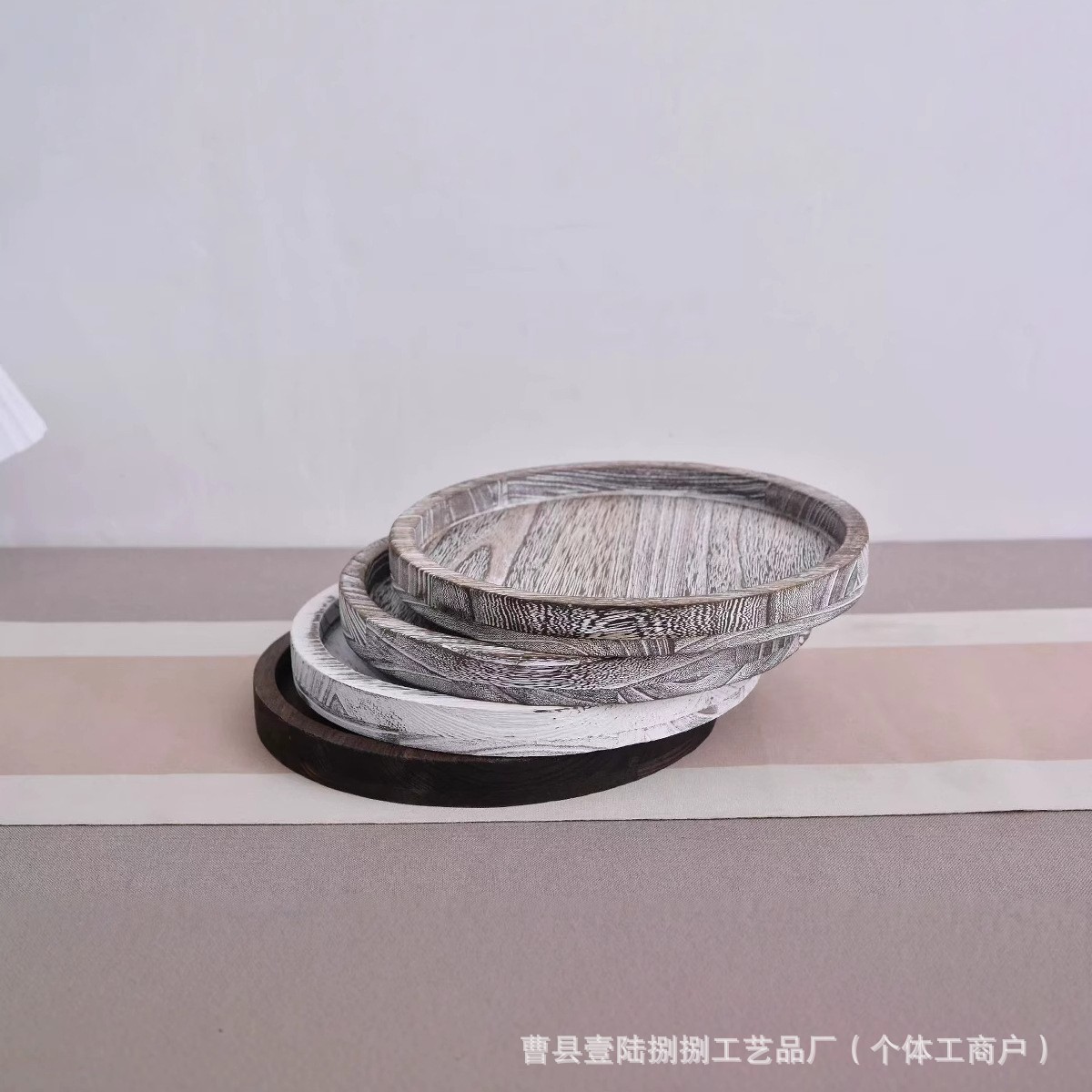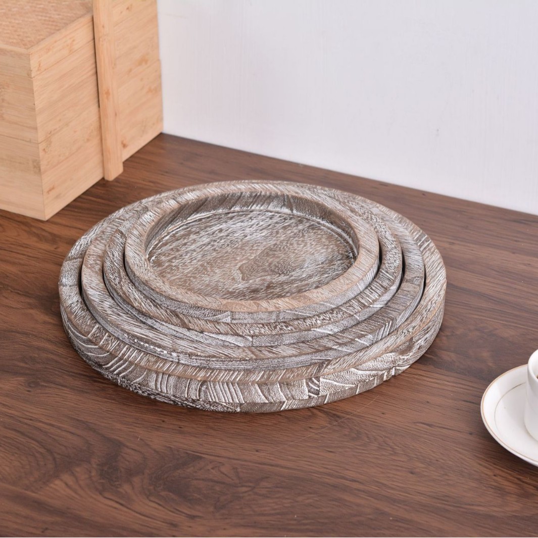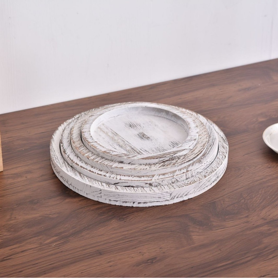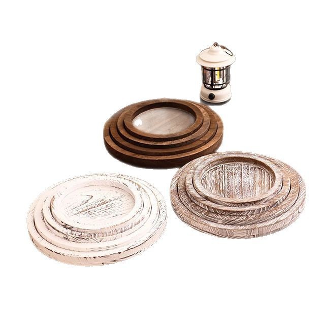 레트로 나무로 만든 프랑스 디너 플레이트, 둥근 멀티 사양 아침 식사 트레이, 단단한 나무 과일 스낵 플레이트, 보석 트레이스토어 가기