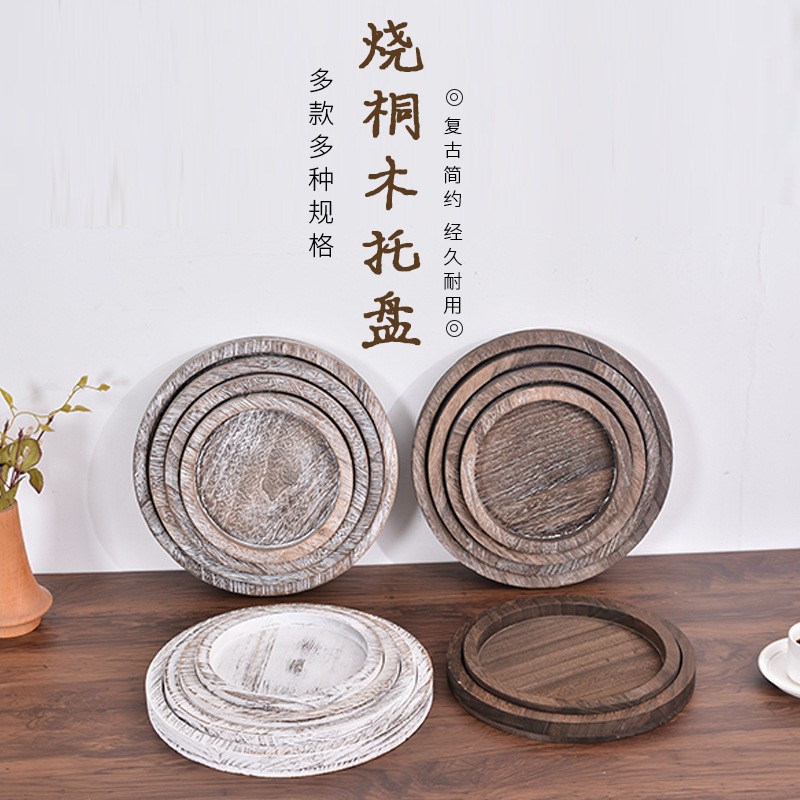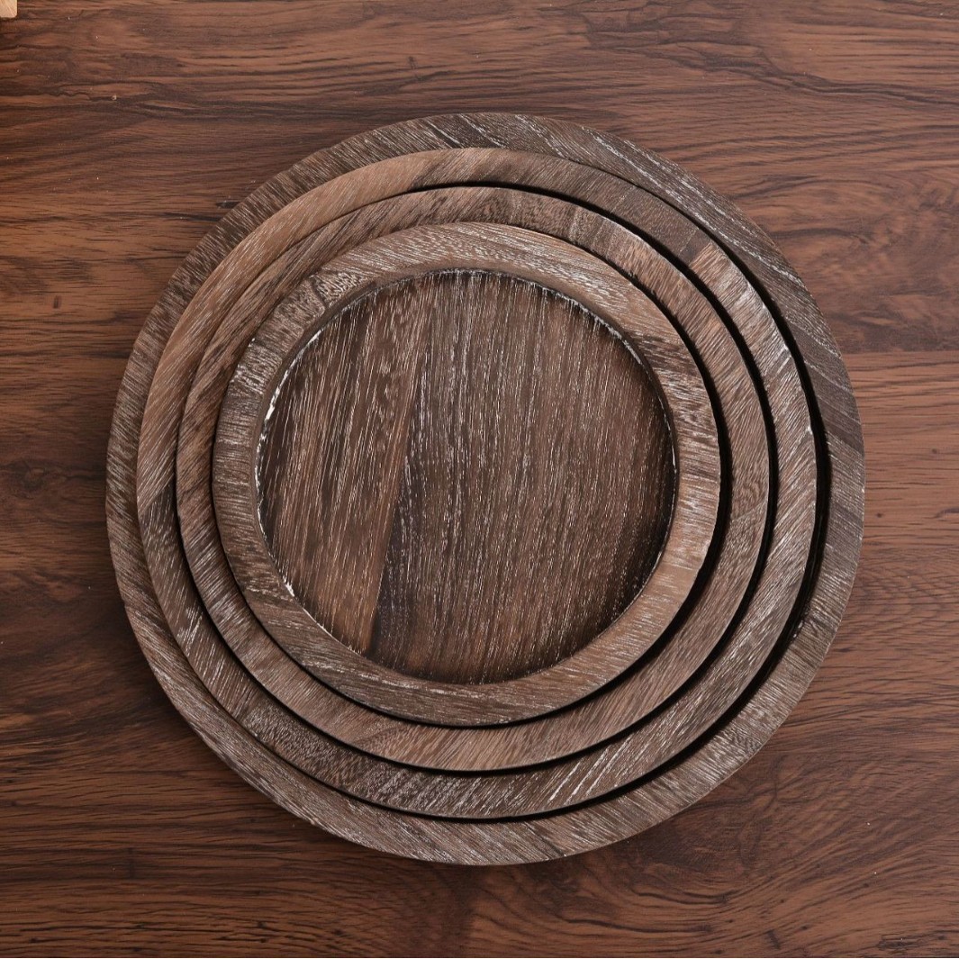 레트로 나무로 만든 프랑스 디너 플레이트, 둥근 멀티 사양 아침 식사 트레이, 단단한 나무 과일 스낵 플레이트, 보석 트레이