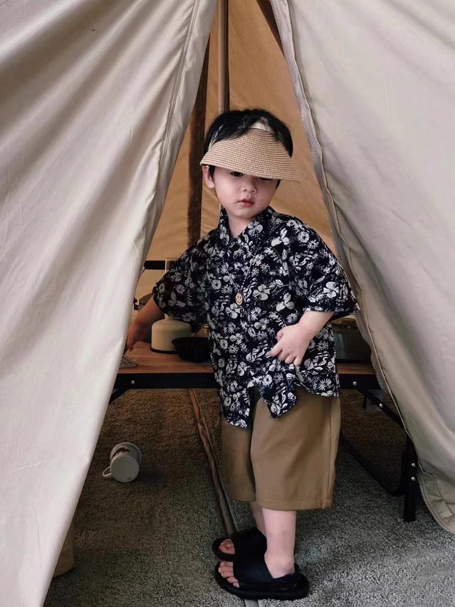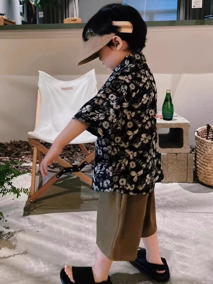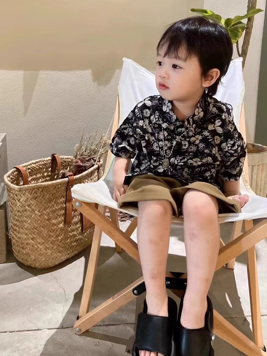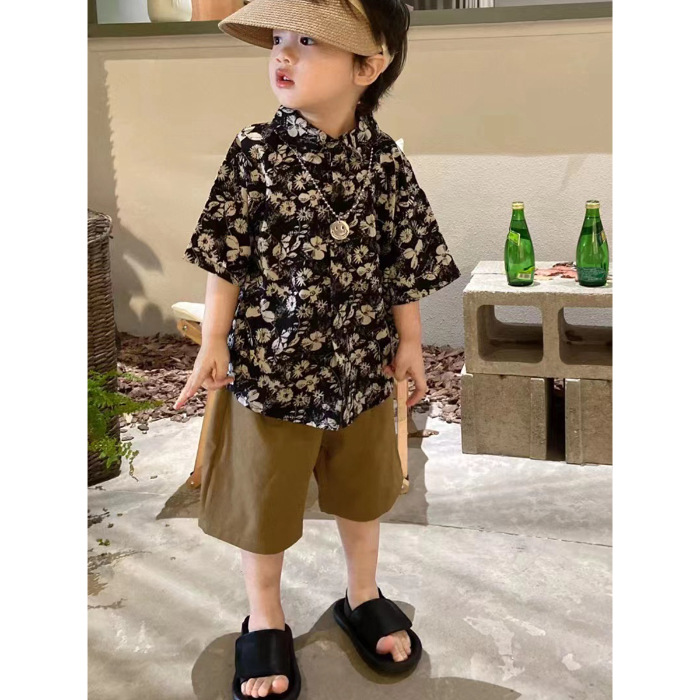 아동 의류 소년 셔츠 여름 새로운 패션 캐주얼 반팔 옷깃 어린이 여름 얇은 꽃 셔츠 휴가 스타일스토어 가기