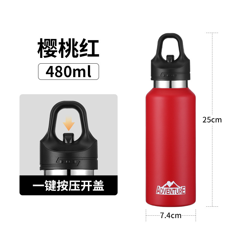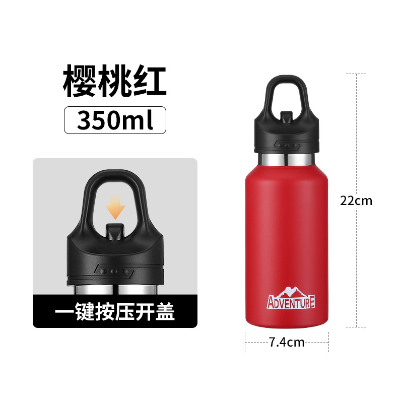 크로스보더 핸들 등산 스포츠 물병 316 스테인레스 스틸 원클릭 빠른 개방 보온병 컵 미국식 대형 입 직선 물컵