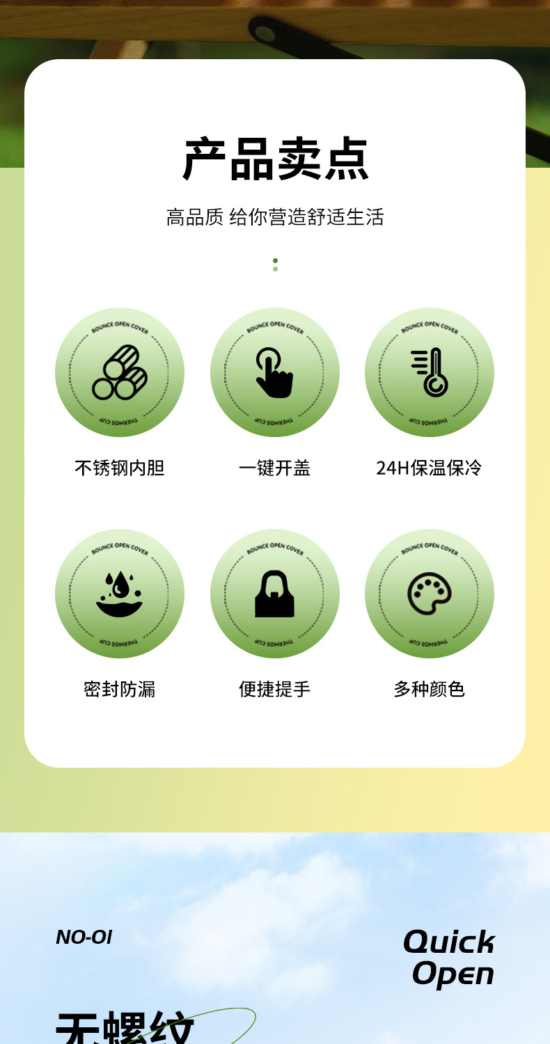 크로스보더 핸들 등산 스포츠 물병 316 스테인레스 스틸 원클릭 빠른 개방 보온병 컵 미국식 대형 입 직선 물컵스토어 가기