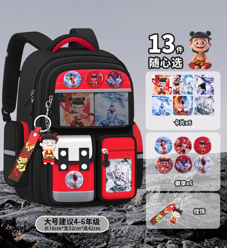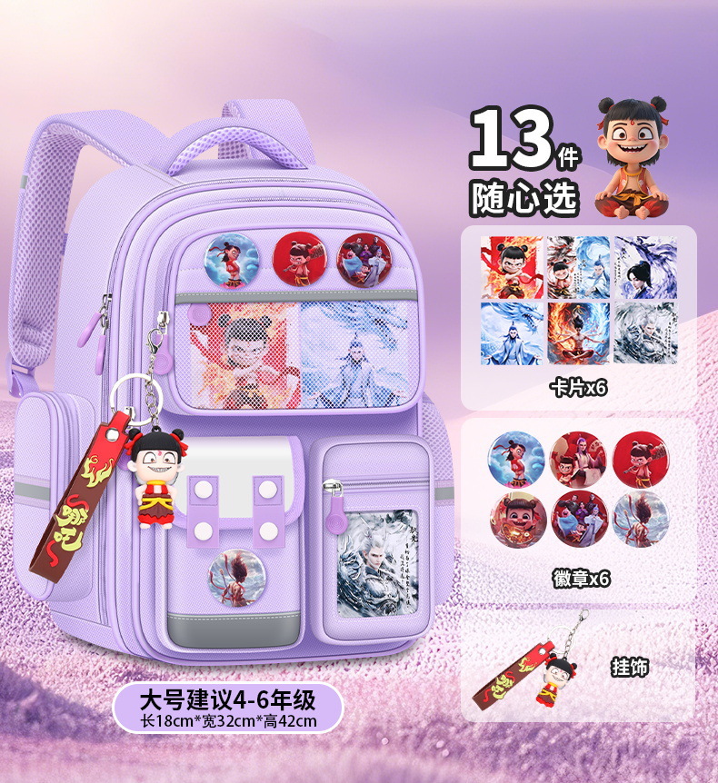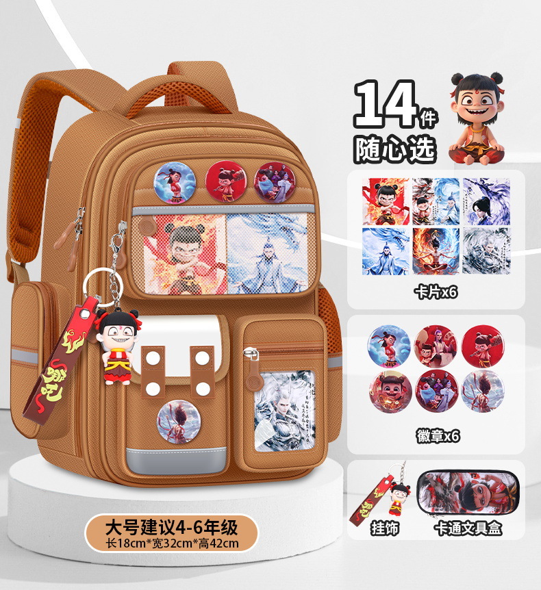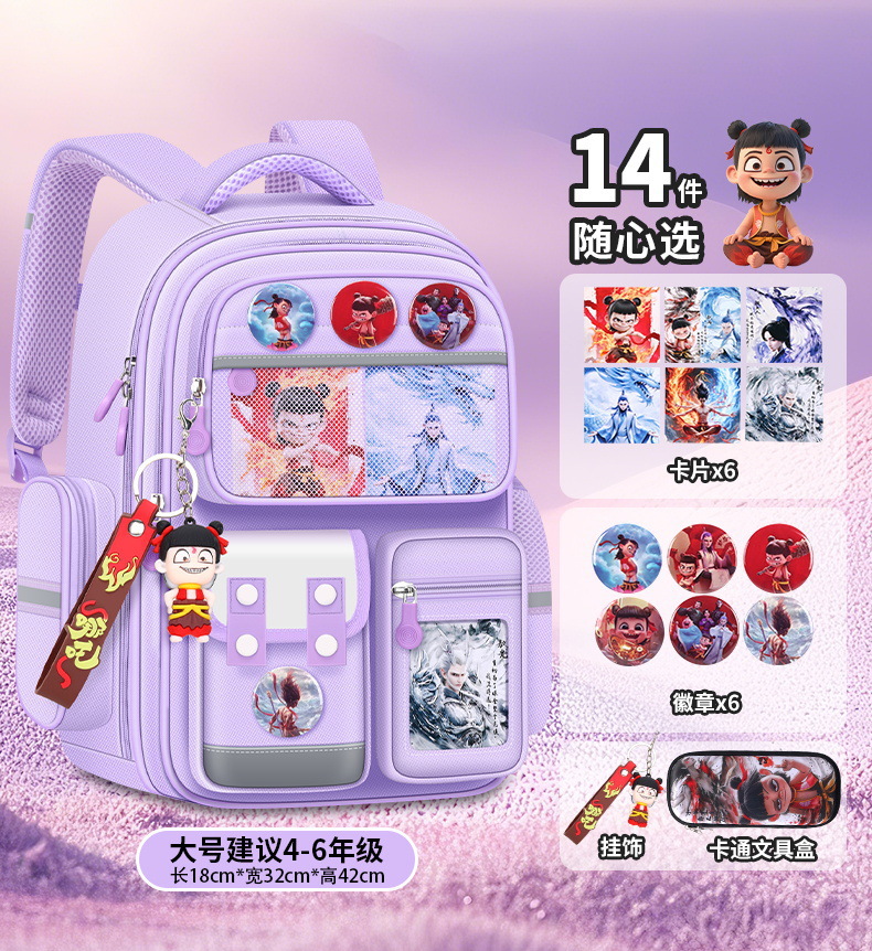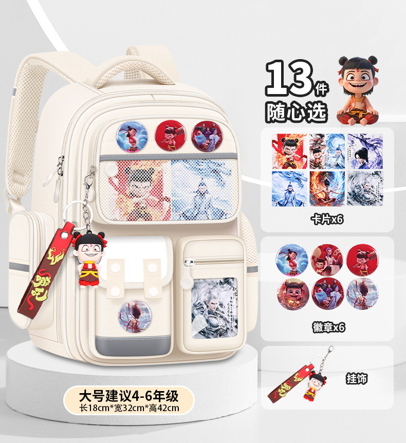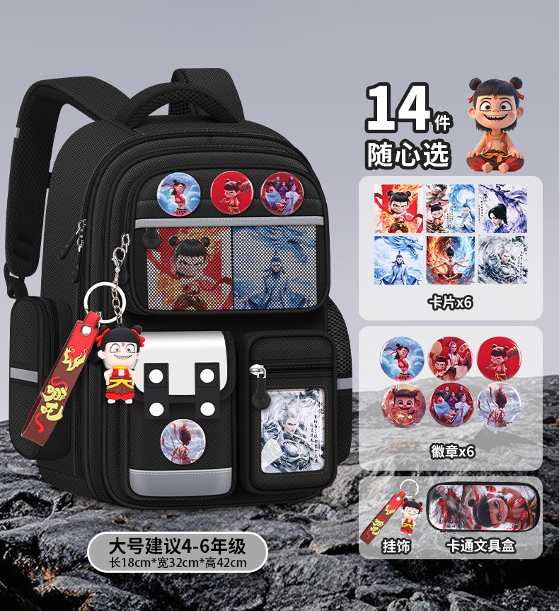 Na Zha Ao Bing 초등학교 가방 여아 및 남아 1~6학년 부담을 줄여주는 가볍고 대용량 어린이 배낭