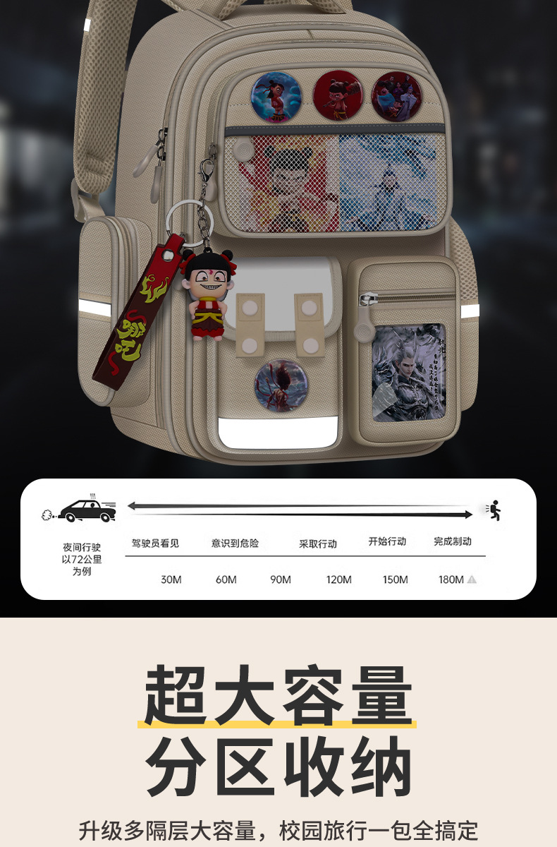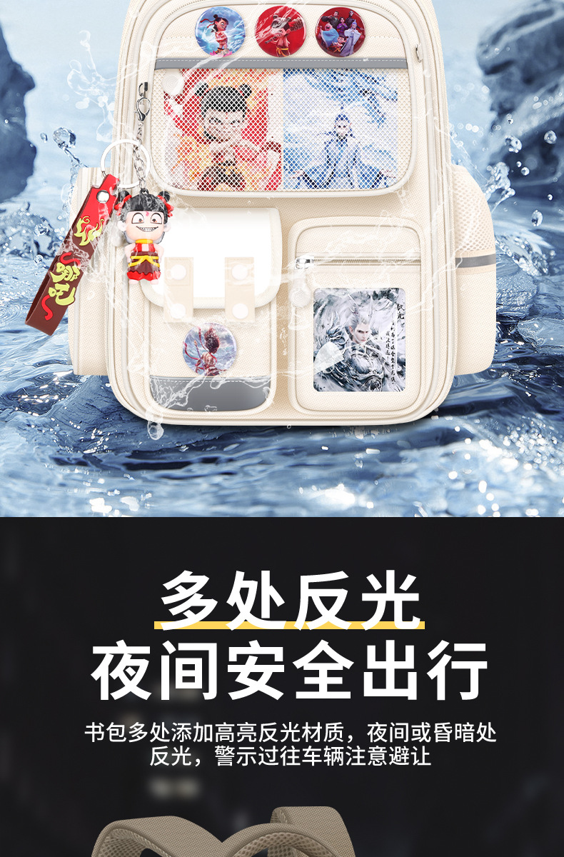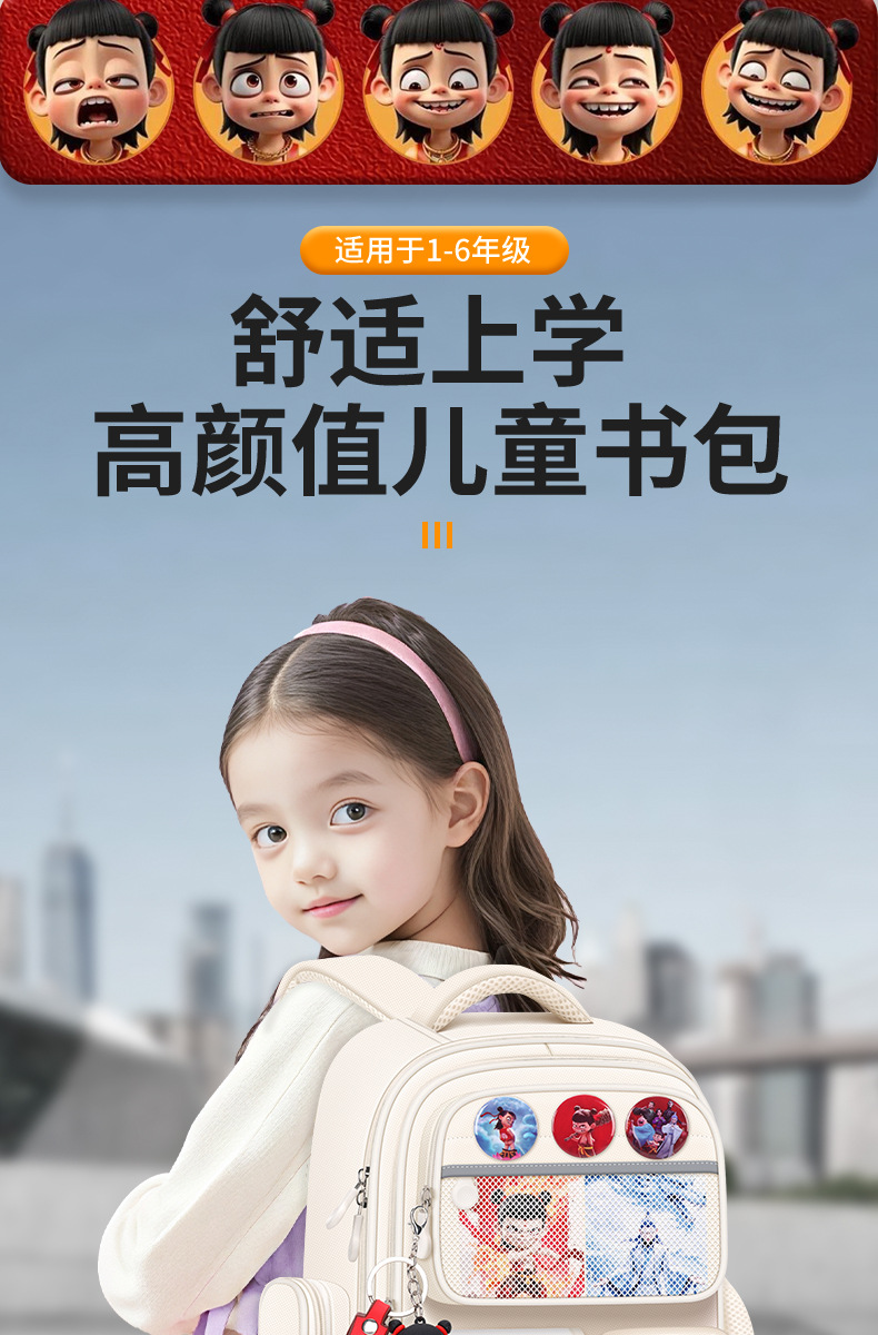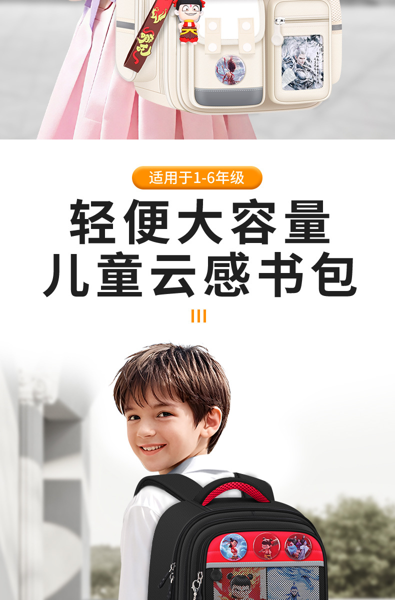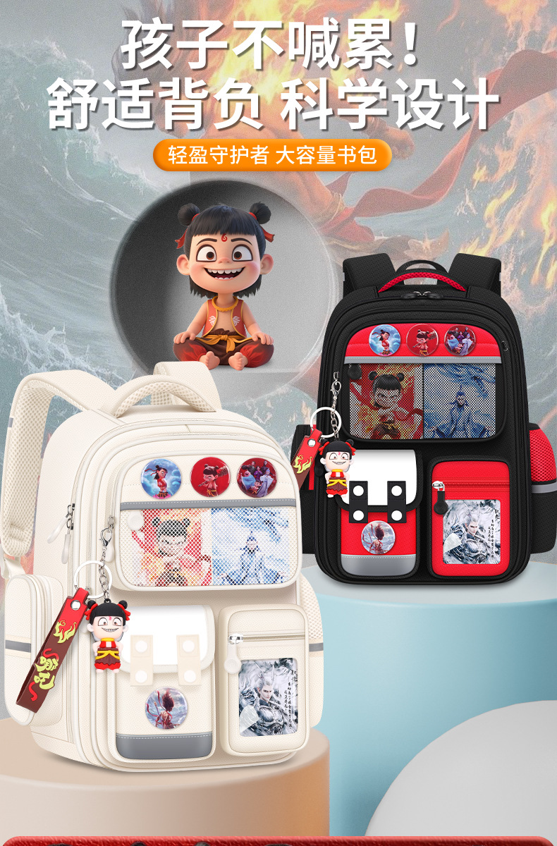 Na Zha Ao Bing 초등학교 가방 여아 및 남아 1~6학년 부담을 줄여주는 가볍고 대용량 어린이 배낭스토어 가기