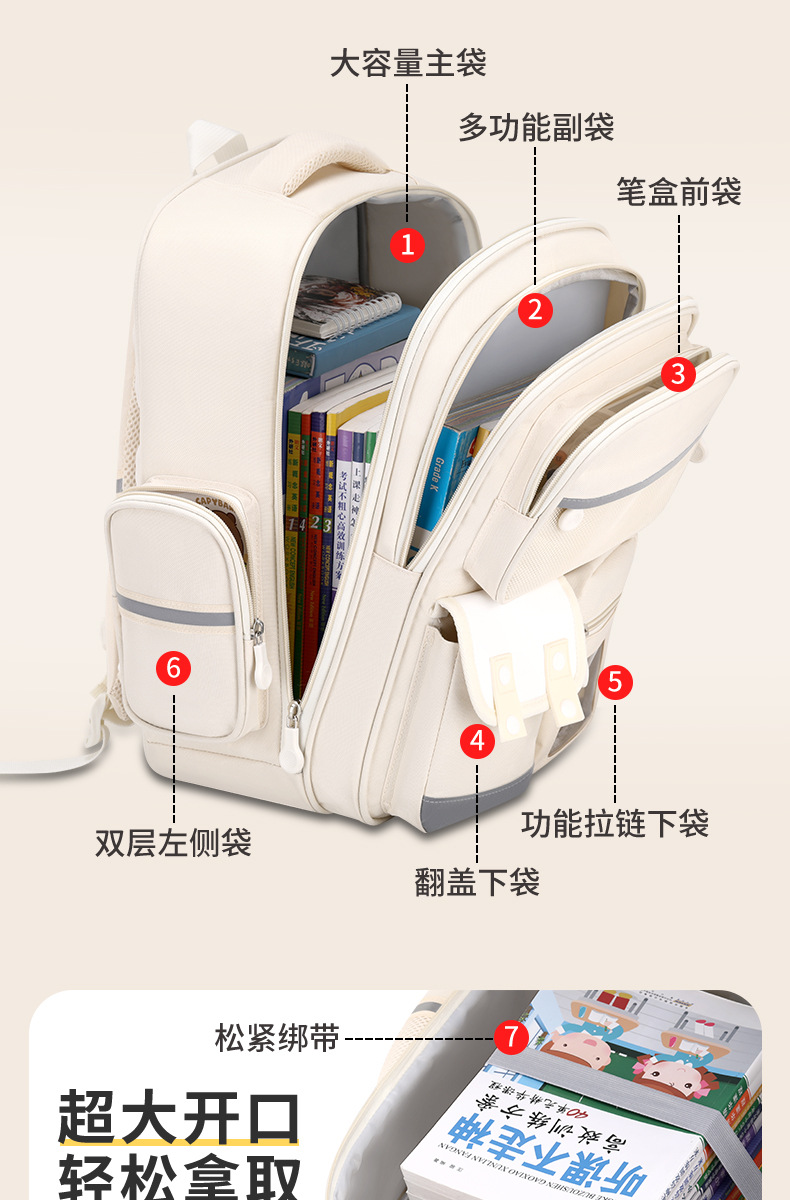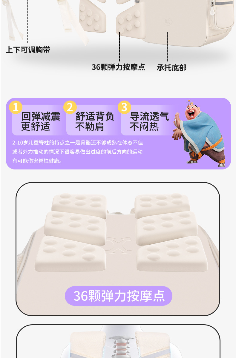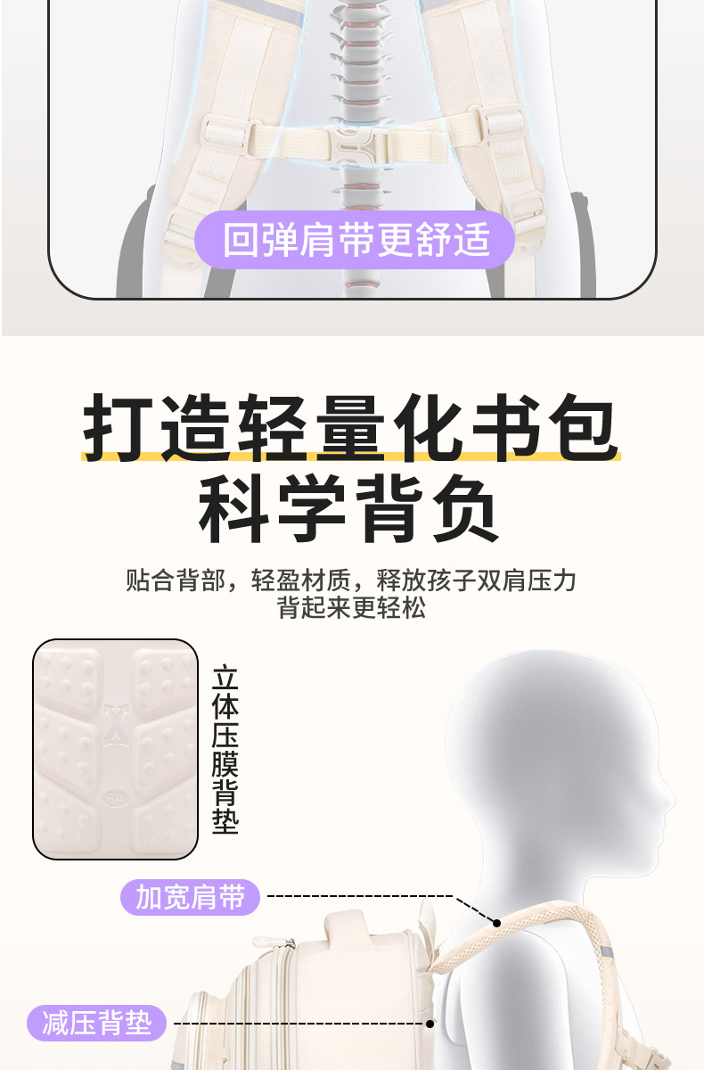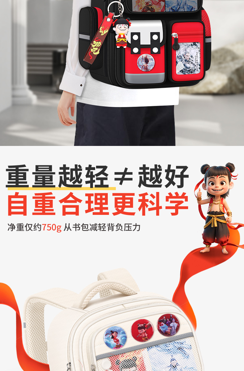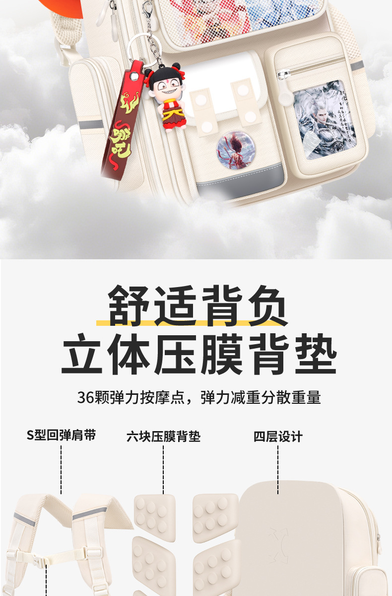 Na Zha Ao Bing 초등학교 가방 여아 및 남아 1~6학년 부담을 줄여주는 가볍고 대용량 어린이 배낭스토어 가기