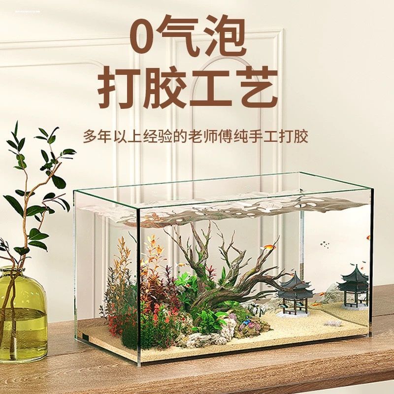 인터넷 연예인 비닐 새로운 직각 고화질 유리 수조 홈 거실 작은 데스크탑 발코니 스트림 탱크 골드스토어 가기