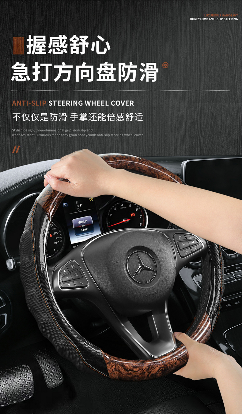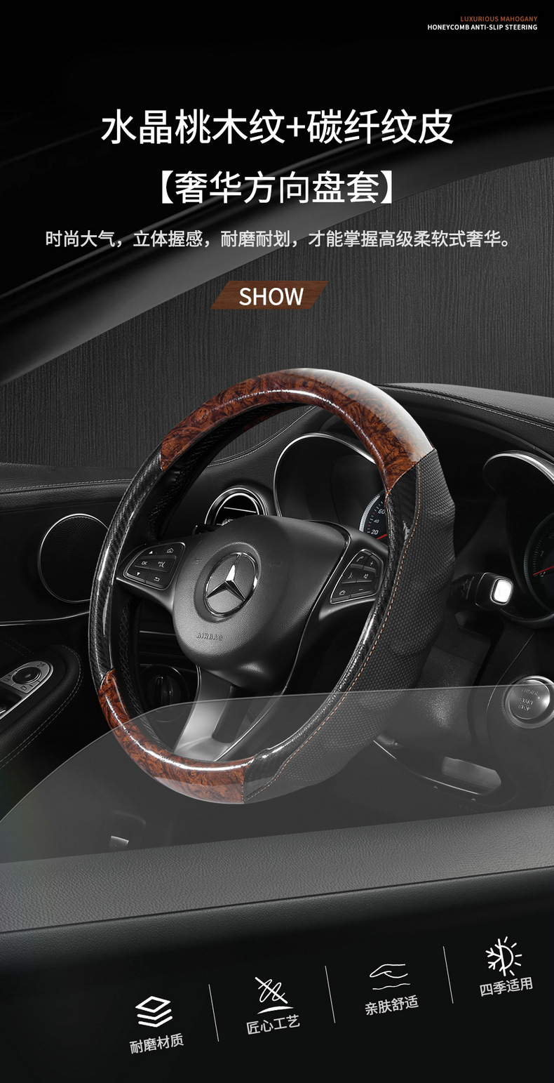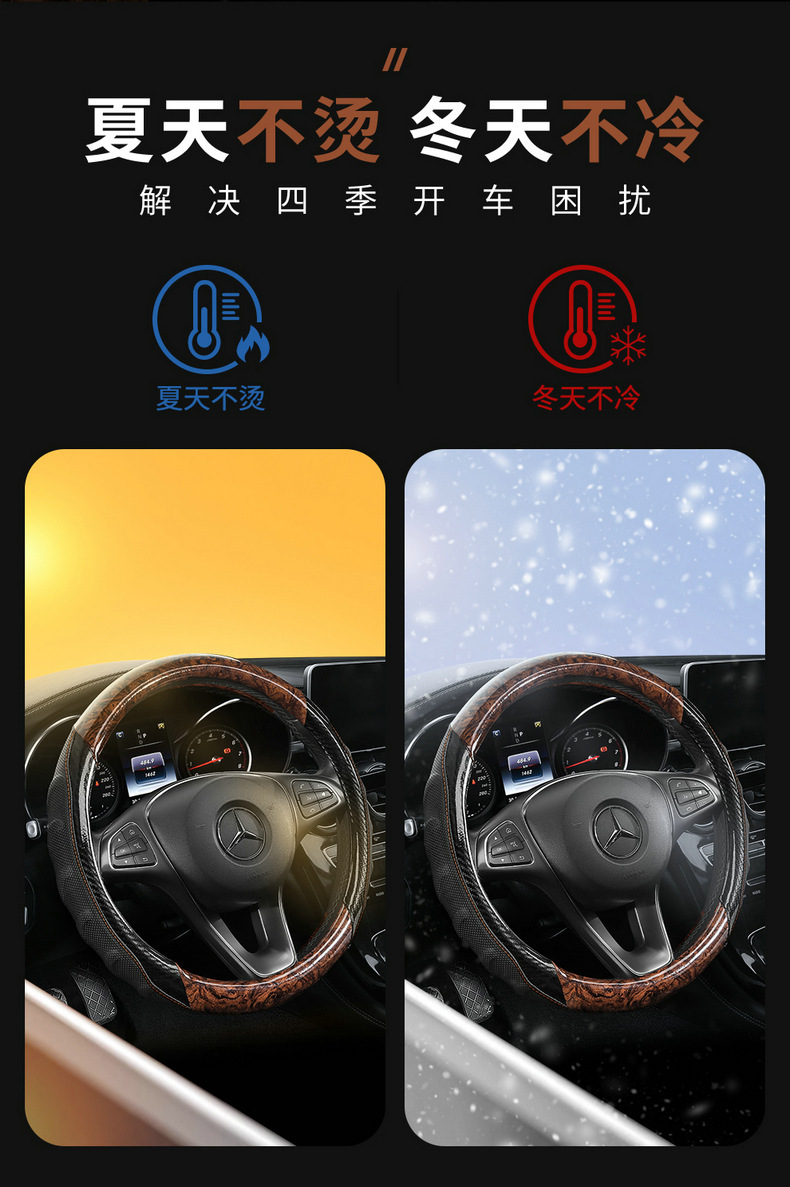 BMW 스티어링 휠 커버 크리스탈 복숭아 나뭇결은 고급 통기성 미끄럼 방지 자동차 커버에 적합합니다. 사계절 범용 여름
