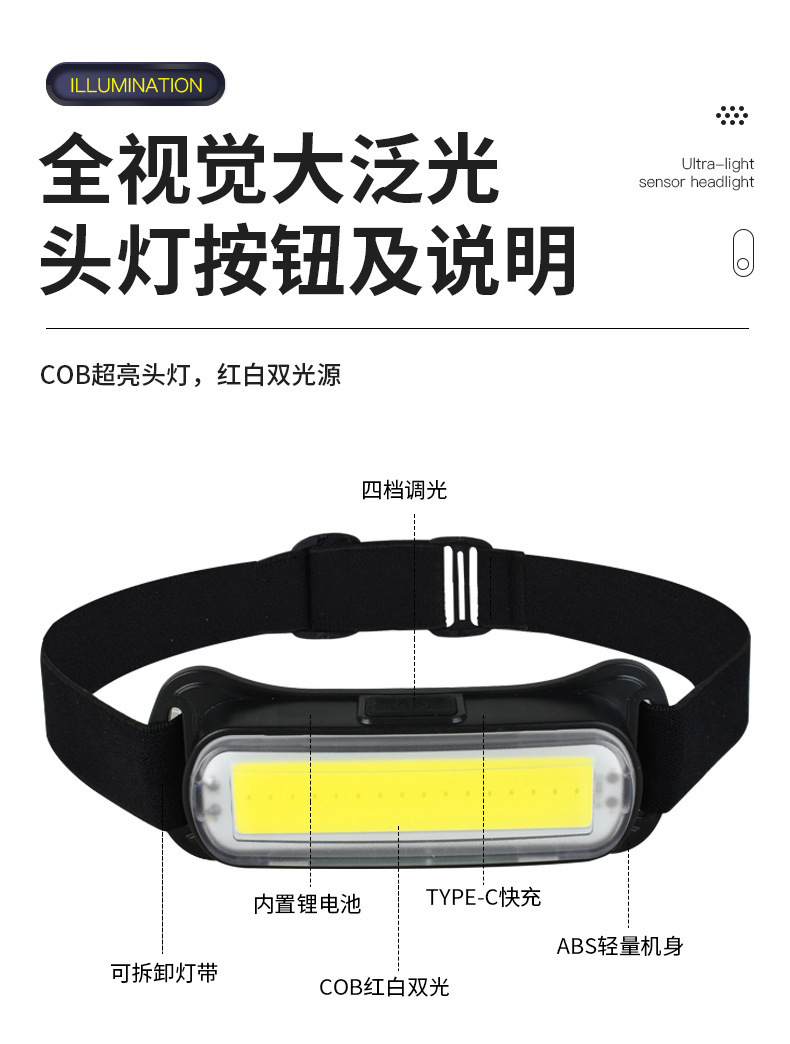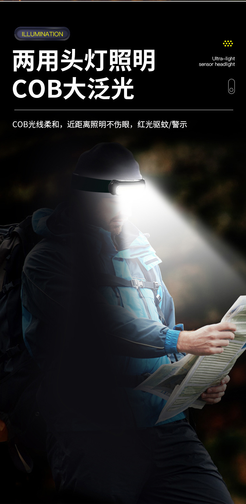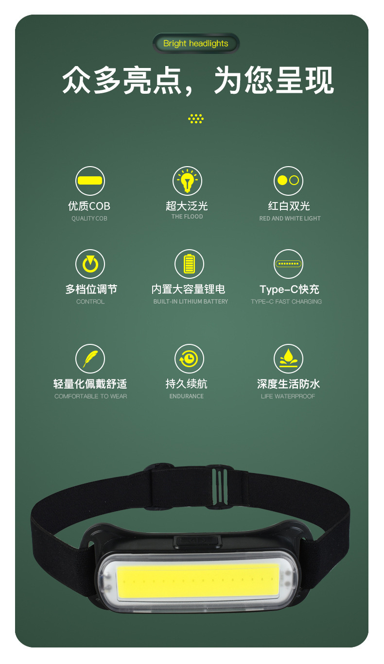 새로운 다기능 야외 모험 낚시 헤드 장착형 러닝 및 등산 헤드라이트 USB 충전스토어 가기