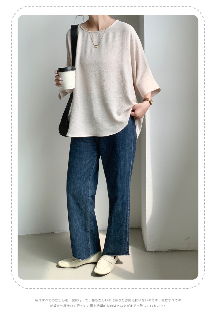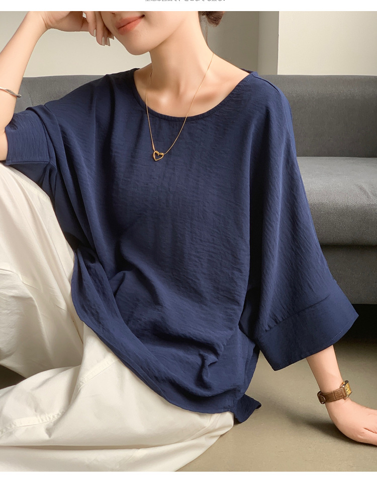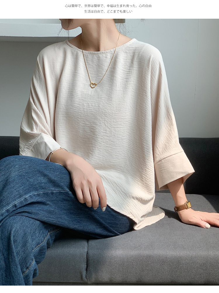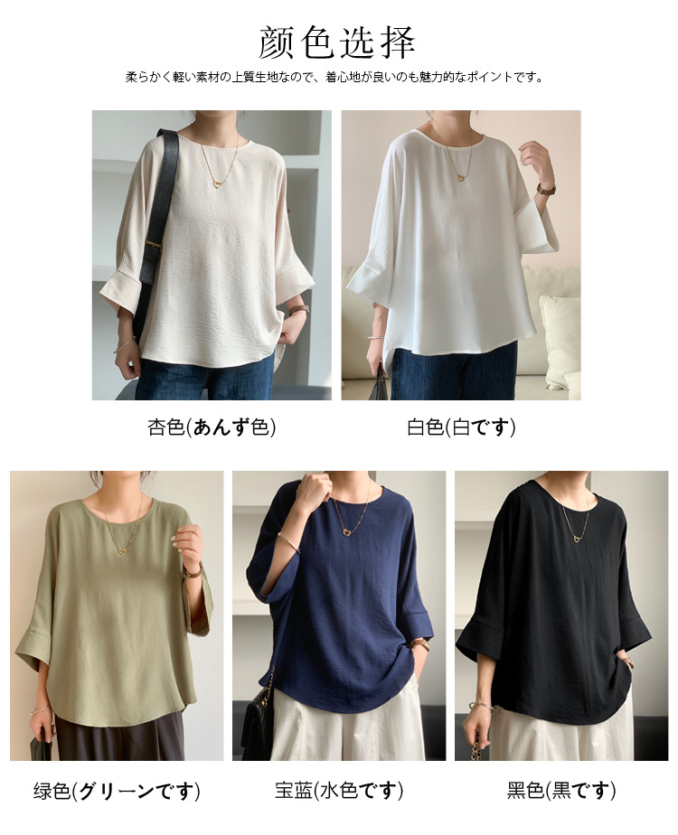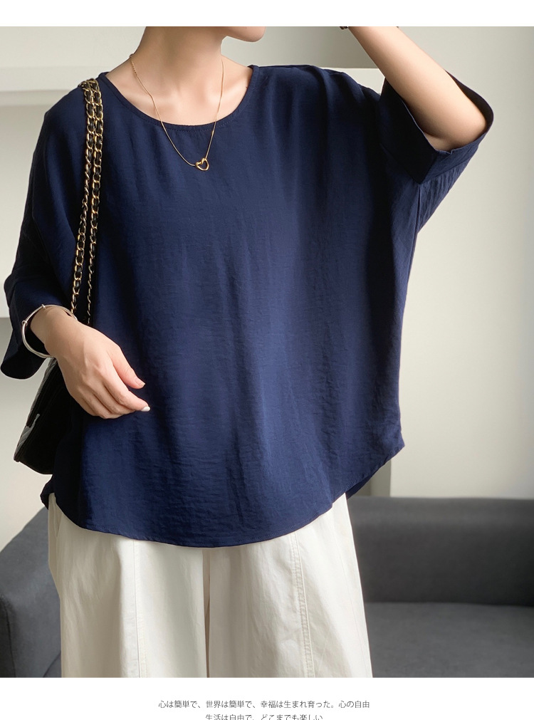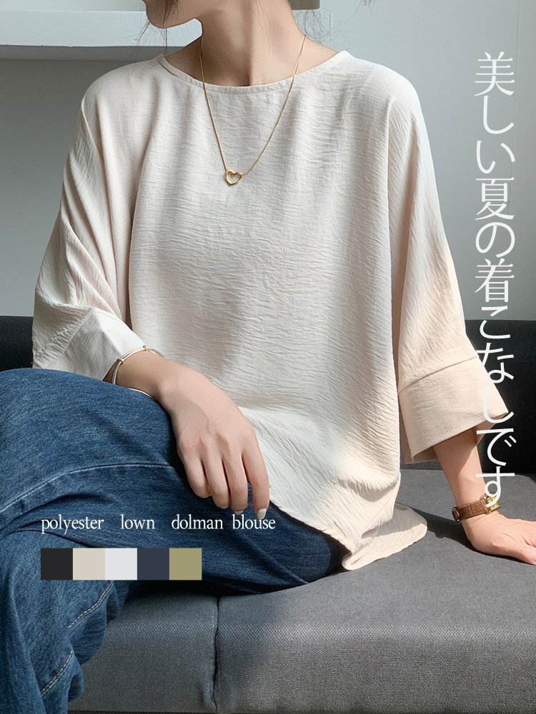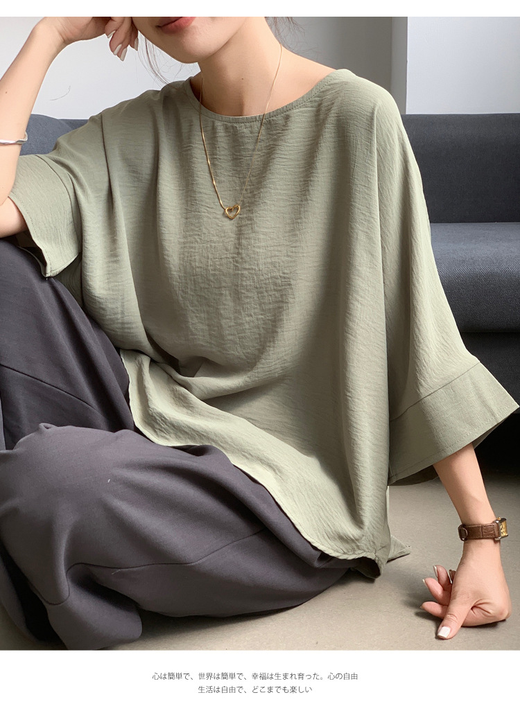 5가지 색상 재고 있음, 일본 로켓 인 아마존 대외 무역 루즈한 대형 버전 배트 슬리브 라운드 넥 셔츠