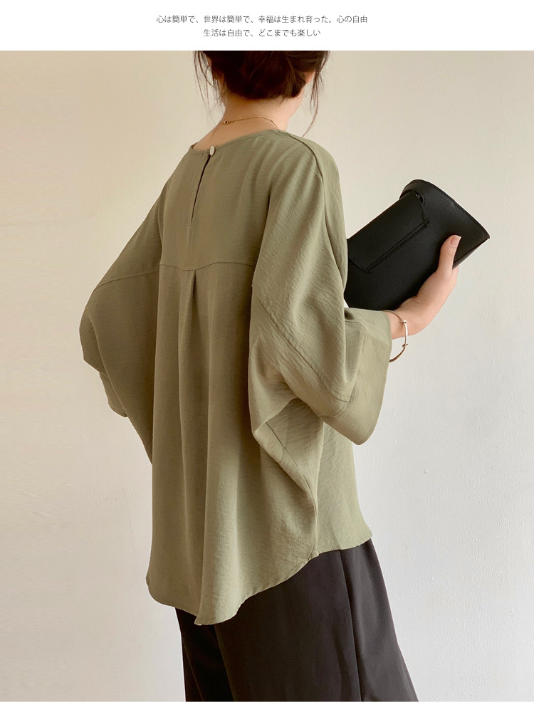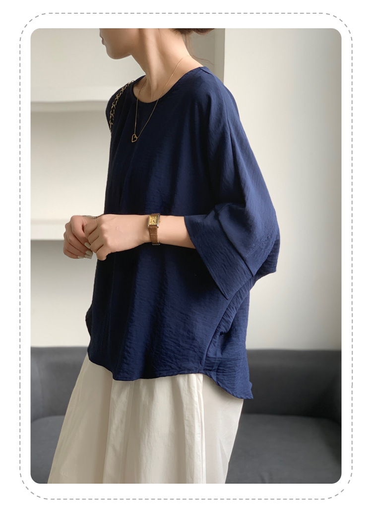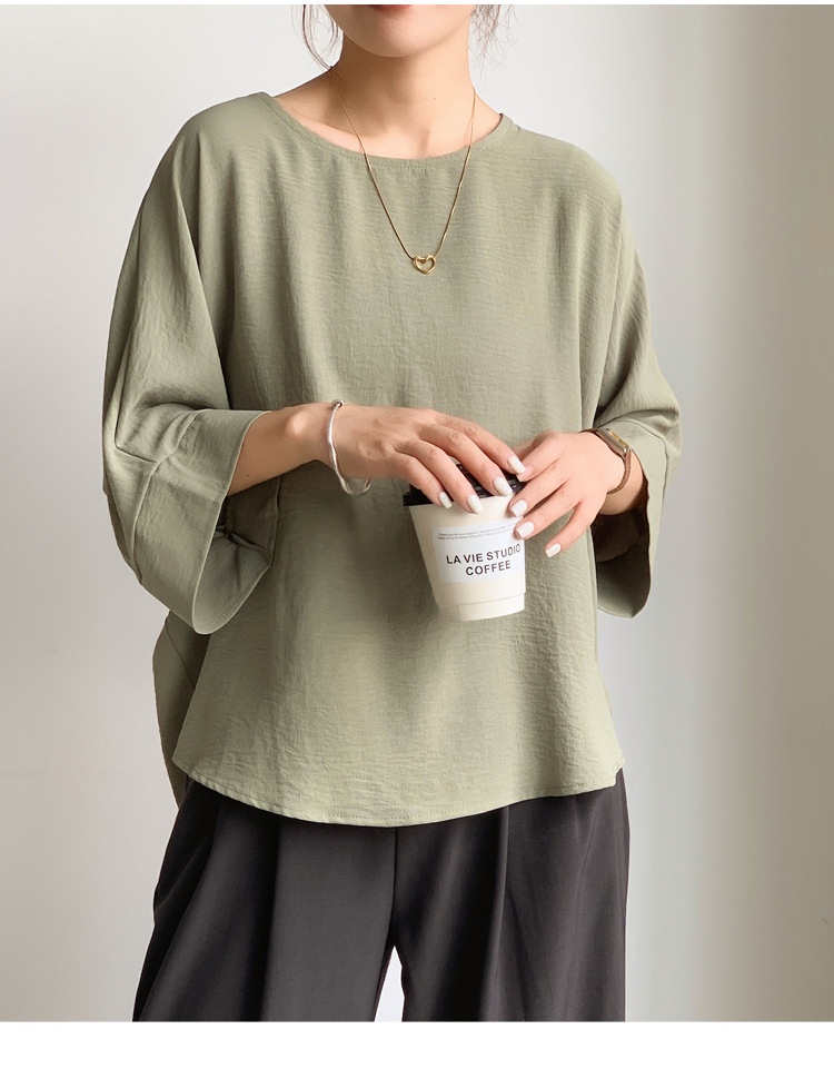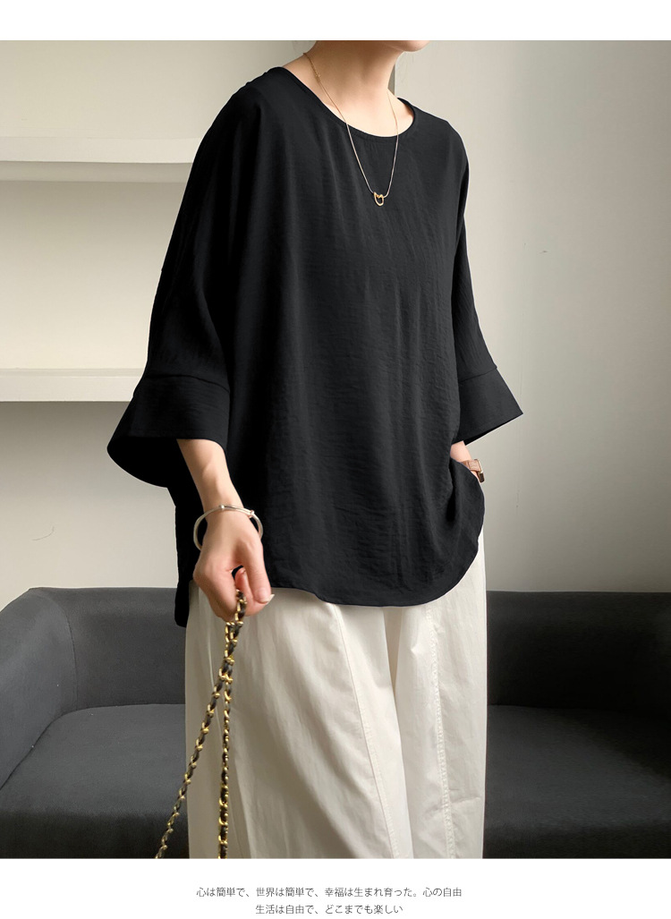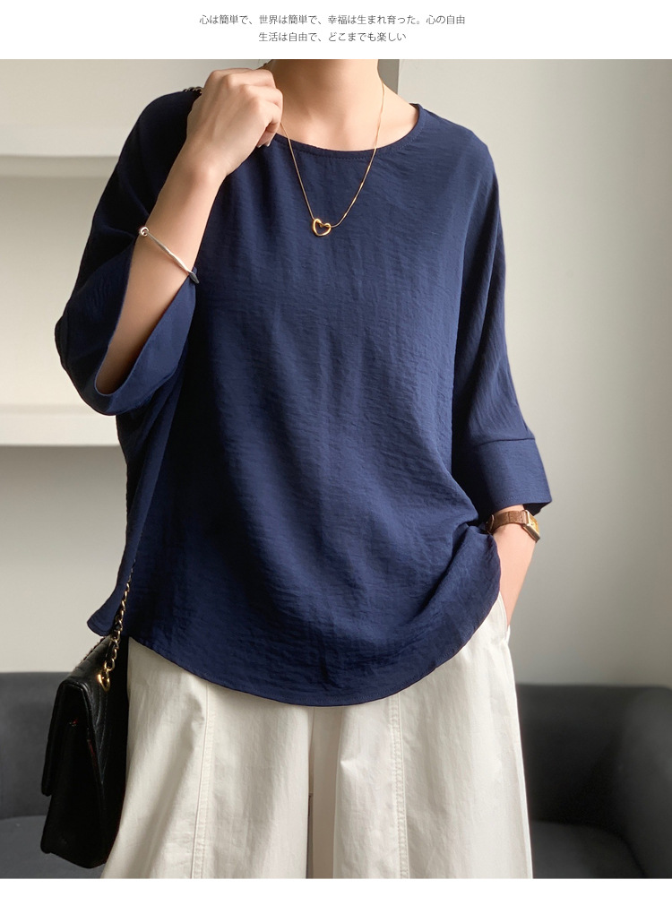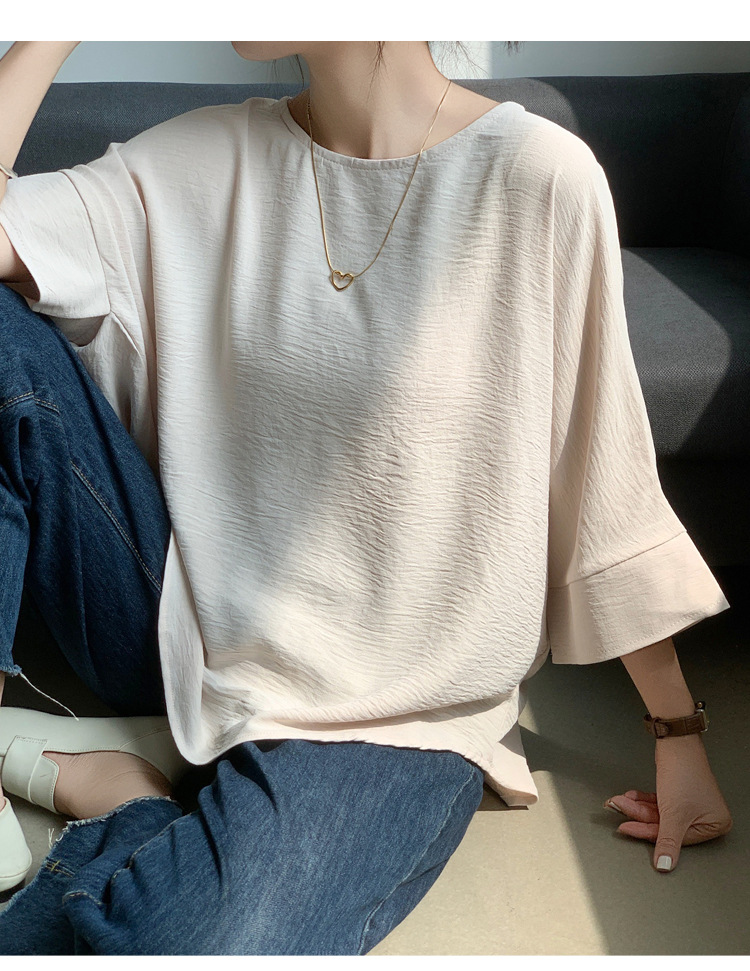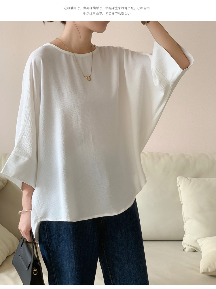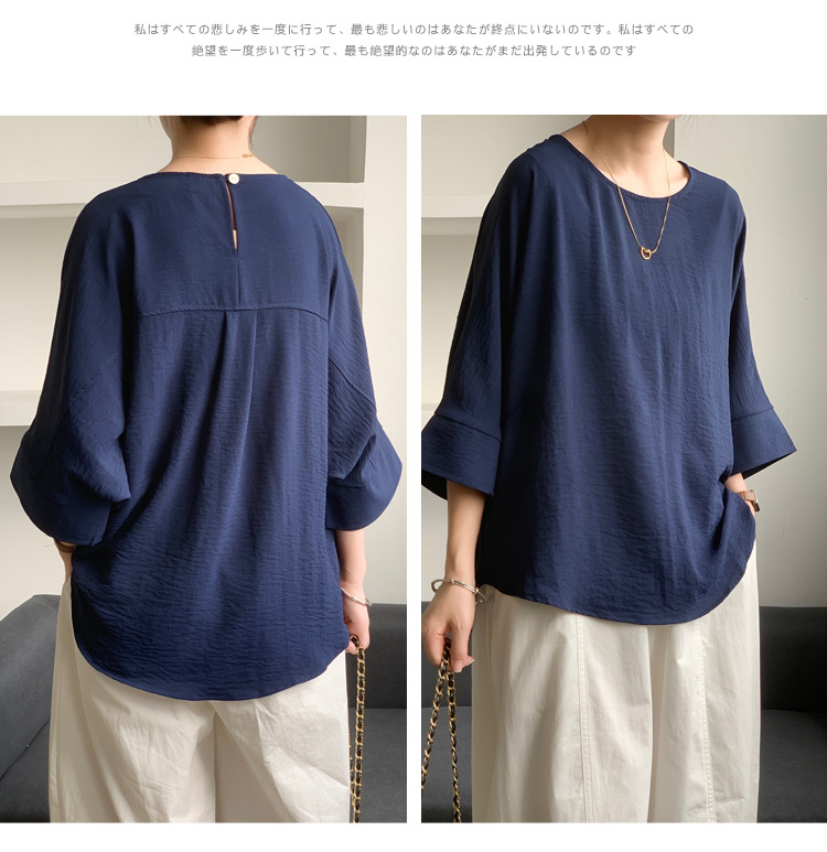 5가지 색상 재고 있음, 일본 로켓 인 아마존 대외 무역 루즈한 대형 버전 배트 슬리브 라운드 넥 셔츠