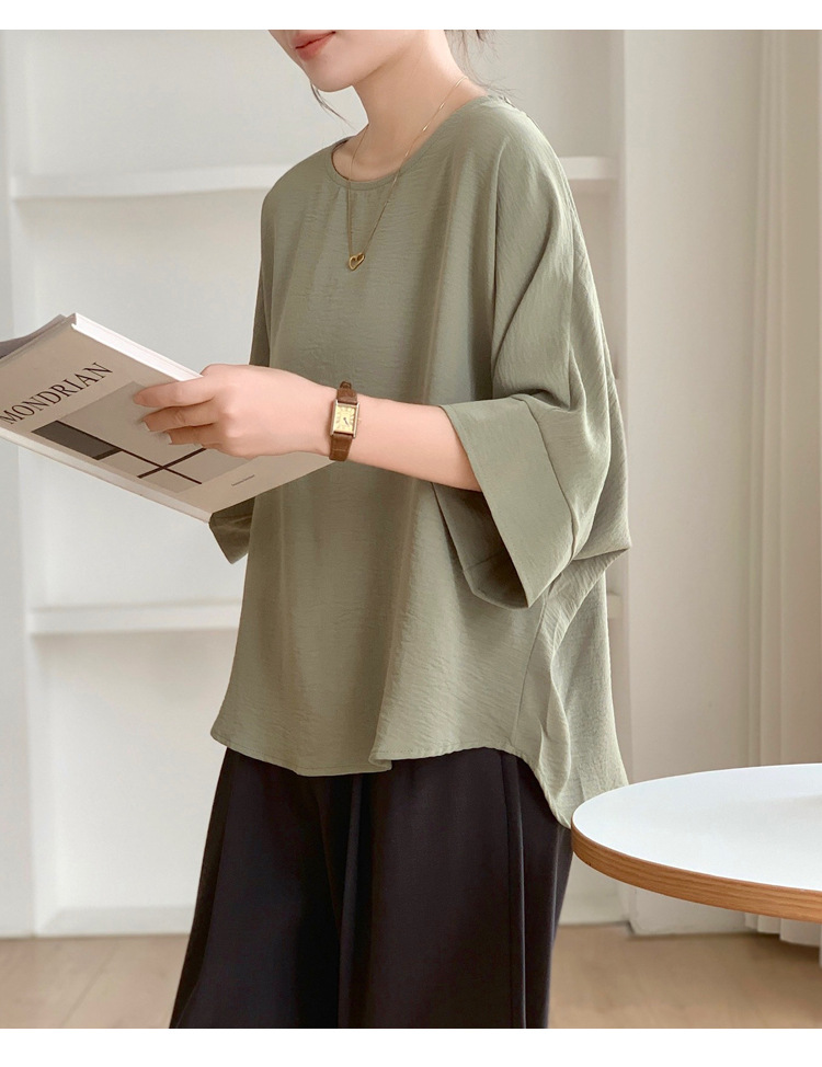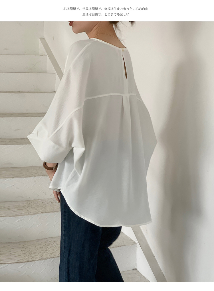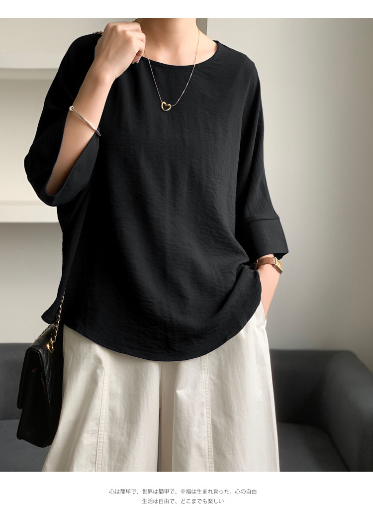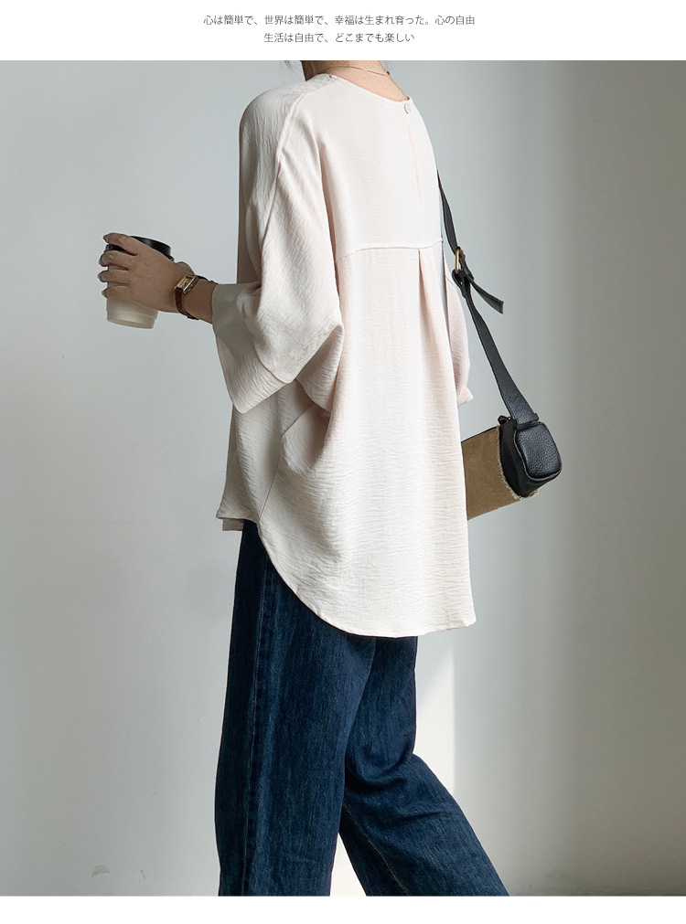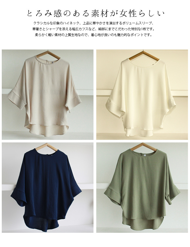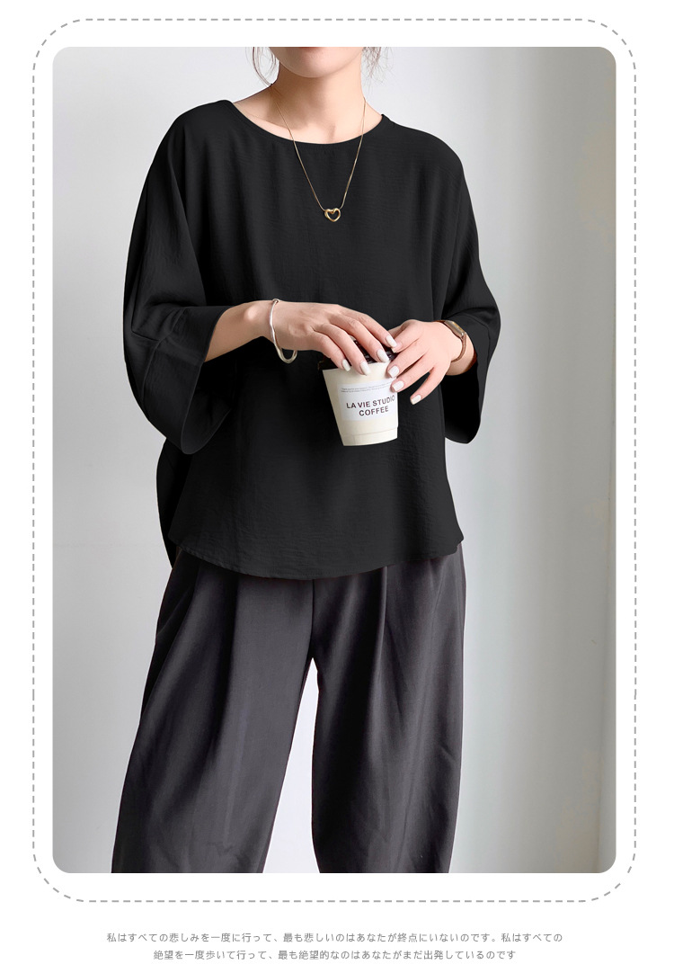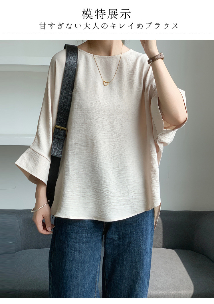 5가지 색상 재고 있음, 일본 로켓 인 아마존 대외 무역 루즈한 대형 버전 배트 슬리브 라운드 넥 셔츠