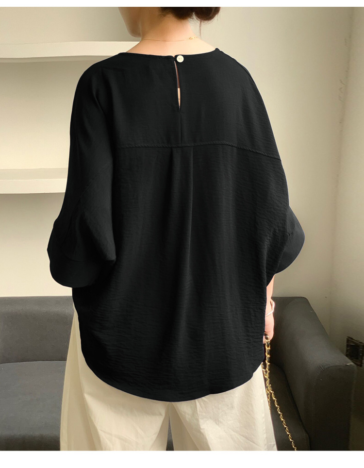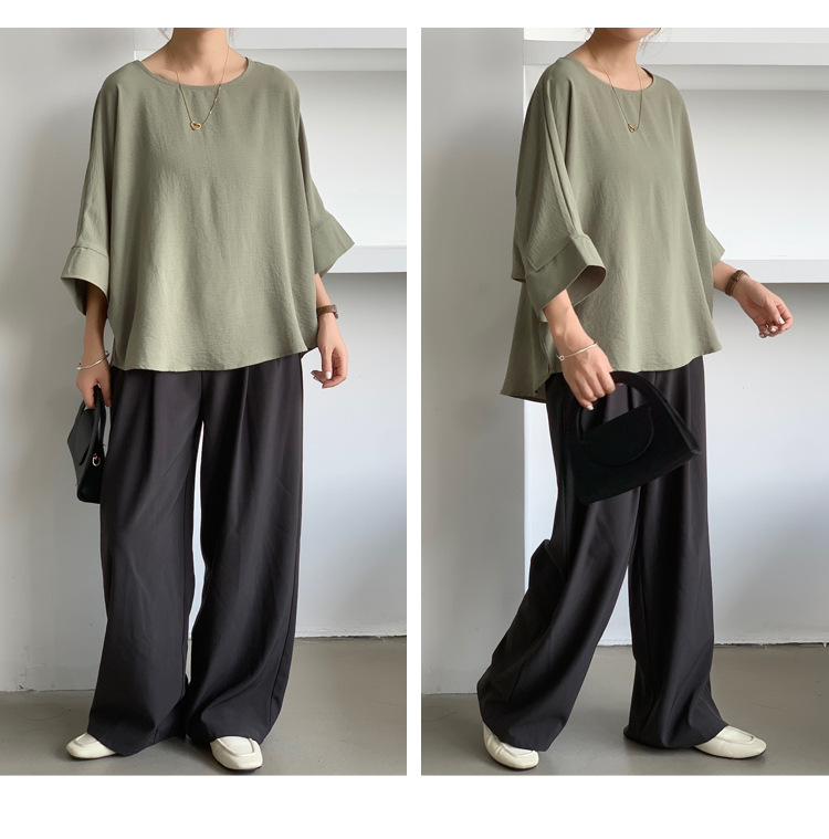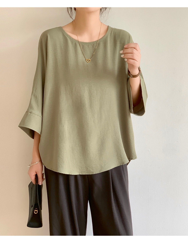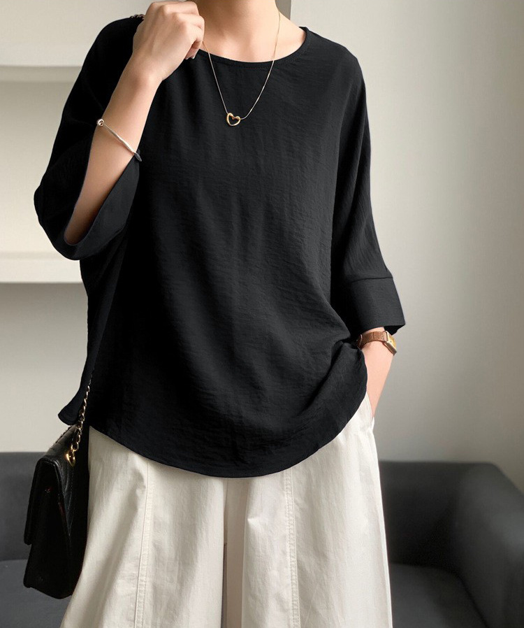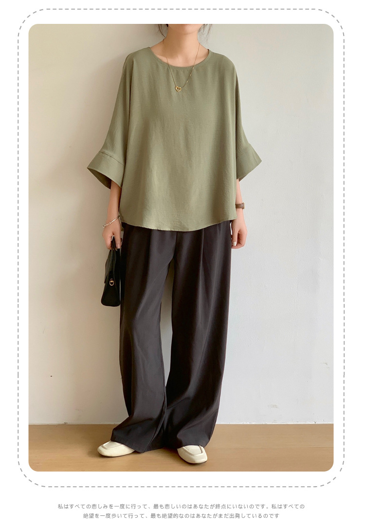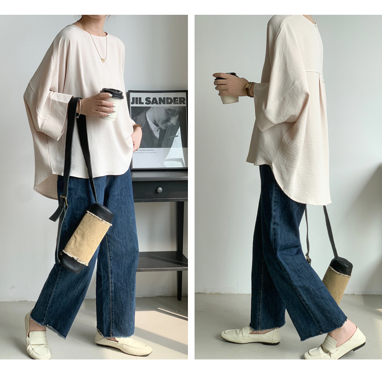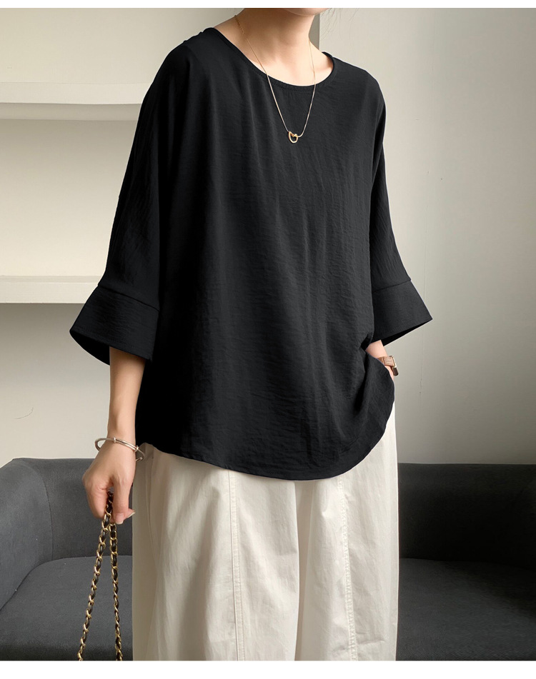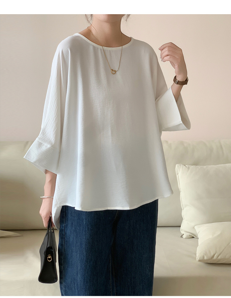 5가지 색상 재고 있음, 일본 로켓 인 아마존 대외 무역 루즈한 대형 버전 배트 슬리브 라운드 넥 셔츠