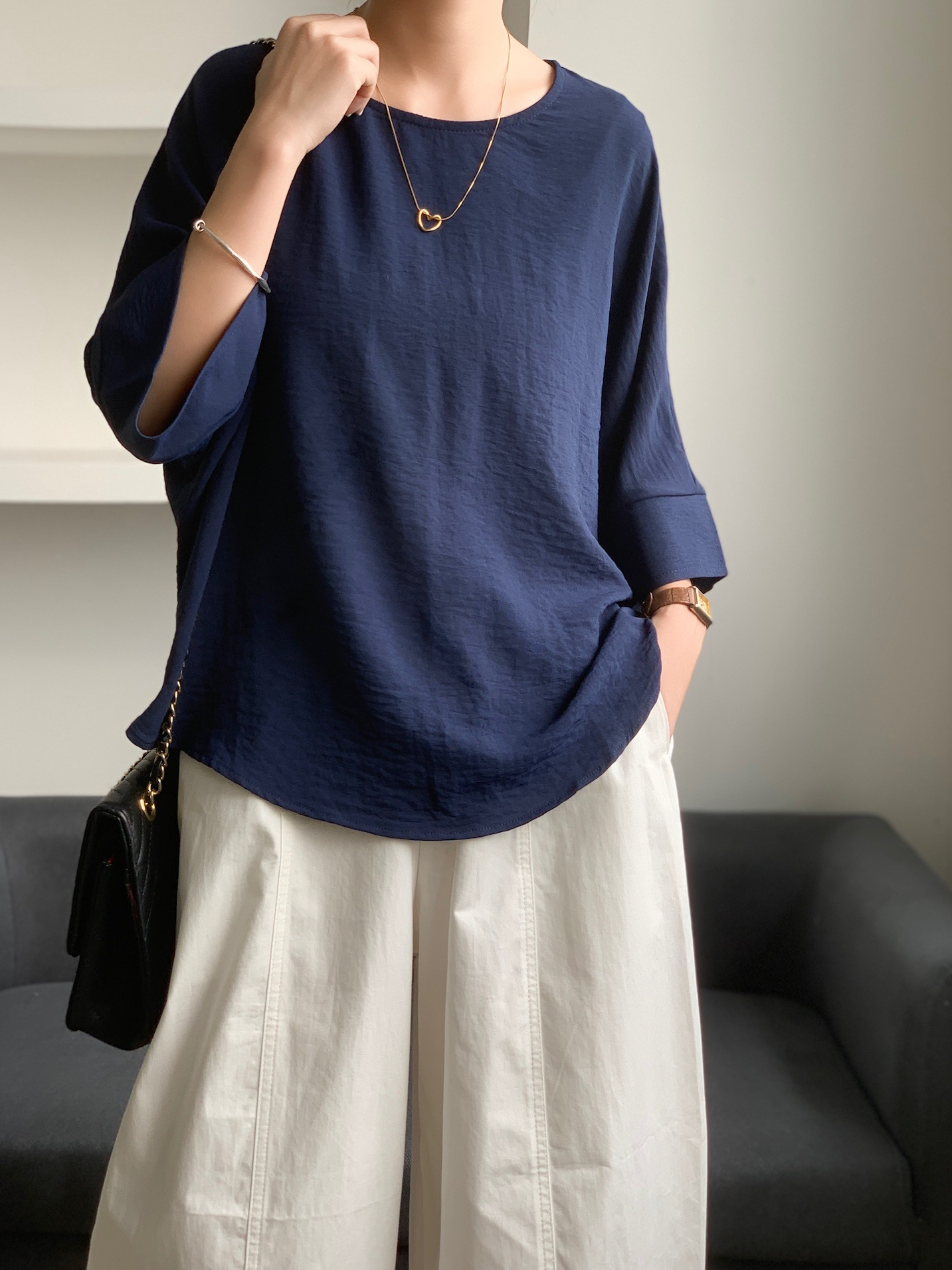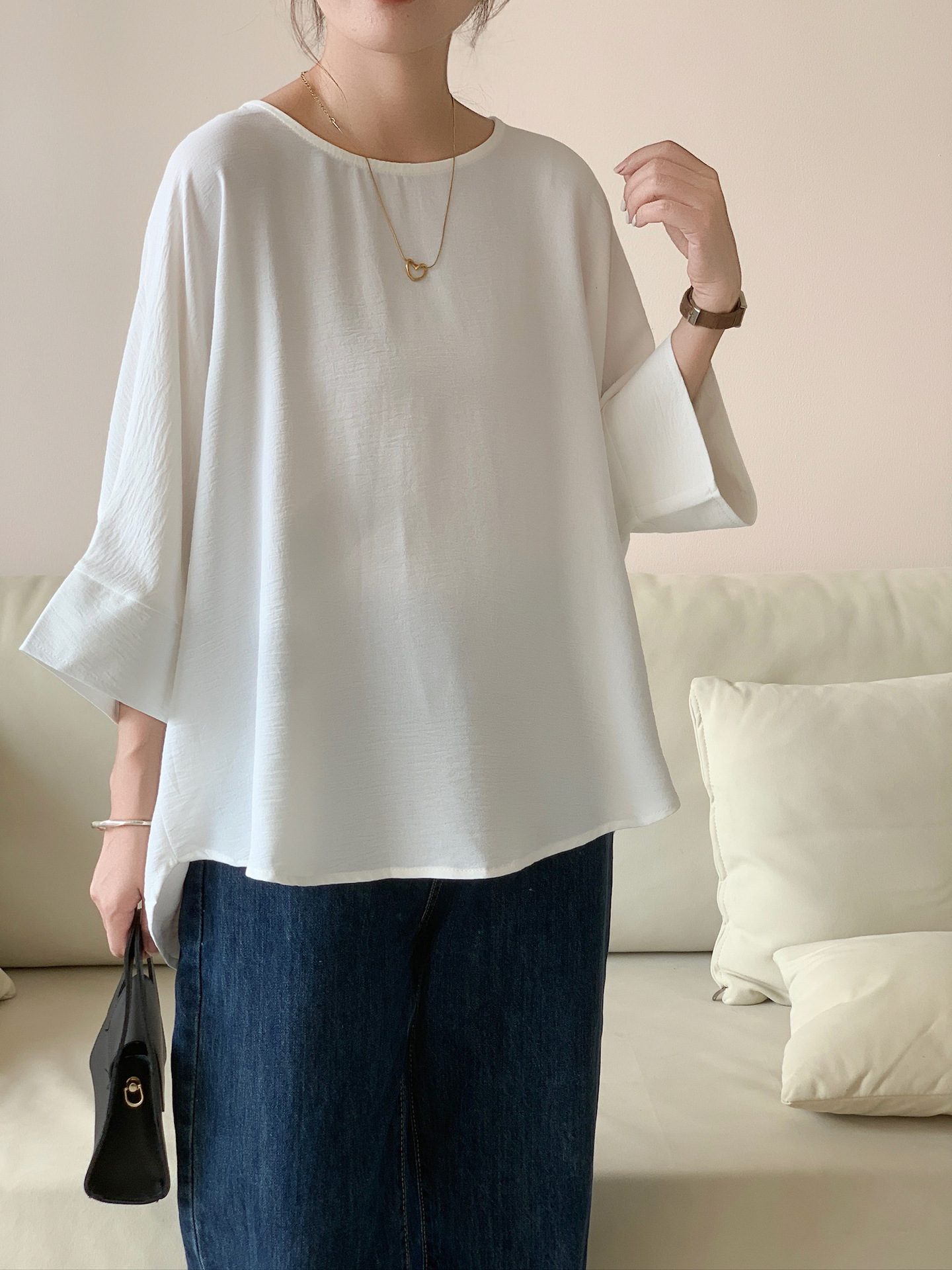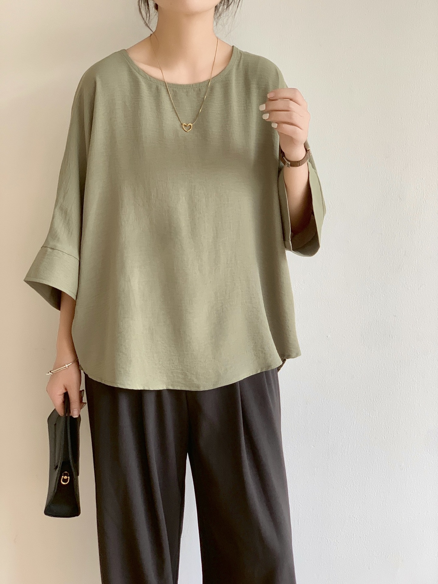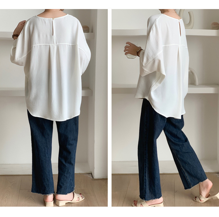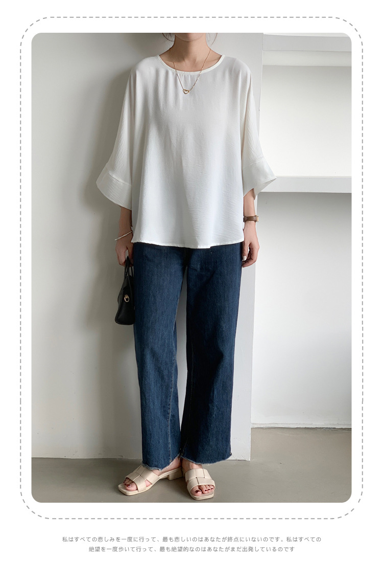 5가지 색상 재고 있음, 일본 로켓 인 아마존 대외 무역 루즈한 대형 버전 배트 슬리브 라운드 넥 셔츠스토어 가기