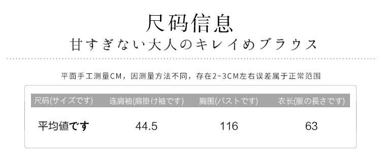 衣长:前63cm/后68cm     胸围:164(蝙蝠袖)cm     肩连袖长:43cm