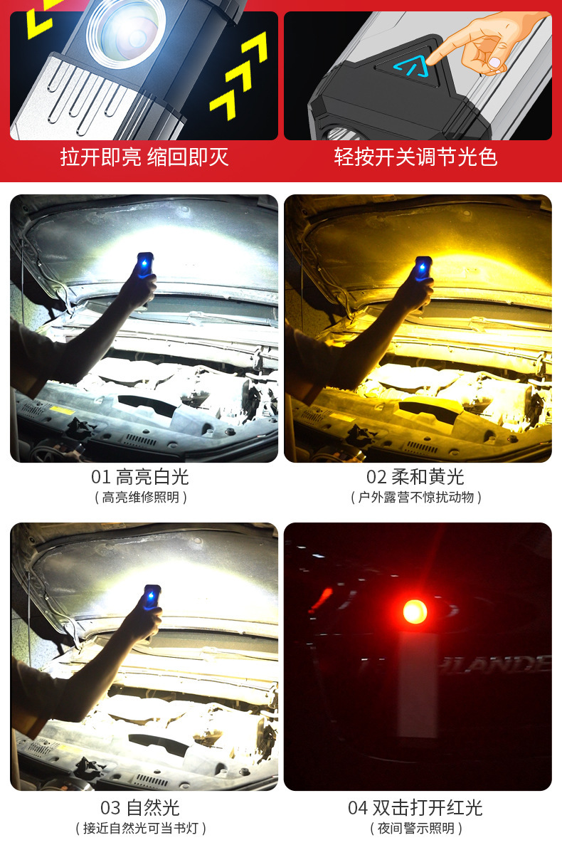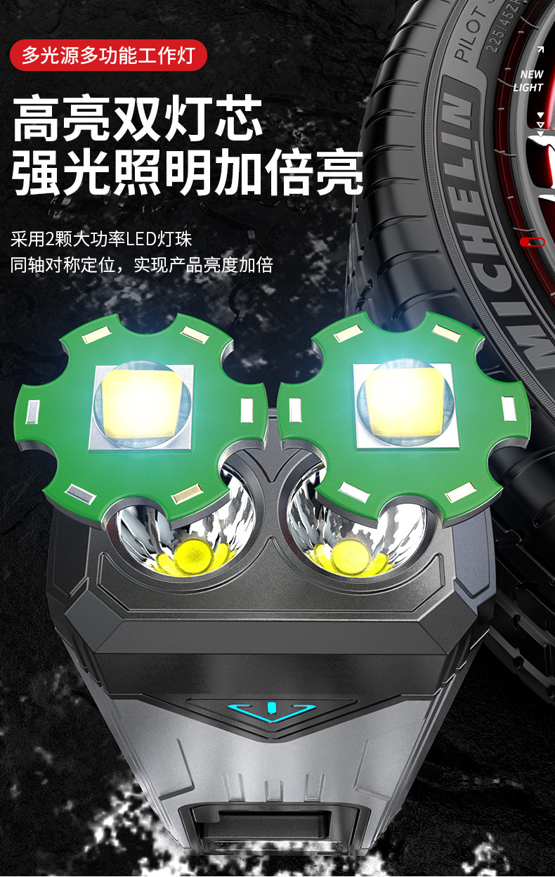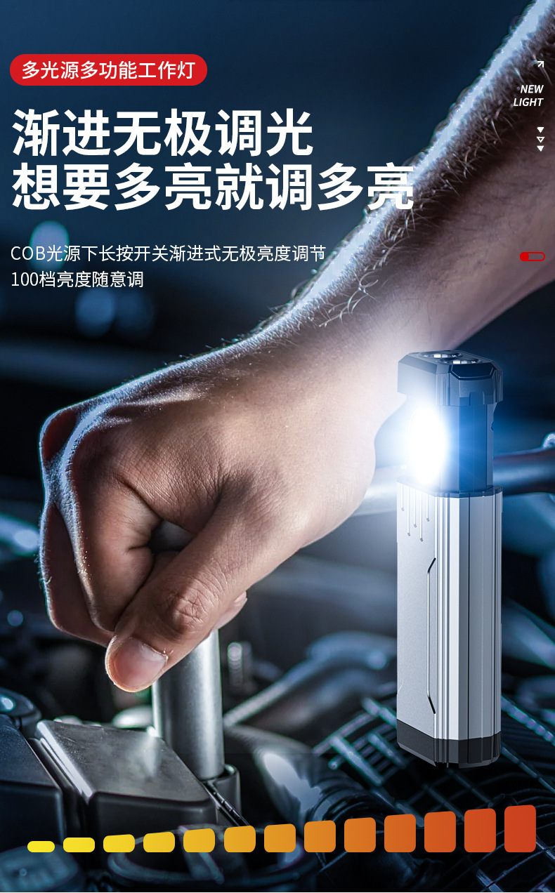 국경 간 LED 작업 조명 다중 광원 USB 충전 및 방전 수리 램프 자석 다기능 COB 밝은 손전등