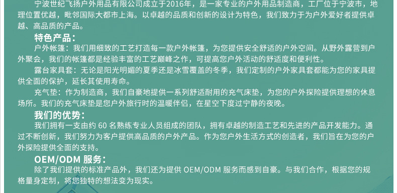 外帐材质:300D牛津布 充气管道:PVC气柱