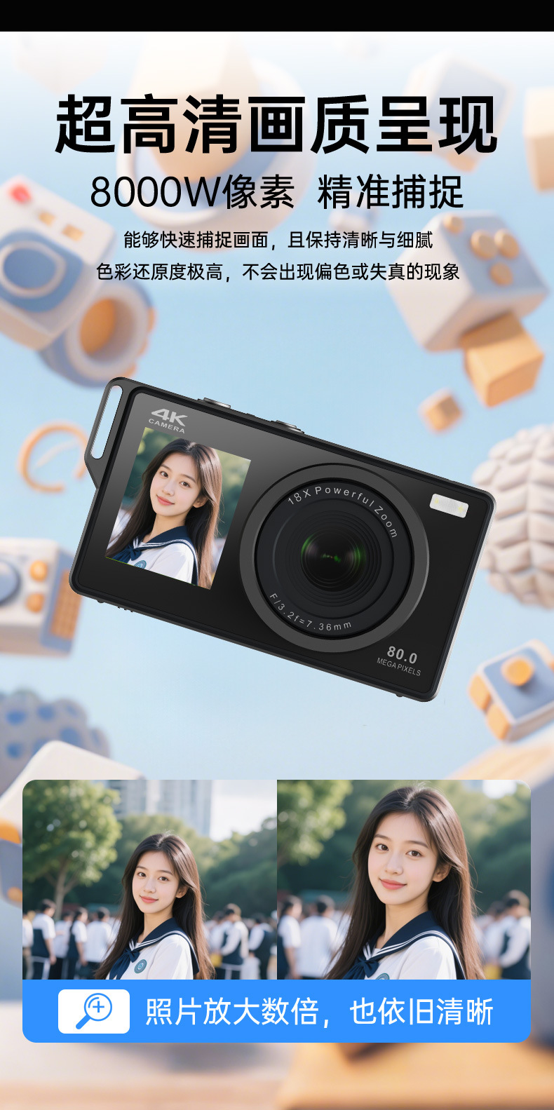 개인형 CCD 카메라, 디지털 4K 고화질 디지털 카메라, 입문용 학생용 고화질 영상 촬영, 뷰티 기능 탑재 카드형 카메라스토어 가기