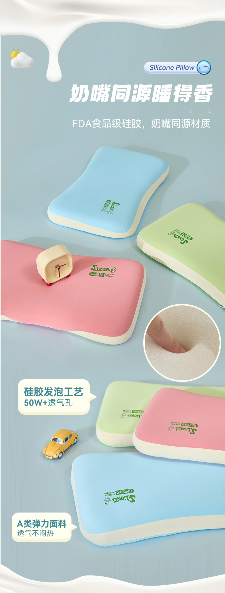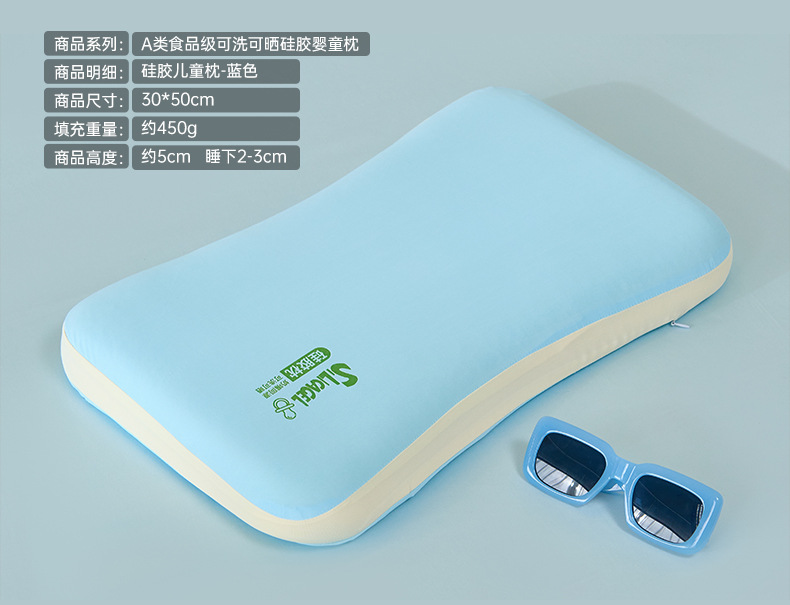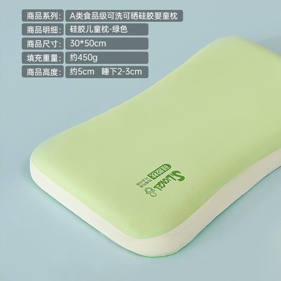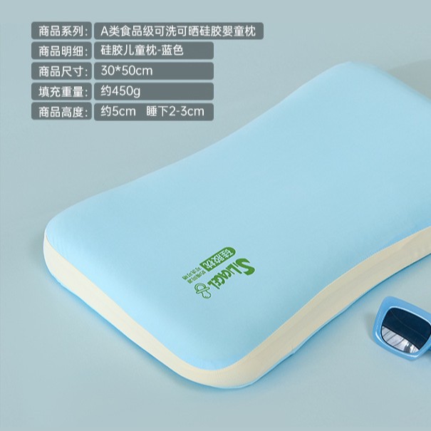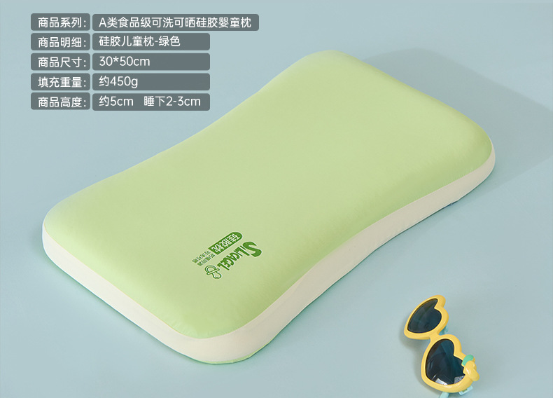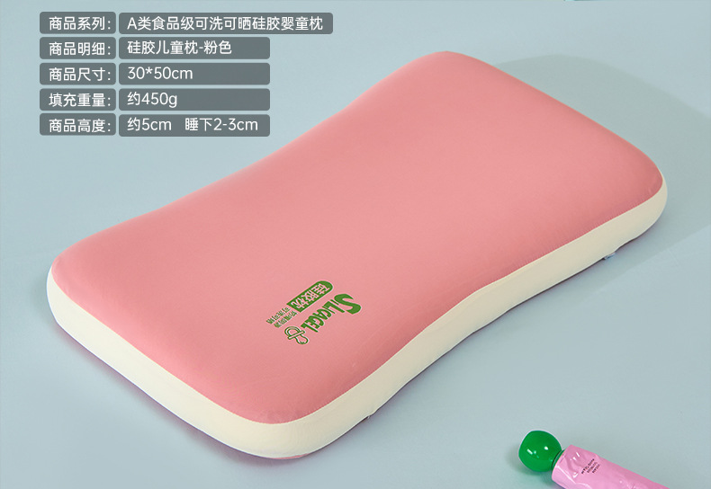 클래스 A 식품 등급 세탁 및 건조 가능한 실리콘 유아 베개 어린이 베개 실리콘 메모리 폼 베개 코어 학생 낮은 베개