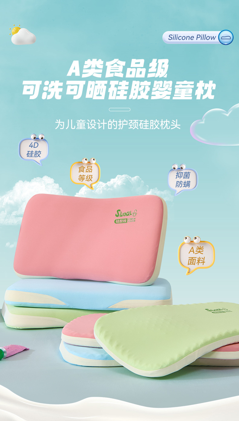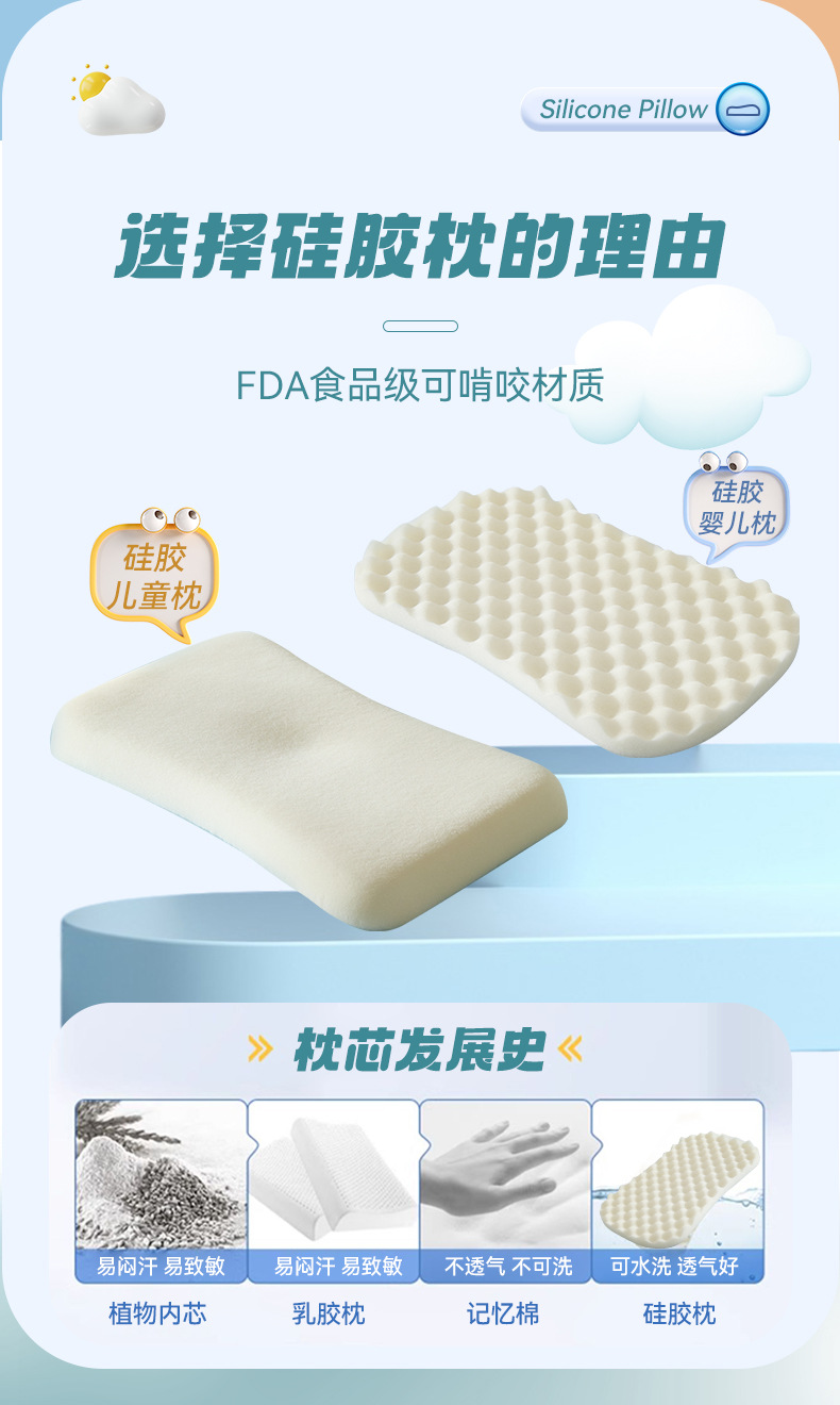 클래스 A 식품 등급 세탁 및 건조 가능한 실리콘 유아 베개 어린이 베개 실리콘 메모리 폼 베개 코어 학생 낮은 베개스토어 가기