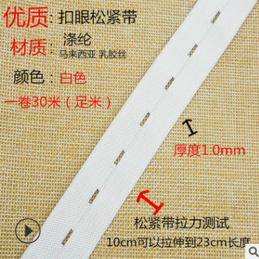 弹力带扣眼松紧带  扣眼松紧带可调节带孔松紧带 扣眼松紧带可调节橡筋 扣眼松紧带宽1.0cm 扣眼松紧带宽3.5cm