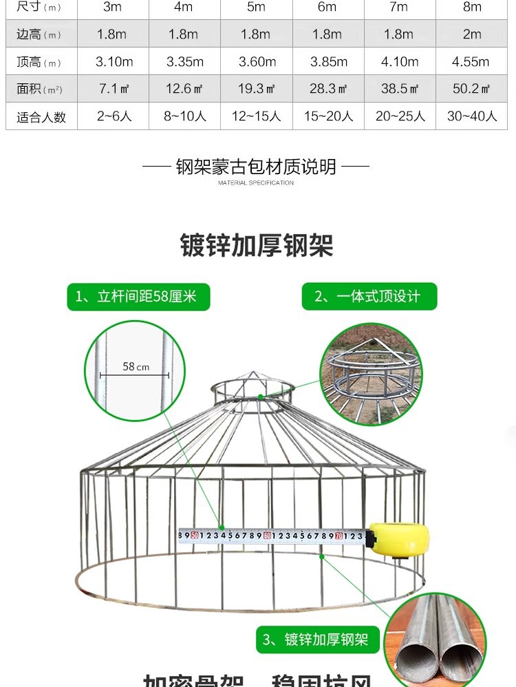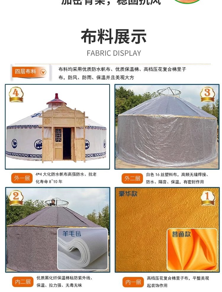 몽골 텐트 농가 식사 활동용 캔버스 야외 차양 숙박용 두꺼운 방풍 보온 캠핑용