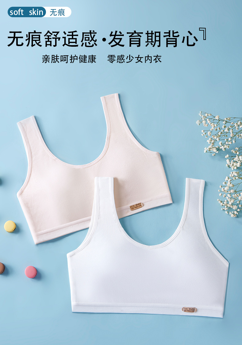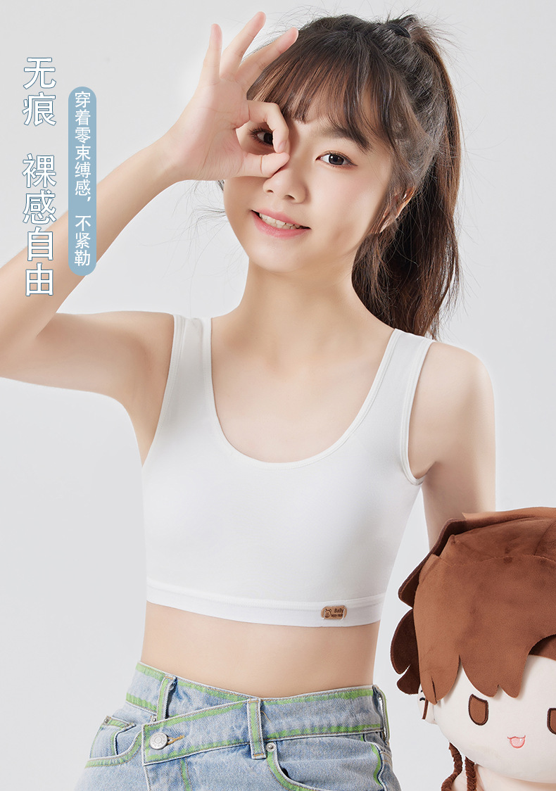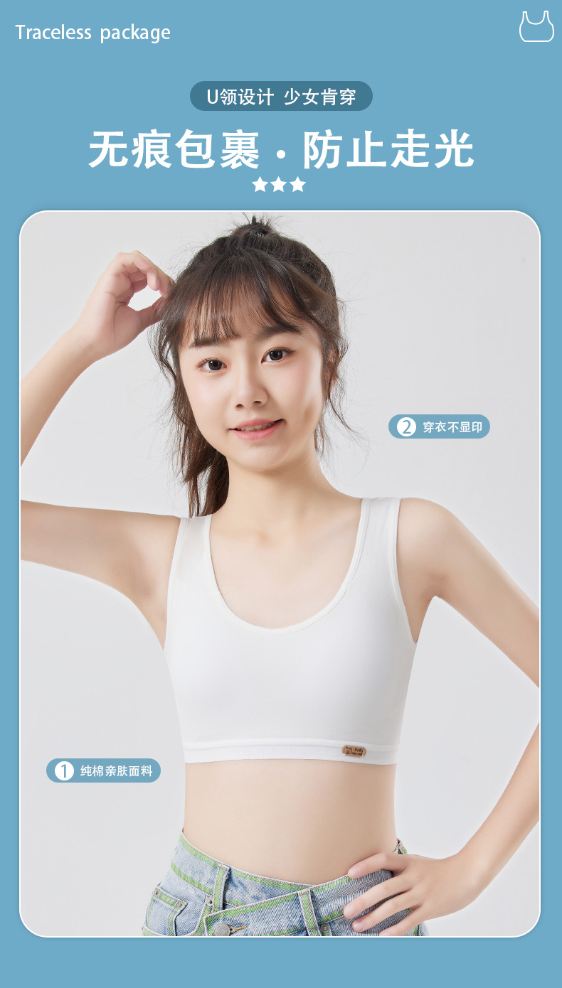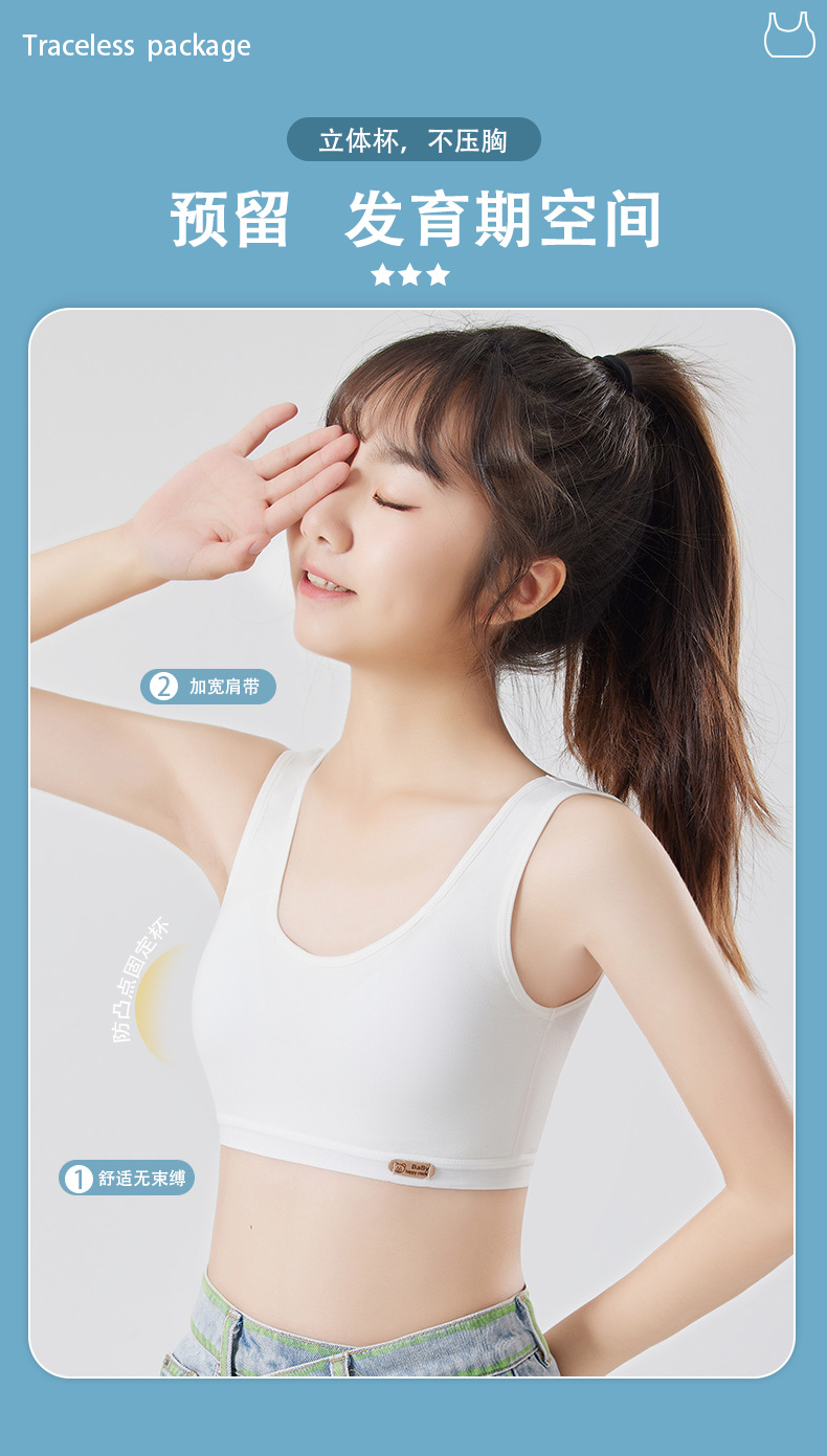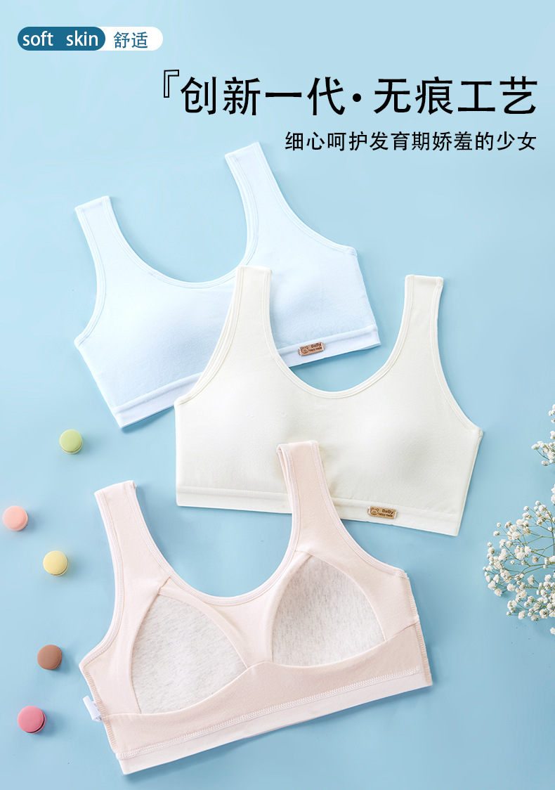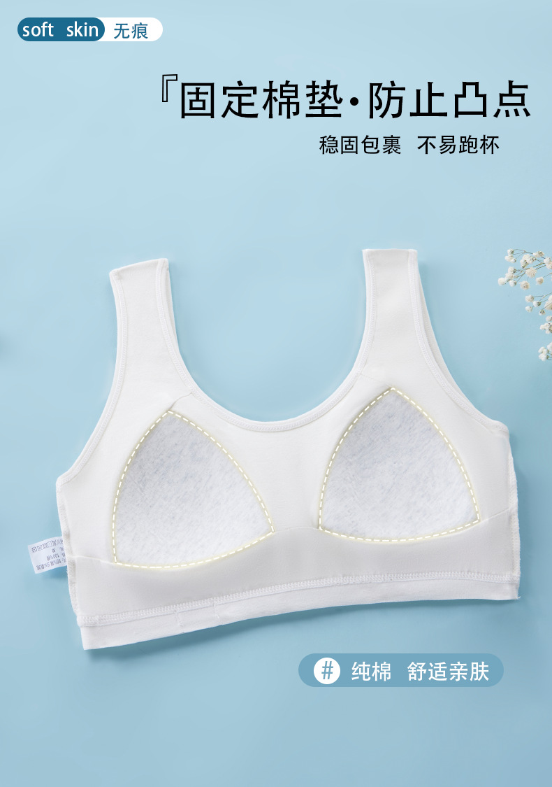 여아용 브라, 무봉제 발달조끼, 여학생 속옷, 돌출방지 순면, 9-12-16세