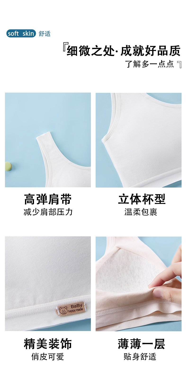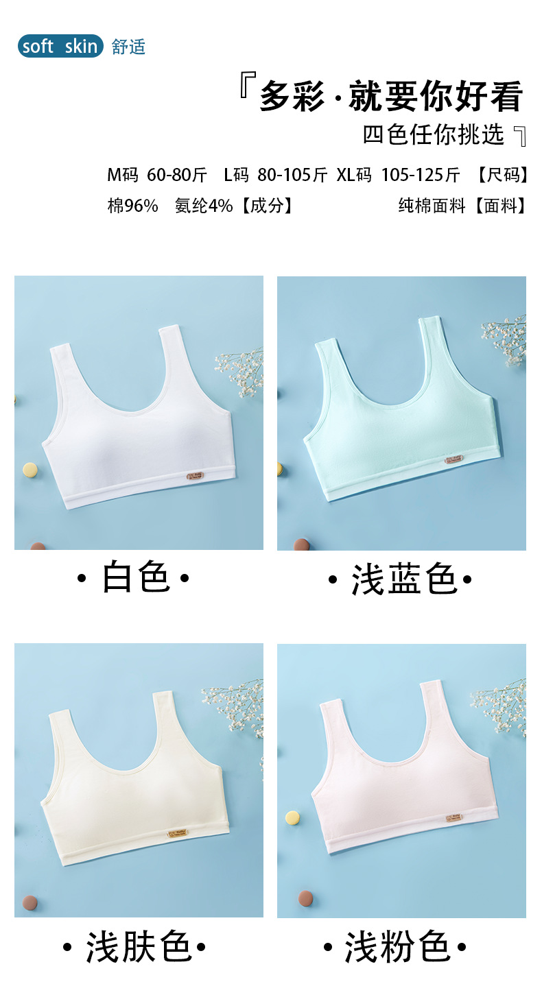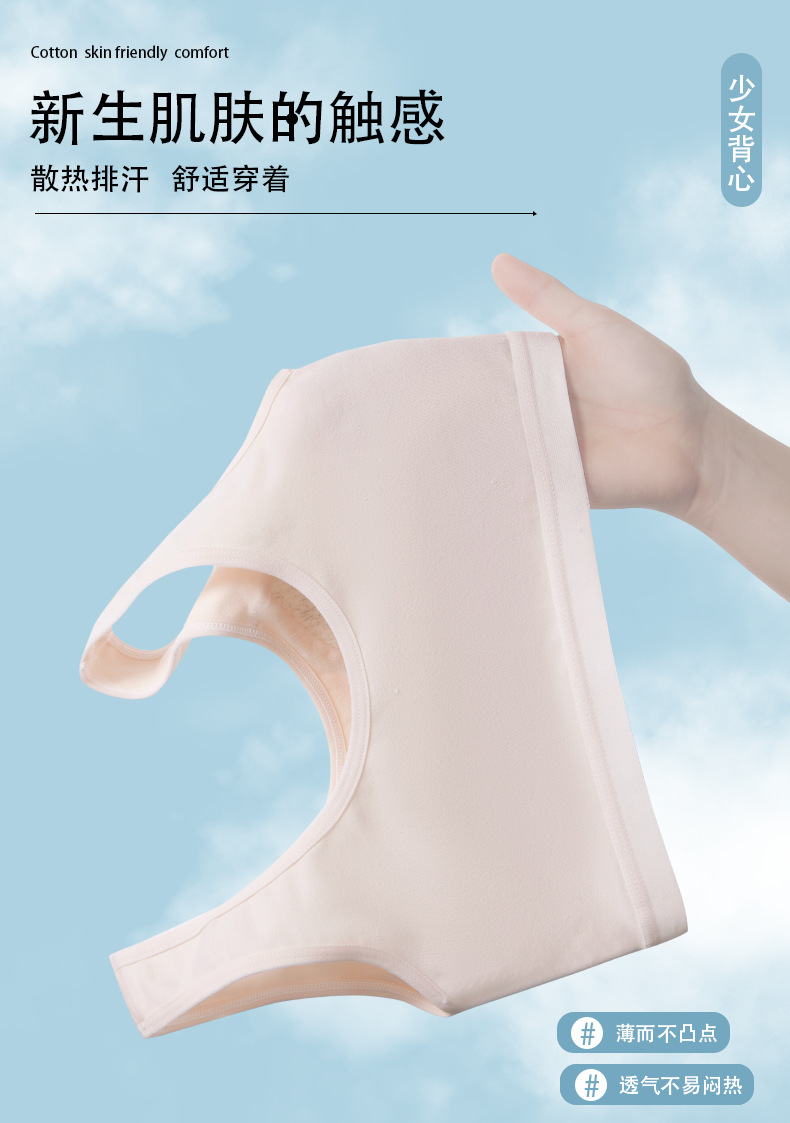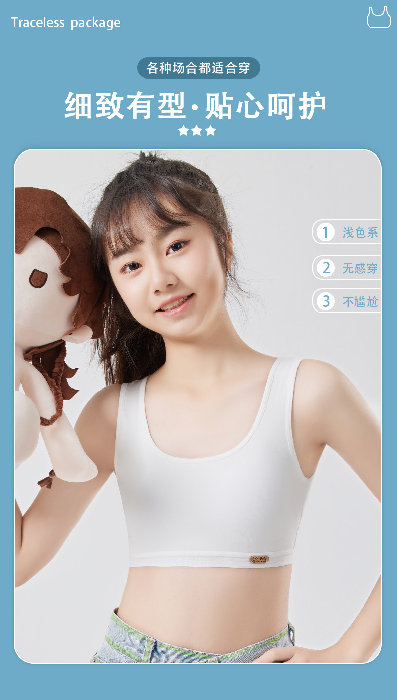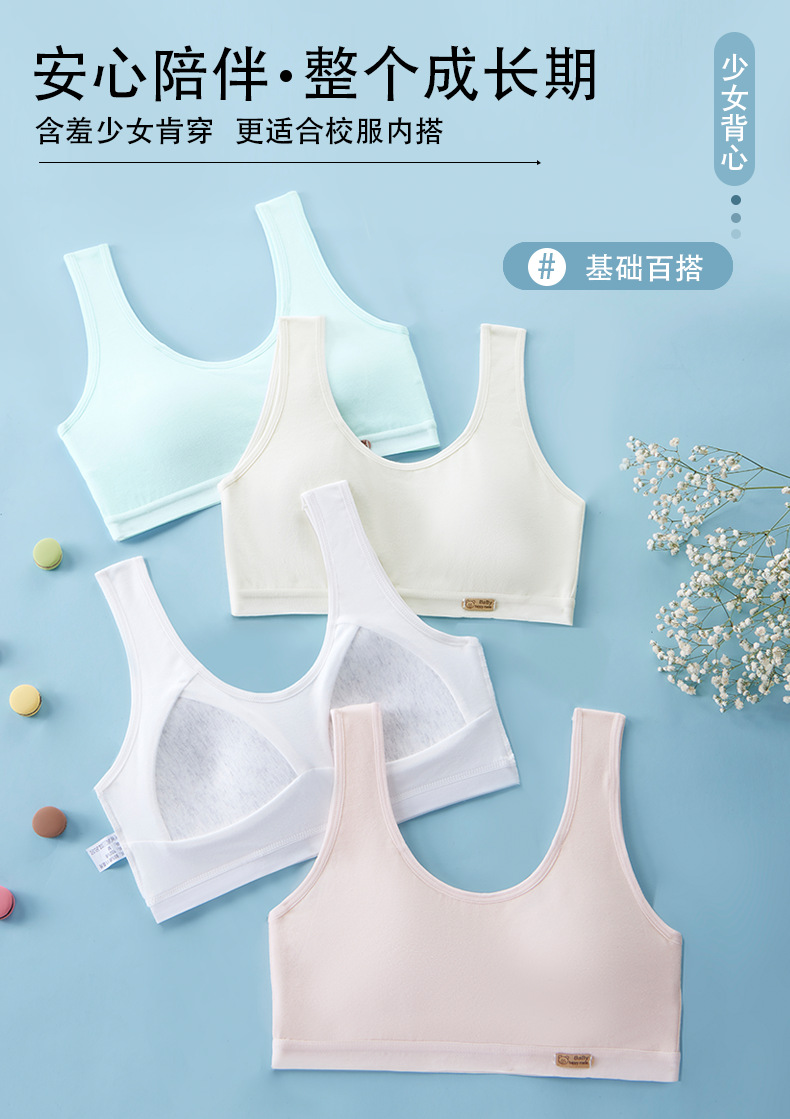 여아용 브라, 무봉제 발달조끼, 여학생 속옷, 돌출방지 순면, 9-12-16세