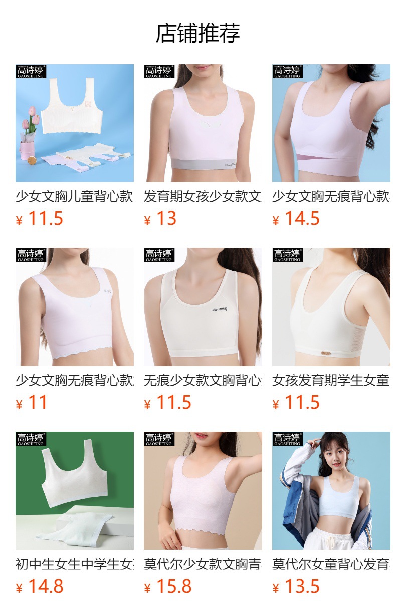 여아용 브라, 무봉제 발달조끼, 여학생 속옷, 돌출방지 순면, 9-12-16세스토어 가기