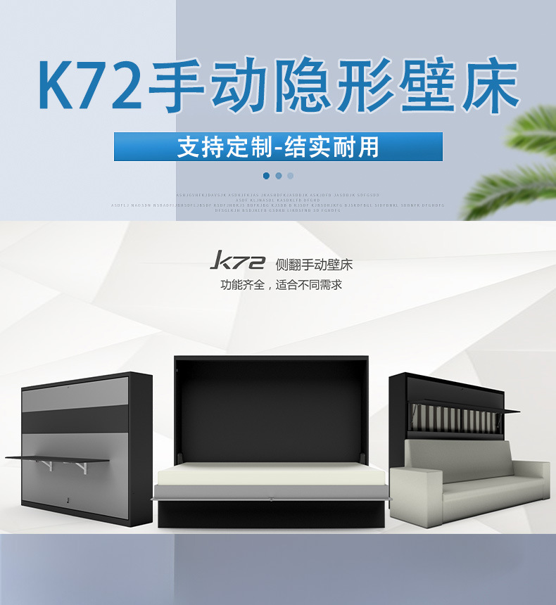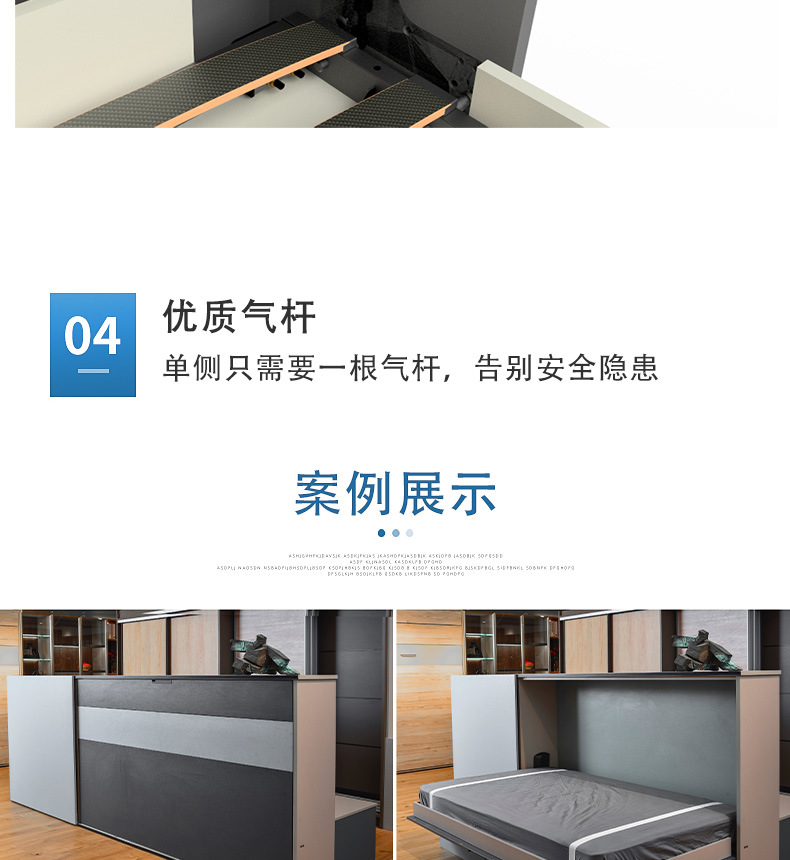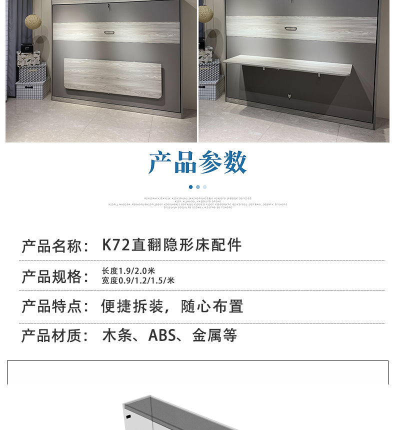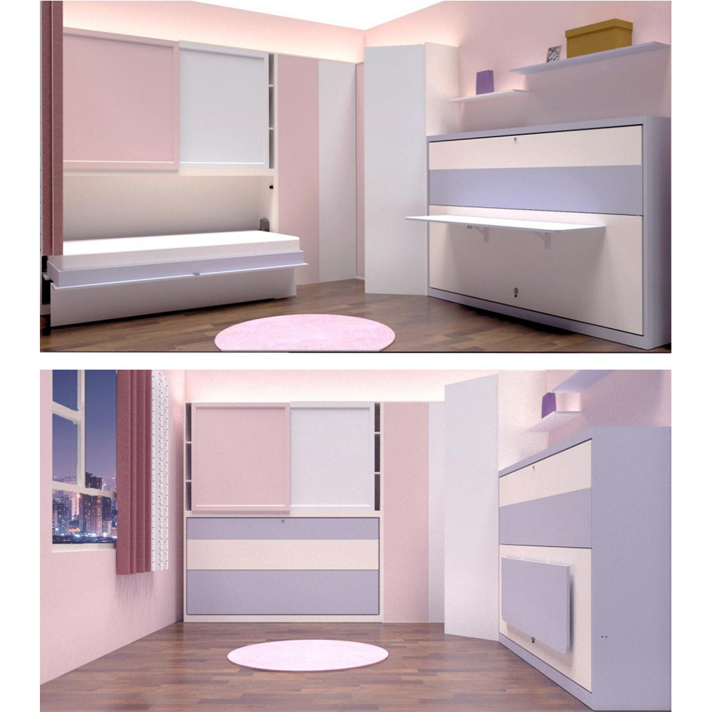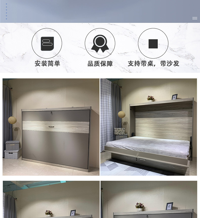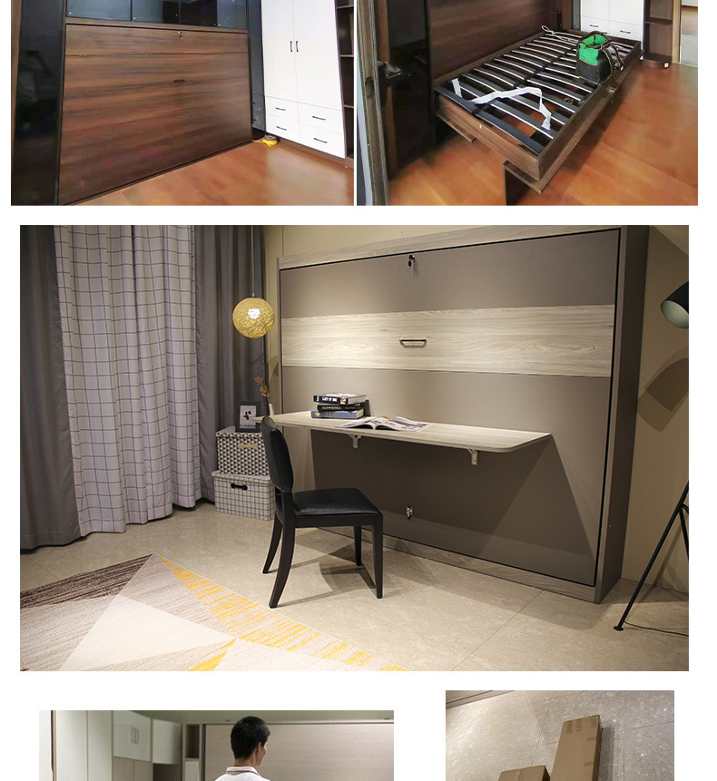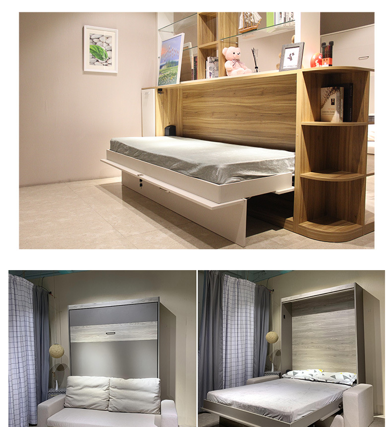 측면 회전식 수동 접이식 침대, 벽에 설치 가능, 모던하고 심플한 가정용, 침실 소형 아파트 솔루션