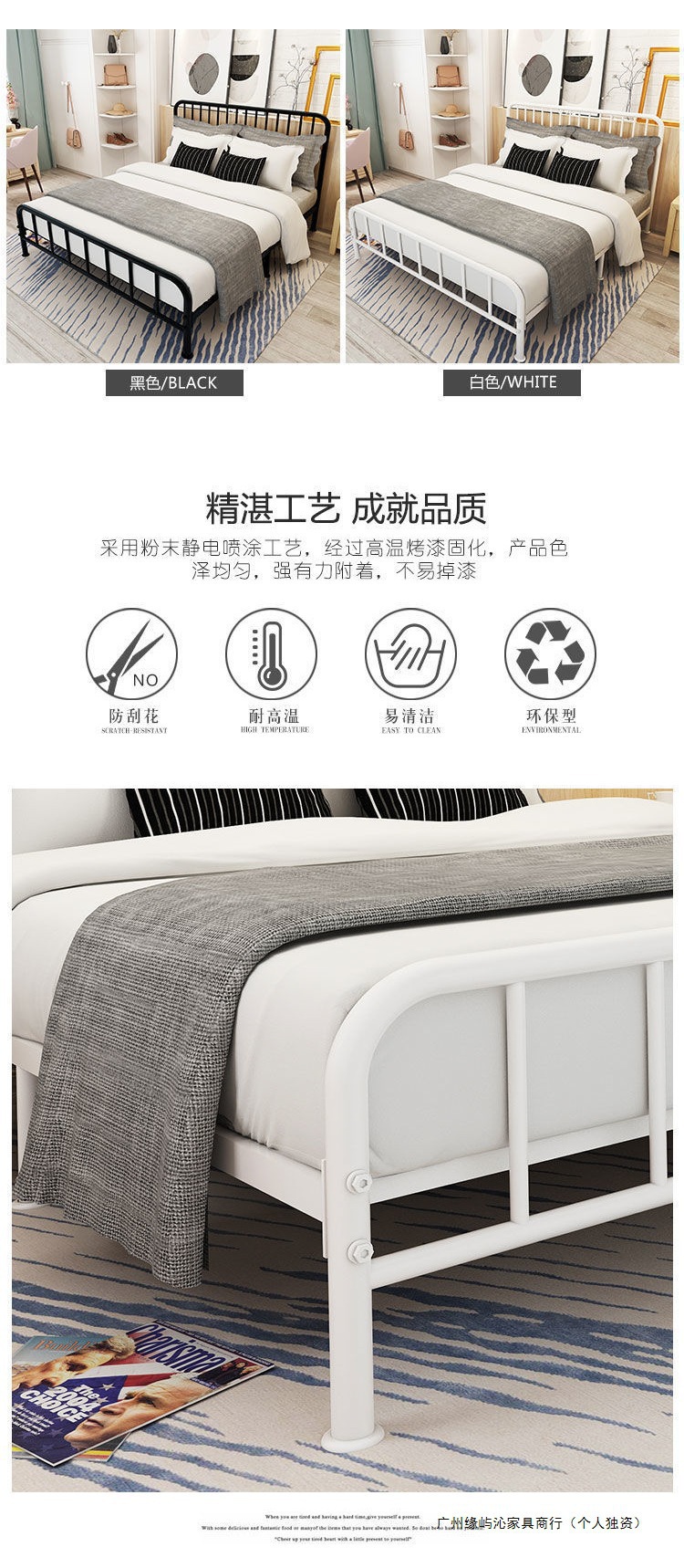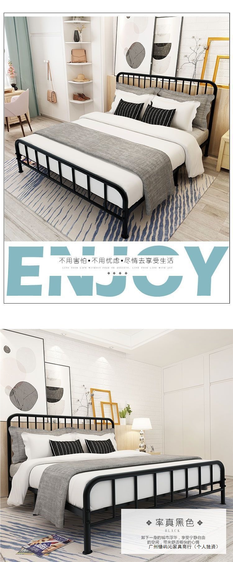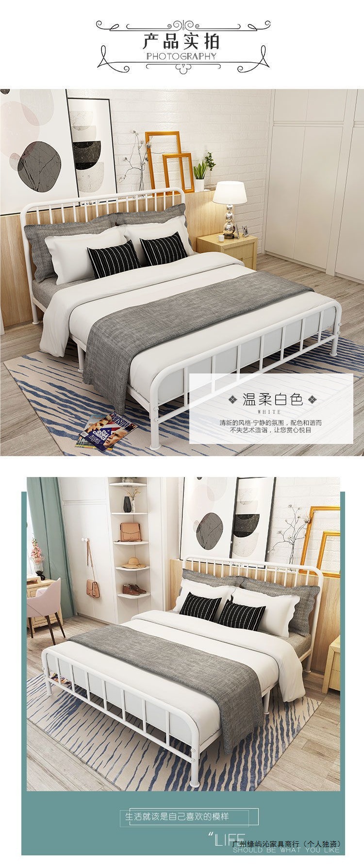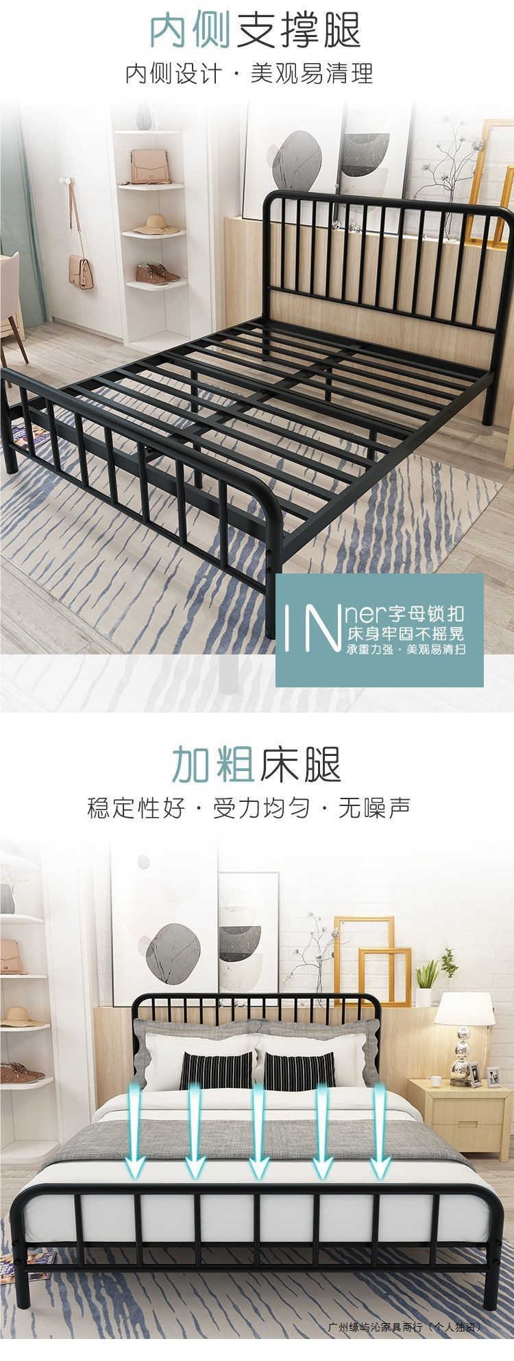 철제 침대 현대적인 단순 경제적 1.5m 더블 1.8m 어린이 철제 침대 임대 유럽식 싱글 침대 1m스토어 가기