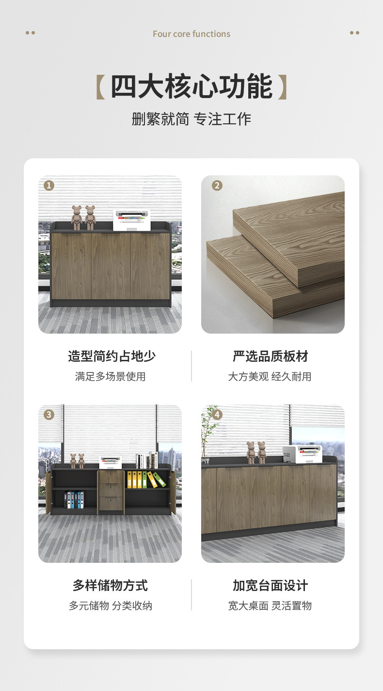 서류장, 낮은 캐비닛, 사무실 차장, 수납장, 프린터 보관함, 원목 보강 잠금장치가 있는 바닥형 캐비닛