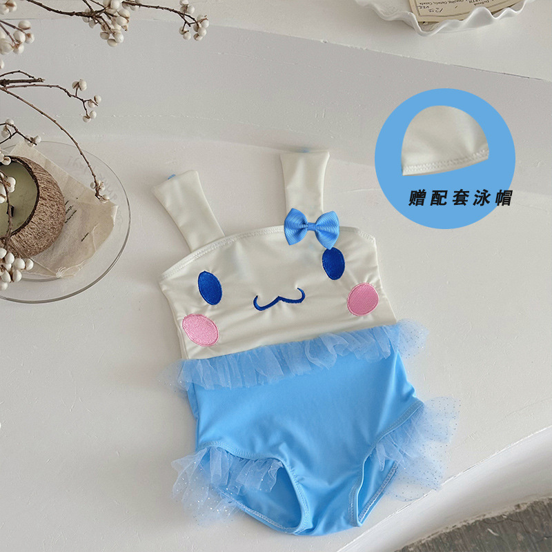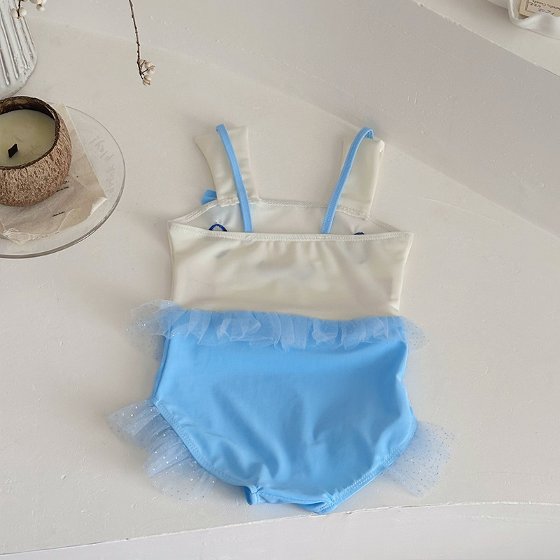 여름 새 어린이 수영복 아기 소녀 원피스 서스펜더 스커트 수영복 만화 온천 휴가 속건성 수영복