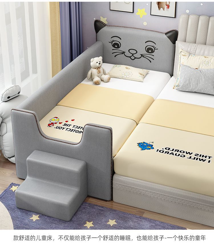 어린이 침대 원목 침대 유아용 침대 확장 침대 접합 침대 가드 레일이있는 소년 소녀 침대 옆 침대 싱글 침대