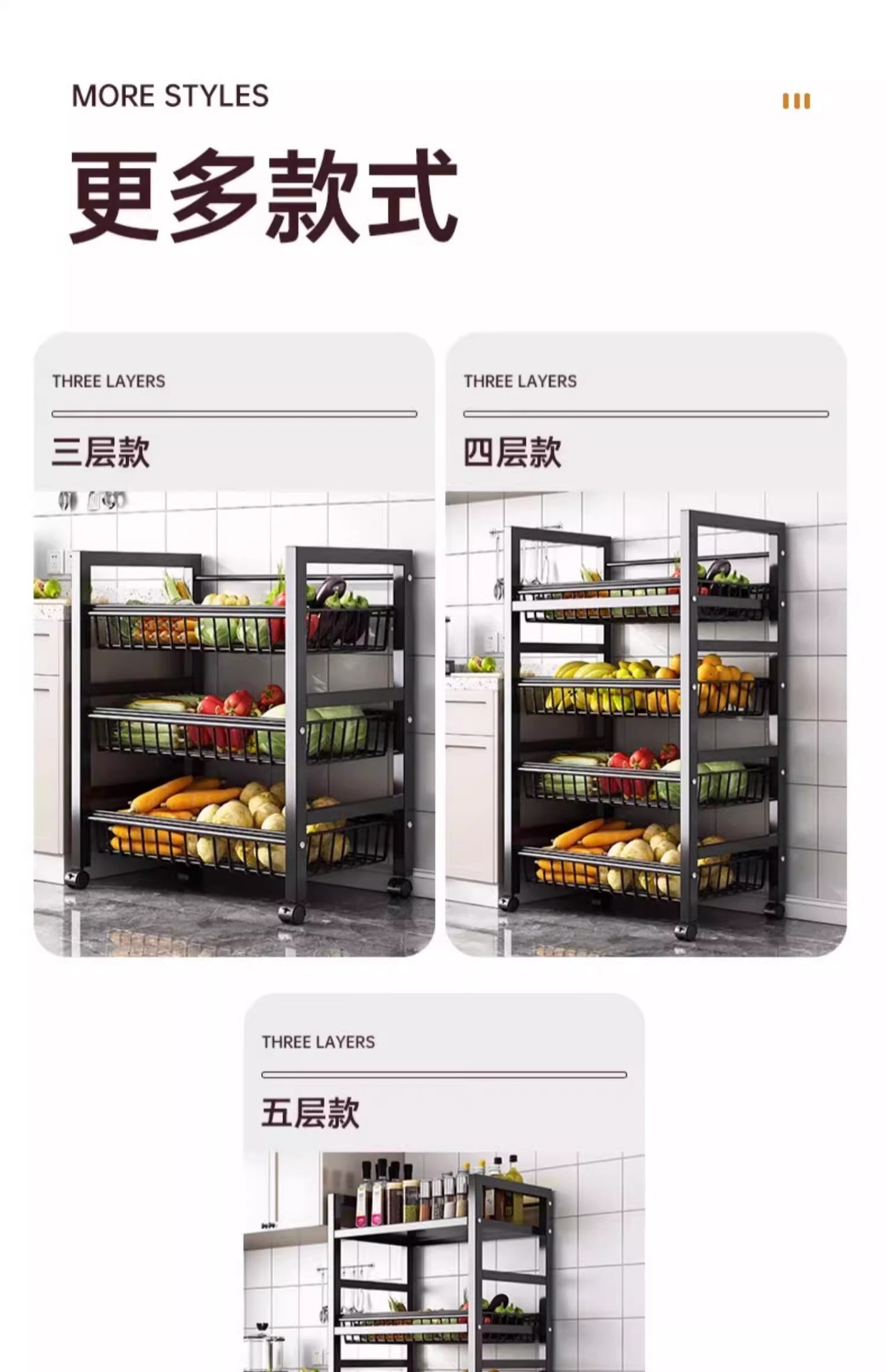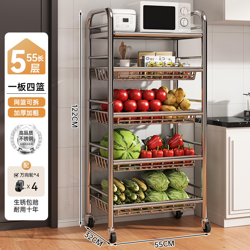 주방 야채 바구니 보관 랙 바닥에서 천장까지 다층 스테인레스 스틸 선반 새로운 다기능 주방 용품 보관 유물스토어 가기