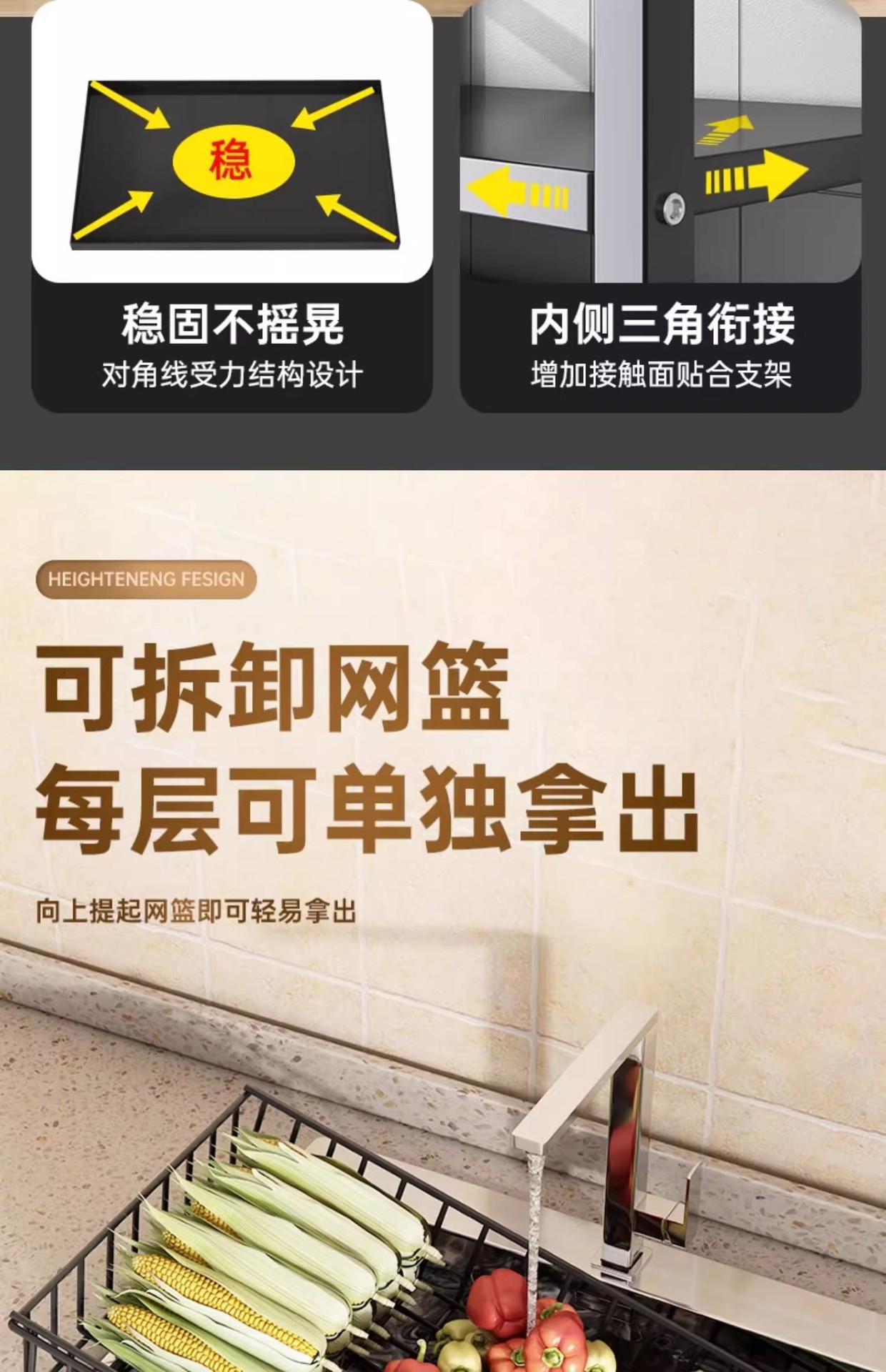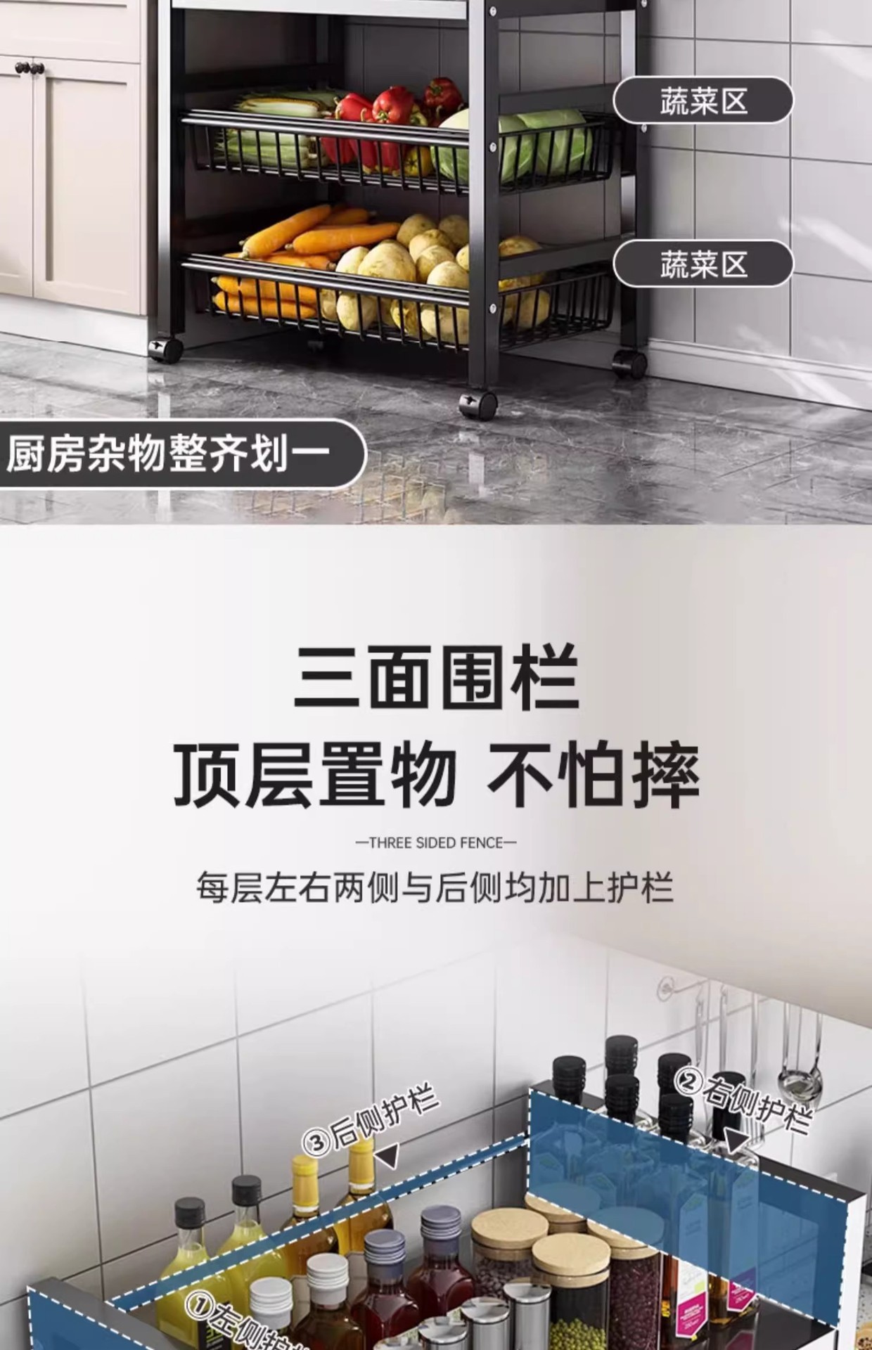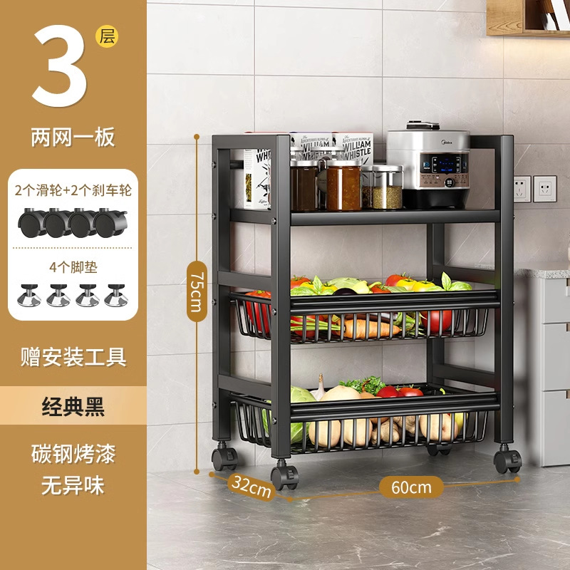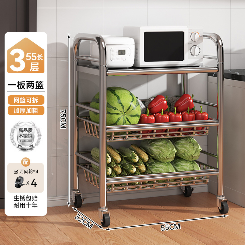 • 두꺼운 전체 탄소강 3겹[플레이트 1개 바구니 2개] 60*32*75 프리 범용 휠*4+녹슬지 않음
