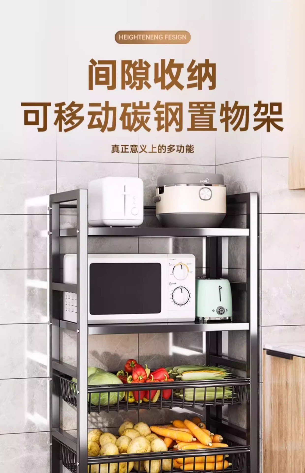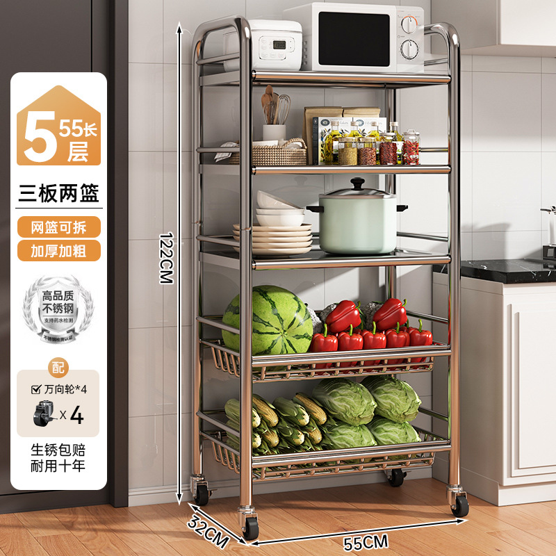 주방 야채 바구니 보관 랙 바닥에서 천장까지 다층 스테인레스 스틸 선반 새로운 다기능 주방 용품 보관 유물