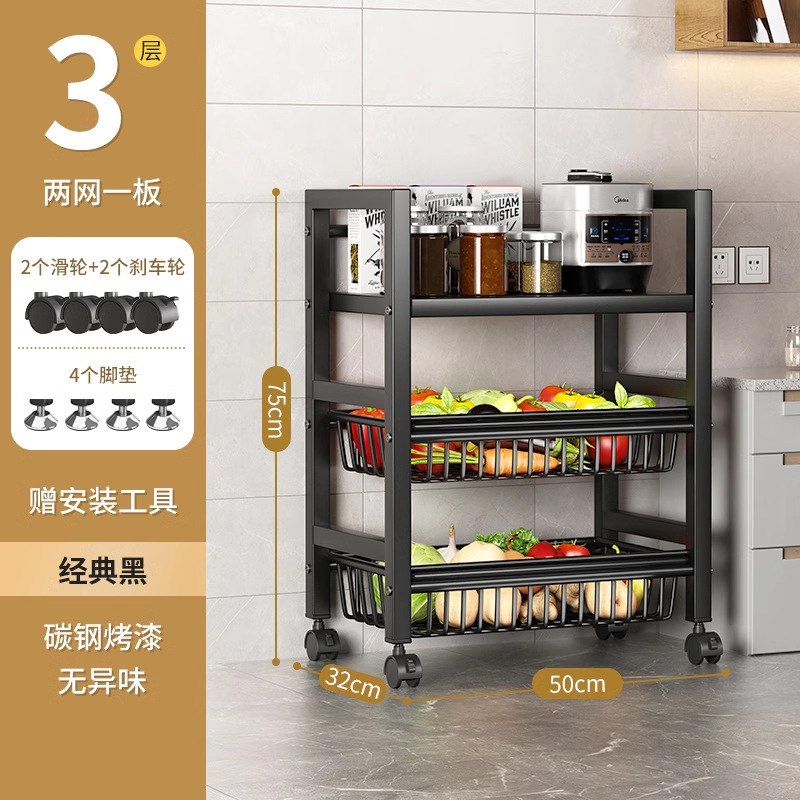 • 두꺼운 전체 탄소강 3겹[플레이트 1개 바구니 2개] 50*32*75 프리 범용 휠*4+녹슬지 않음