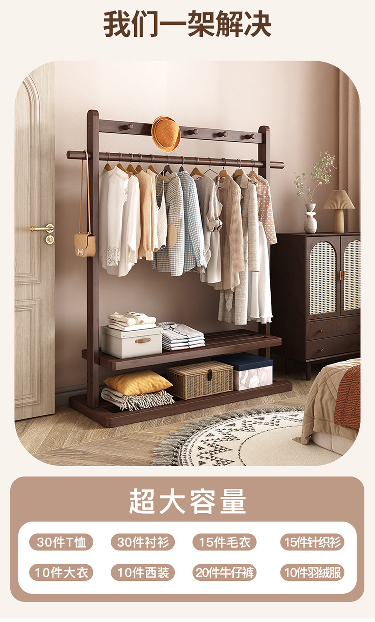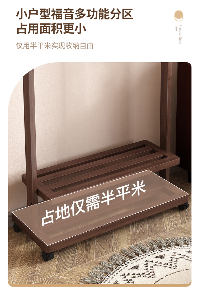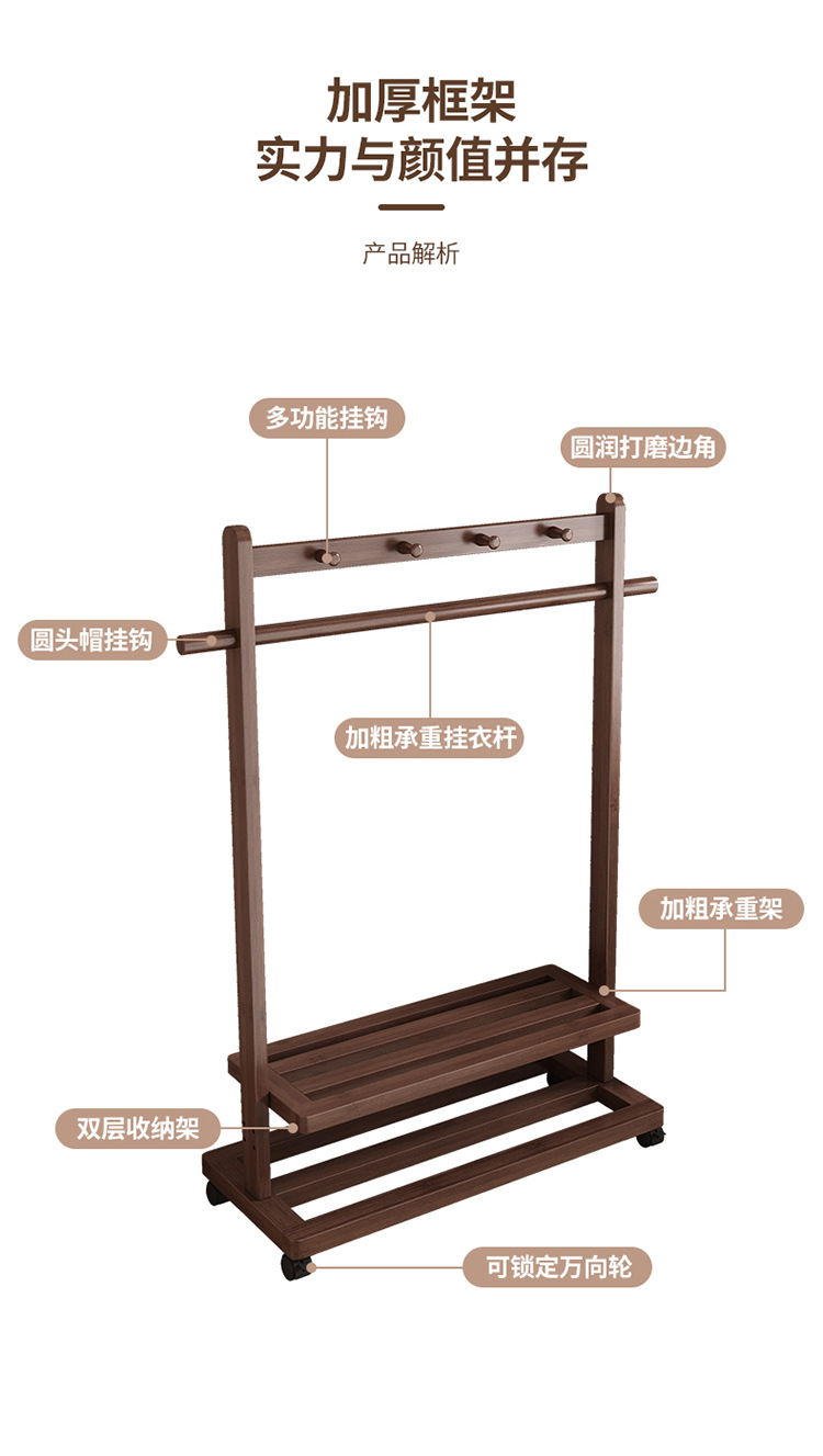 • [월넛 컬러] 바퀴가 달린 스탠다드 모델, 다기능 후크 65CM [초두꺼움, 초두꺼움]