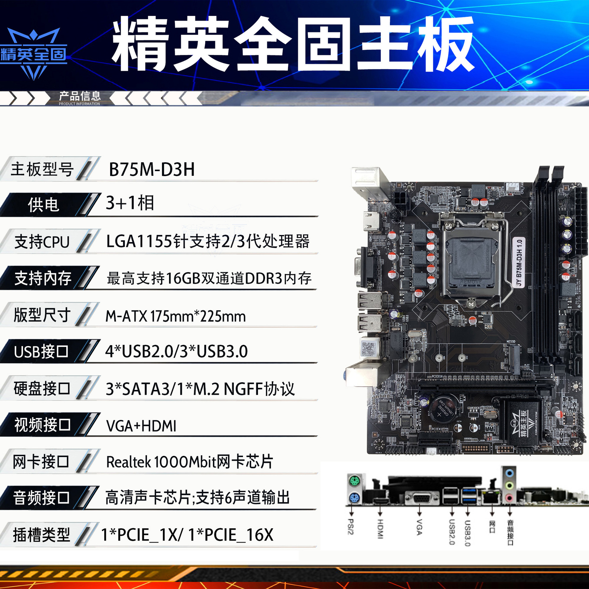 엘리트 풀 솔리드 B75M-D3H DDR3 메모리 1155핀 데스크탑 마더보드는 2세대 및 3세대 CPU를 지원합니다.스토어 가기